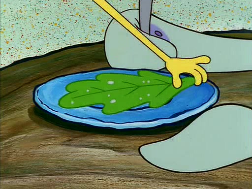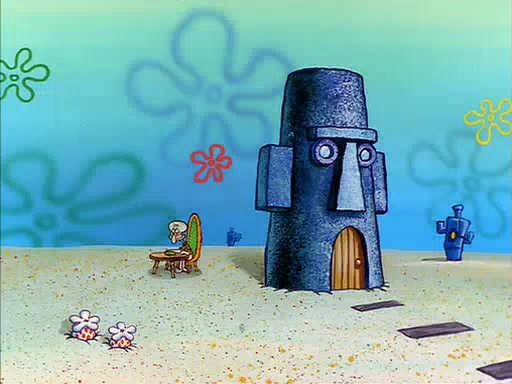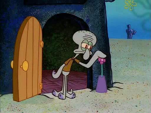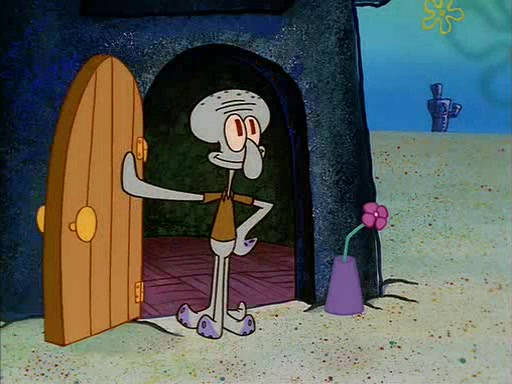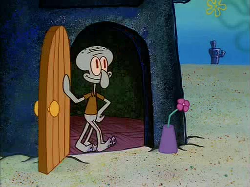 The episode starts out when Squidward walks outside and sees a tiny shell on his front lawn. He believes that it ruins the appearance of his lawn, so he kicks it onto SpongeBob's lawn on purpose.