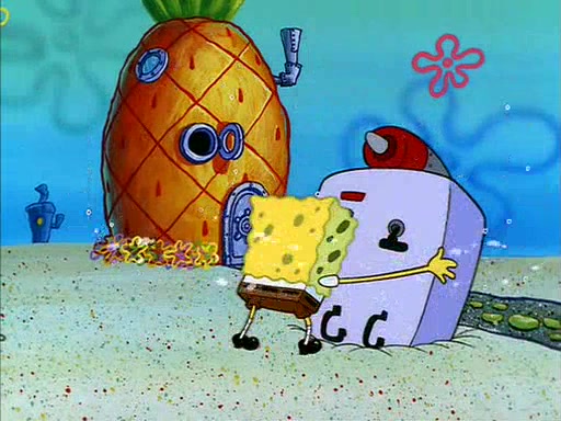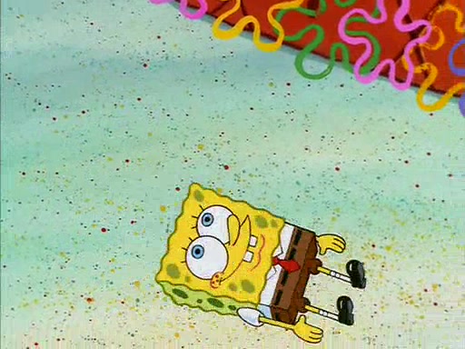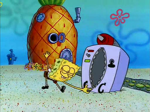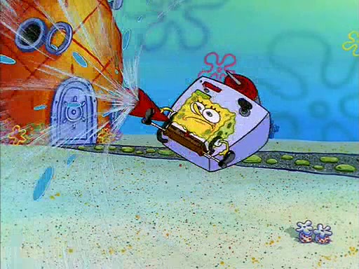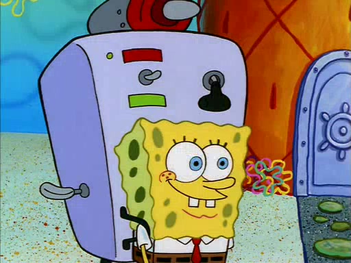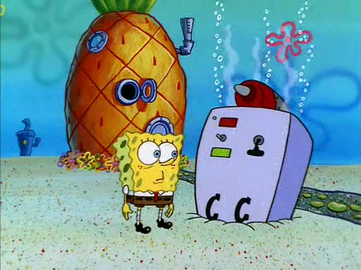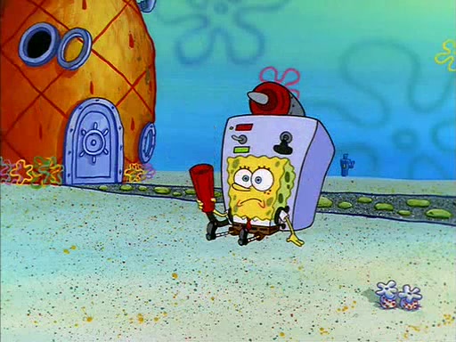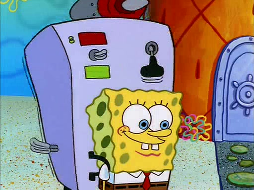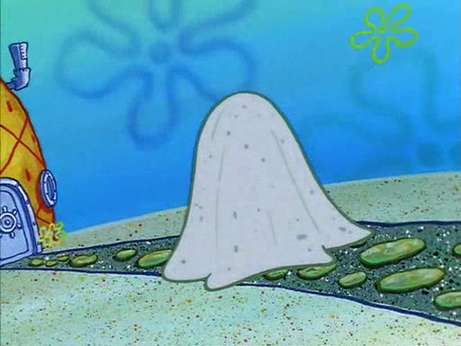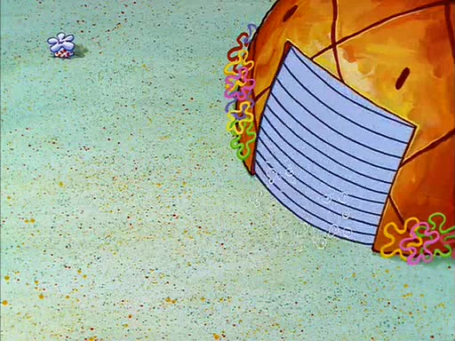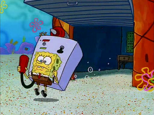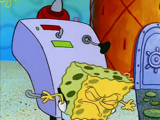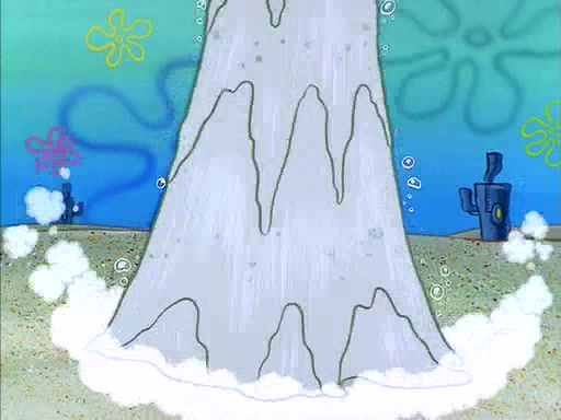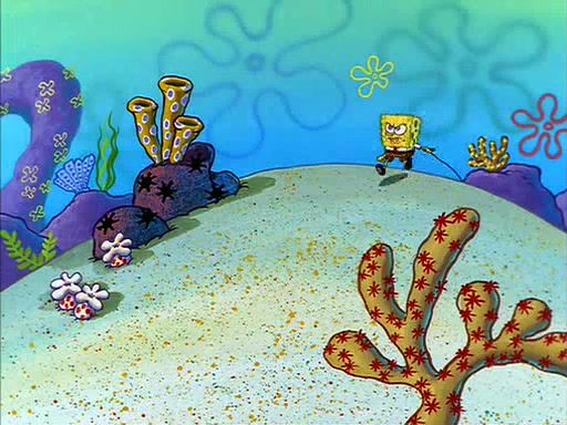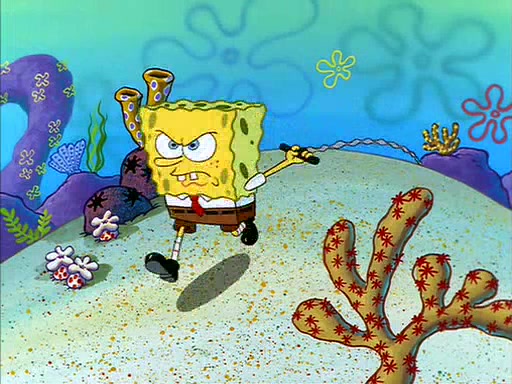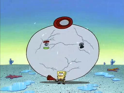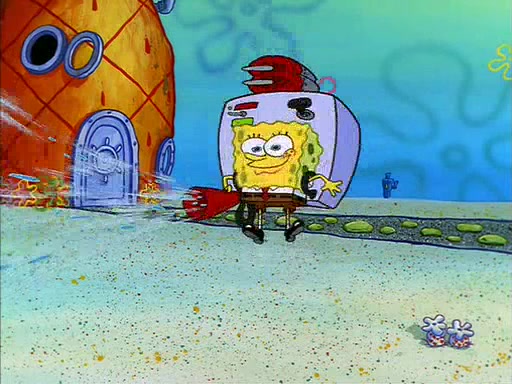 He then sucks the pile of sand into the reef blower, which begins to malfunction. The sand and a few mechanical gears blow out. So, SpongeBob unzips the reef blower and puts them in himself. The reef blower sneezes.