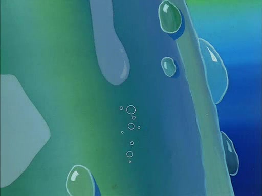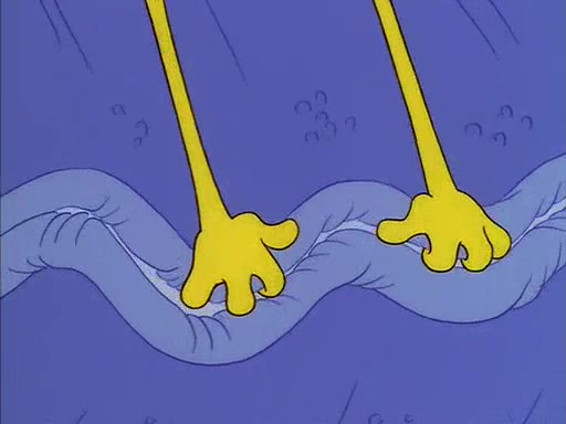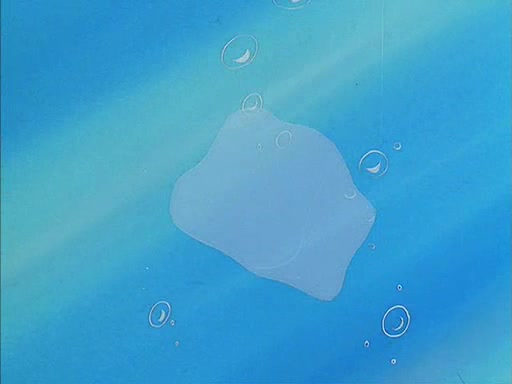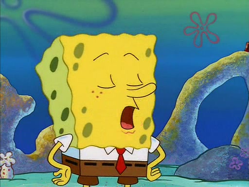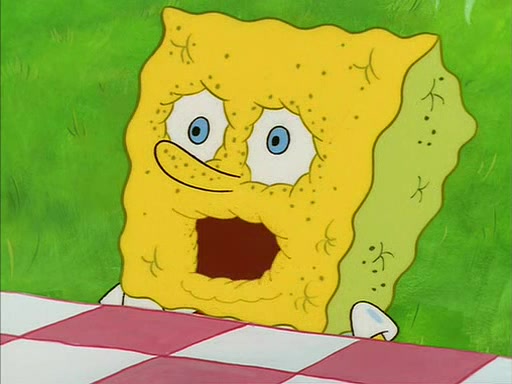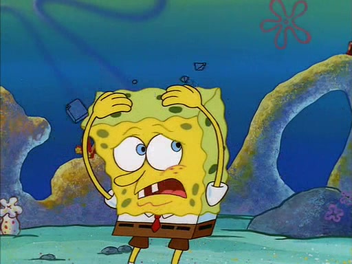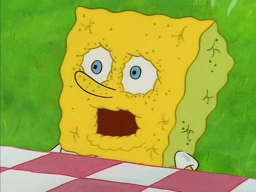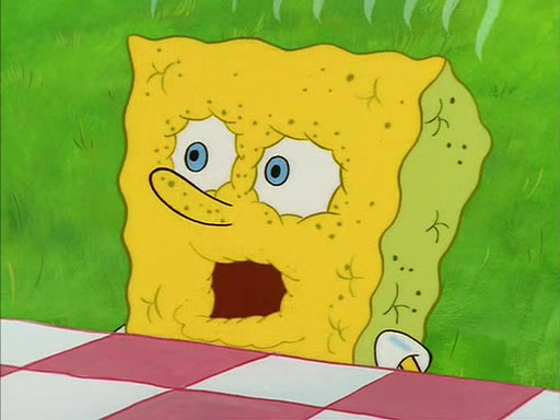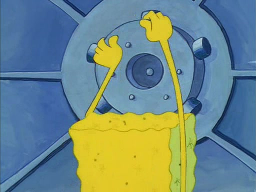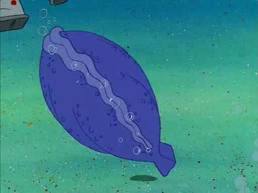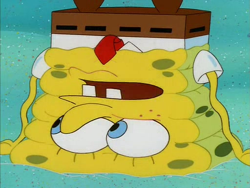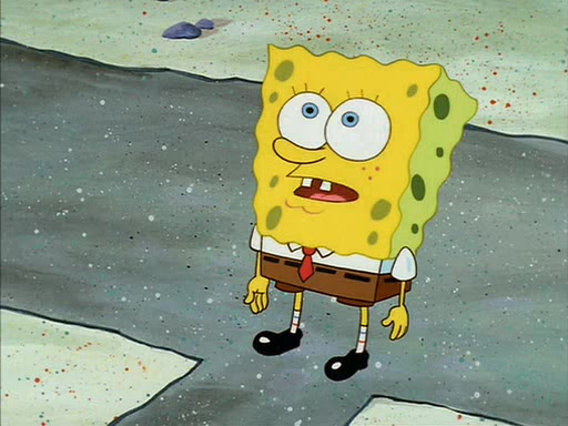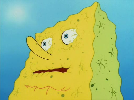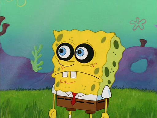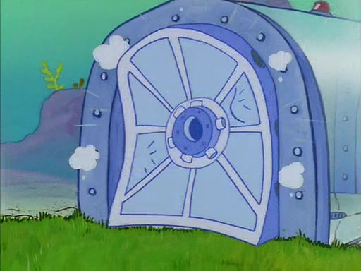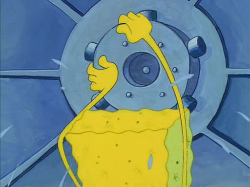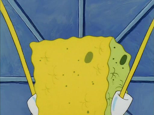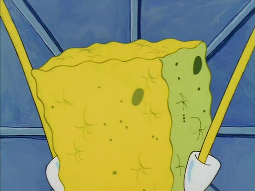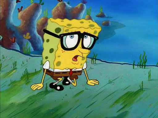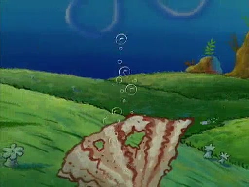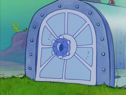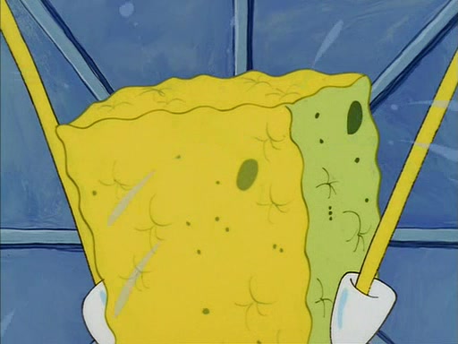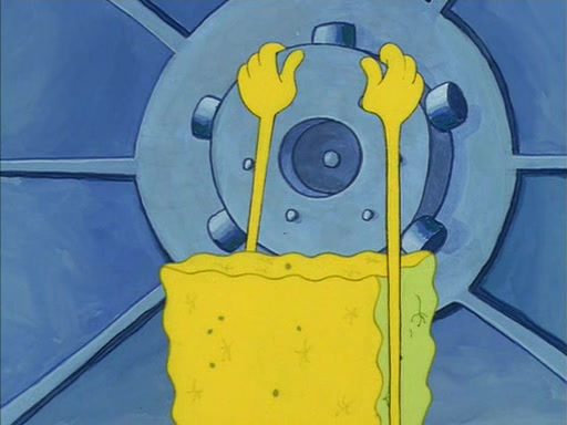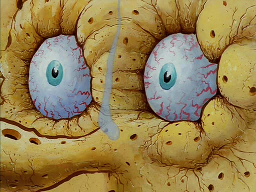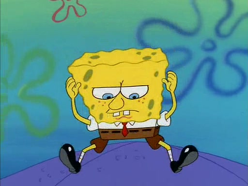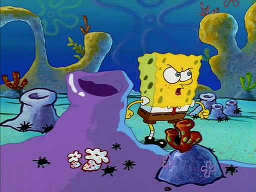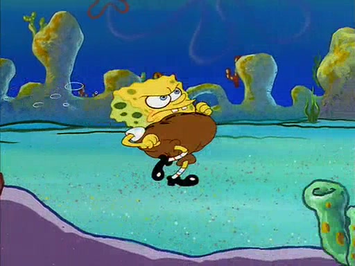 When SpongeBob arrives at Sandy's treedome, Sandy is in a purple bikini, since she does not need her air helmet inside. SpongeBob goes inside, and notices that the water level drops to almost nothing. He panics, and tells Sandy that there is no water. She tells him that, it's just air. SpongeBob says that there isn't any problem and tries hard to breathe. He doesn't realize that sea creatures need water to survive.