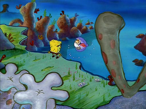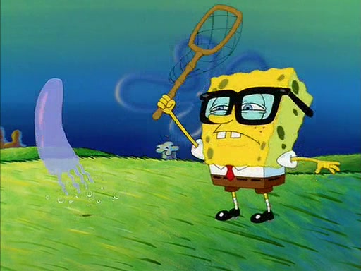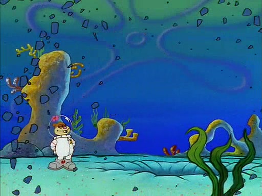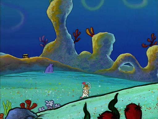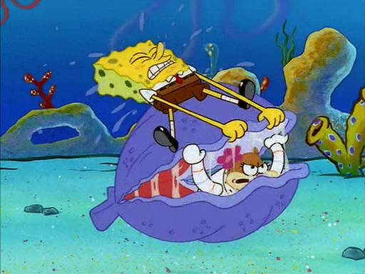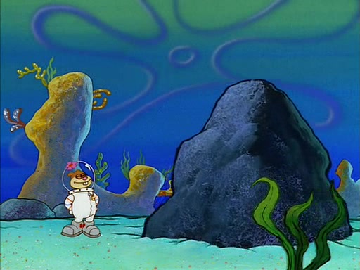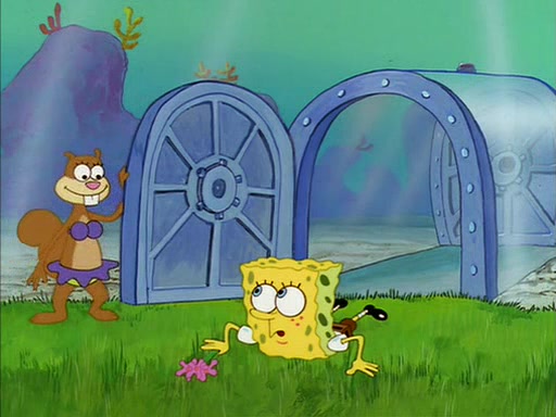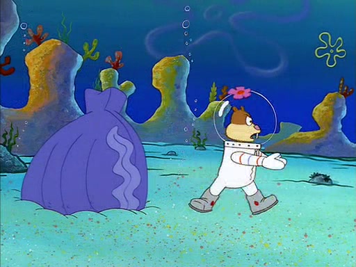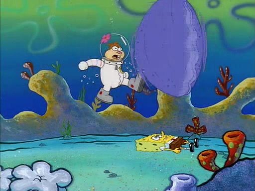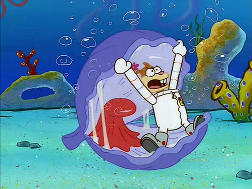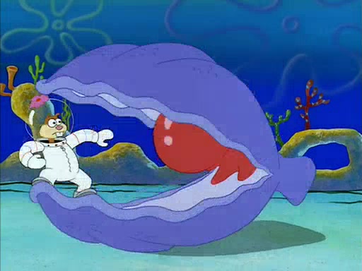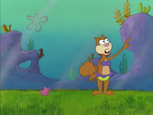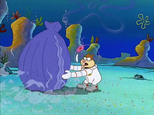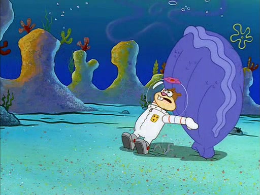 The episode starts out with SpongeBob hunting jellyfish in Jellyfish Fields. Suddenly, he spots a young female squirrel wrestling with a giant clam. He takes out his field guide book, and identifies her as "Land Squirrel." SpongeBob thinks that she is in trouble, and goes to wrestle the clam himself. The squirrel manages to escape the clam, but SpongeBob ends up inside it. The squirrel then rescues SpongeBob, and throws the clam out of the area. SpongeBob introduces himself, and the squirrel says that her name is Sandy Cheeks.
