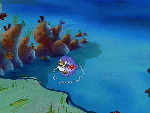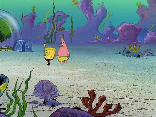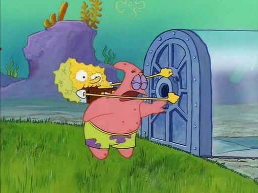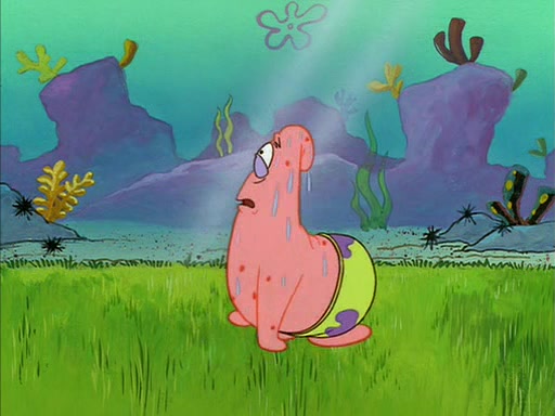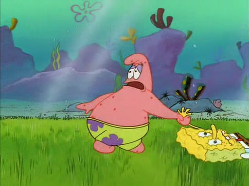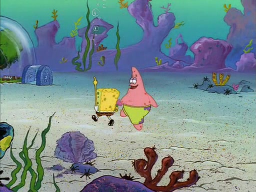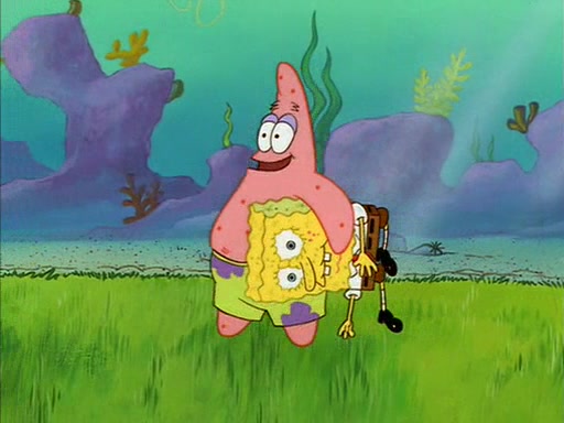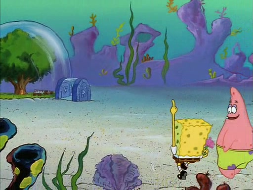 SpongeBob quickly runs over to his best friend Patrick Star and tells him everything that happened. Patrick tells him that 'putting on airs' is fancy talk. He then tells SpongeBob if he wants to be fancy, to hold his pinky finger high above him.