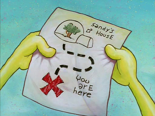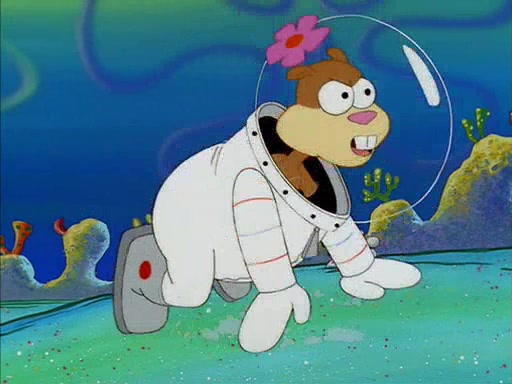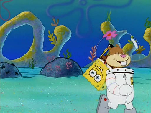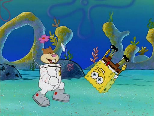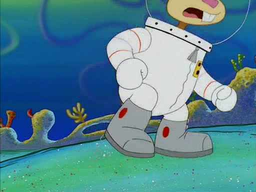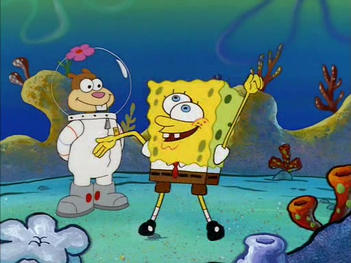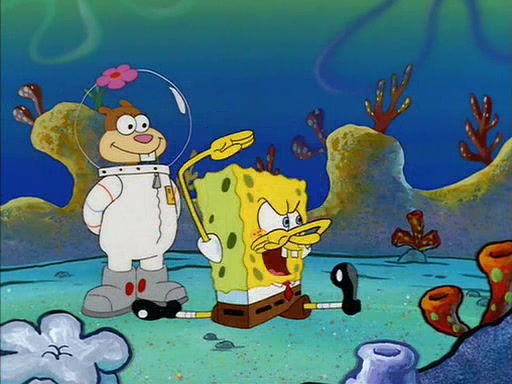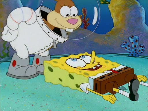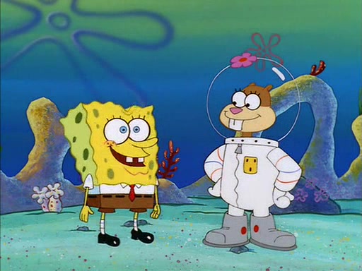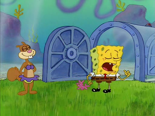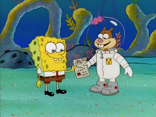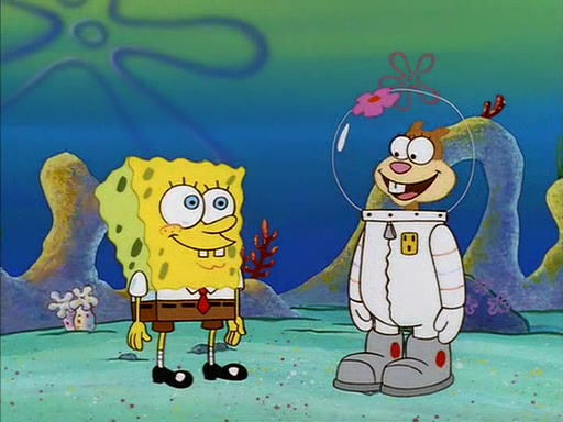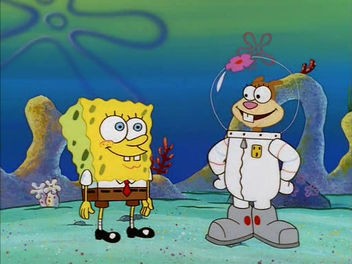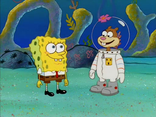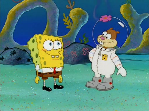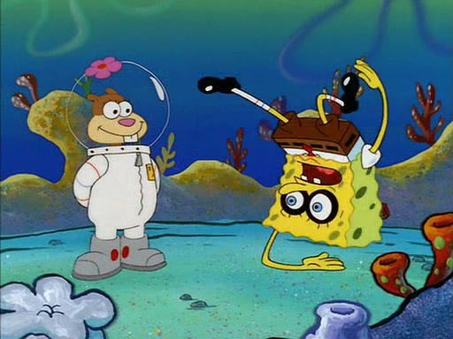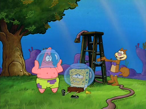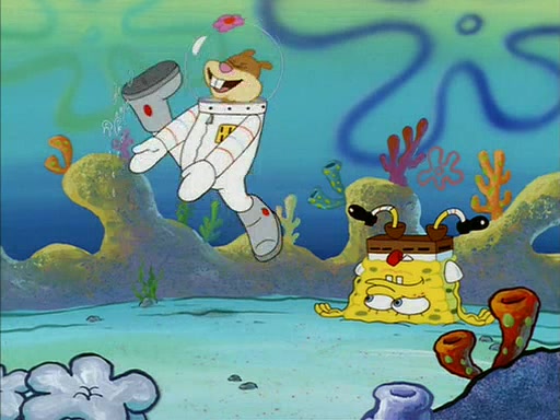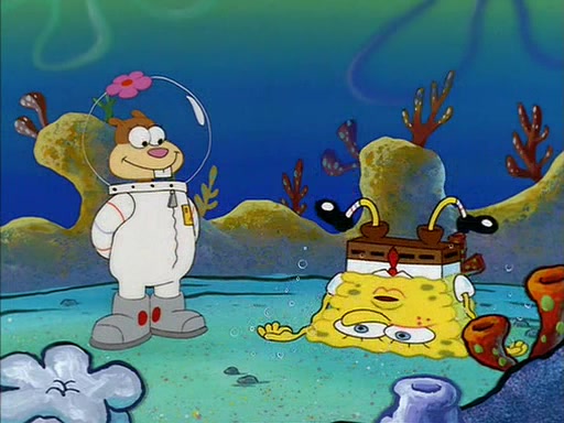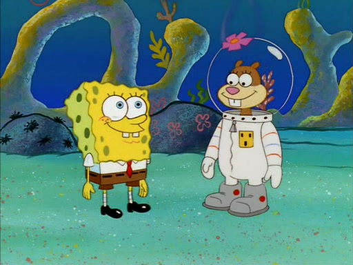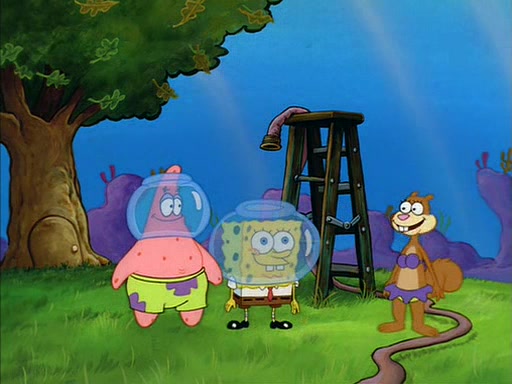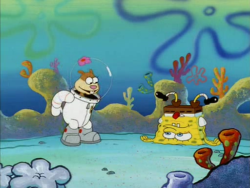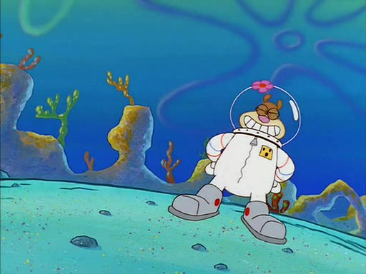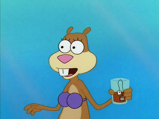 SpongeBob inquires about the helmet she wears, and Sandy tells him that it's her air helmet. SpongeBob doesn't know what air is, but he doesn't tell her this, instead he says that he loves air. Sandy, surprised that SpongeBob is fond of air, invites him to her treedome for "Texas tea and cookies."