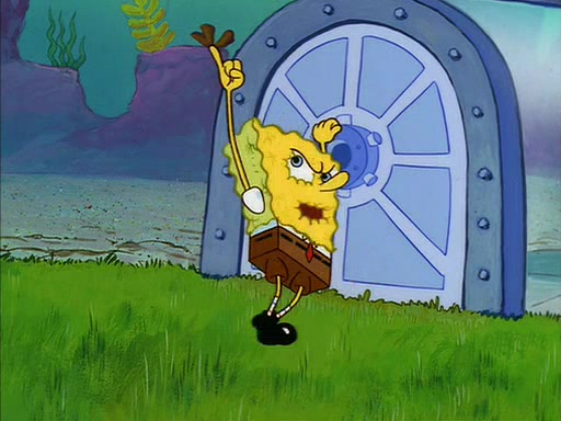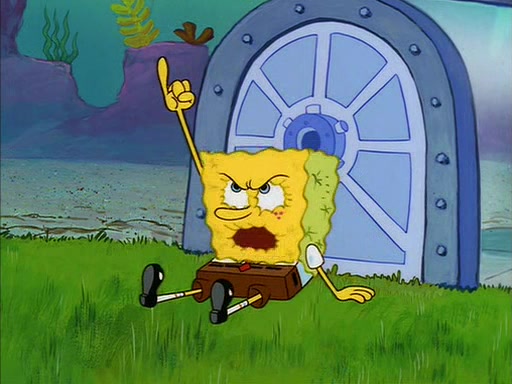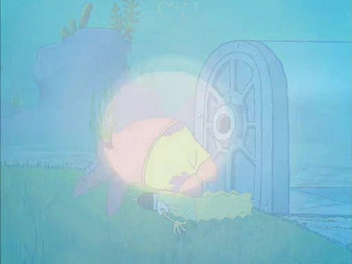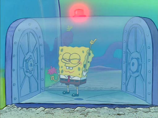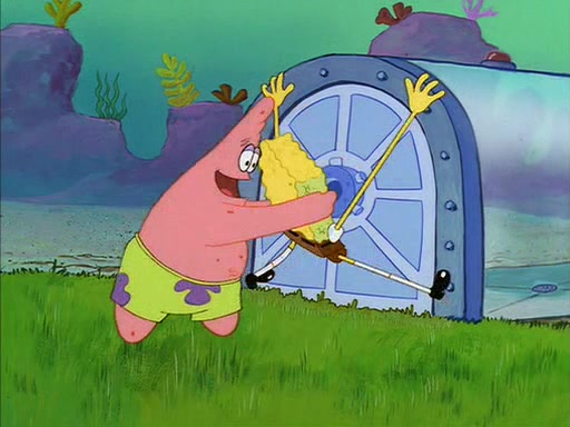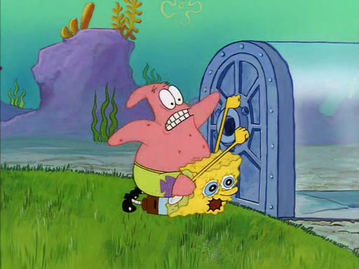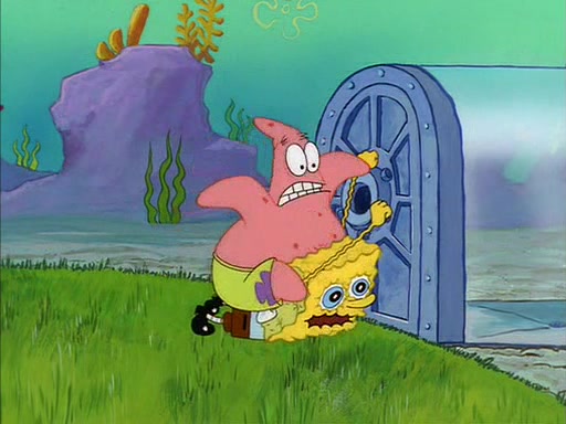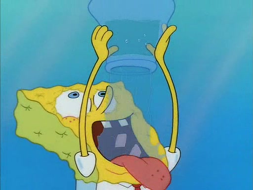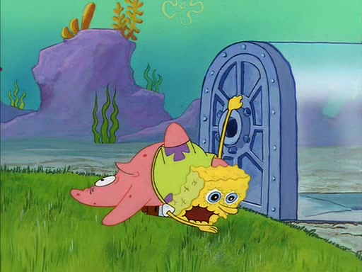 SpongeBob eventually gives in (After a mental battle of assuring himself that he doesn't need the water, and finally screamed "I NEED IT!"), drinks it, and runs for the door, declaring that he is a quitter. Patrick, thinking he is being shy around Sandy, quickly enters the treedome and tries to convince him to stay. After a moment, Patrick also realizes that there is no water. The two struggle to get out of the treedome, but are unsuccessful.