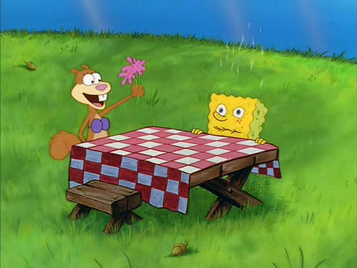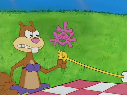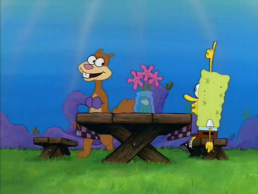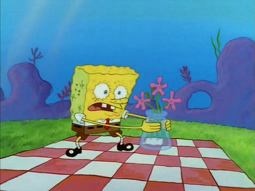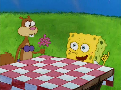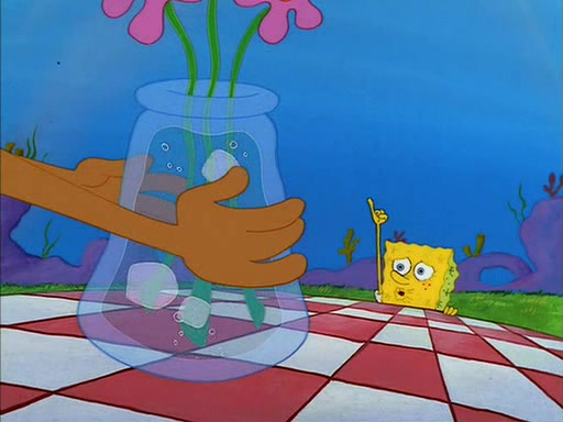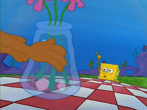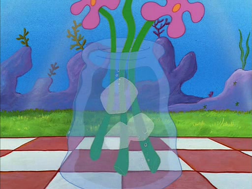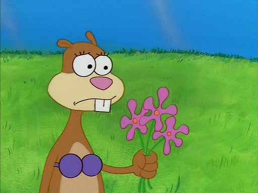SpongeBob gives Sandy some flowers. Sandy is very pleased and she decides to get a vase for them. Sandy asks SpongeBob if he needs anything, and he replied "Water would be nice," though Sandy does not reply to that, and simply leaves to gets the vase.