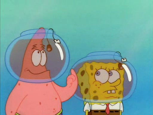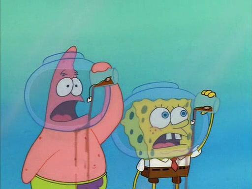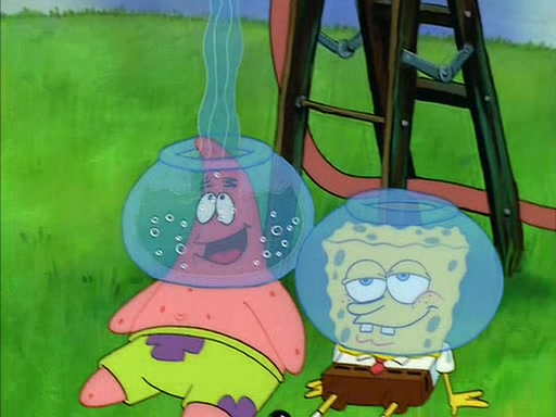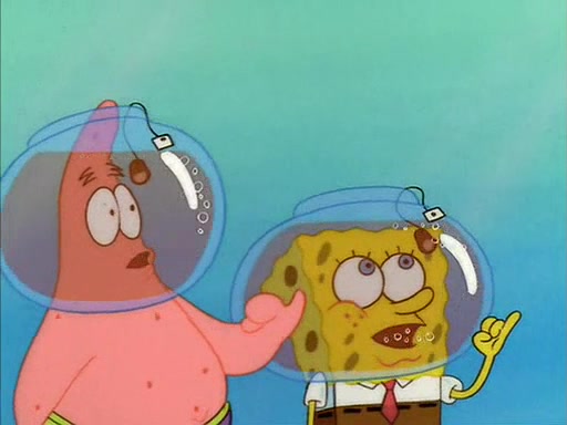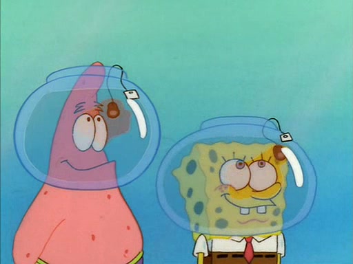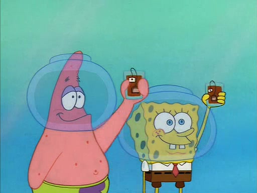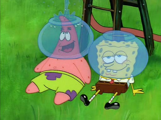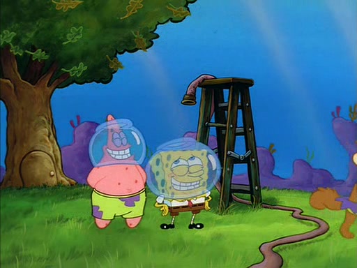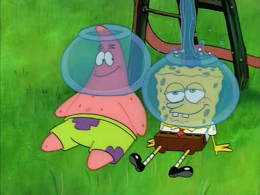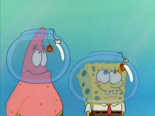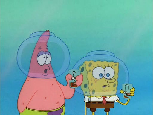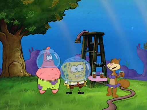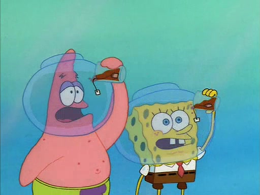When Sandy comes back, she shrieks as she spots both Patrick and SpongeBob dried up on the grass. She helps them by giving them water-filled helmets and mentions that if they needed water, they should have asked. In the end, Sandy proposes a toast to new friends, and they drink their tea. SpongeBob and Patrick drink by gulping the tea-filled water in their new helmets (due to being unable to drink the tea from their glasses while wearing their water helmets) with their pinky fingers pointing up.