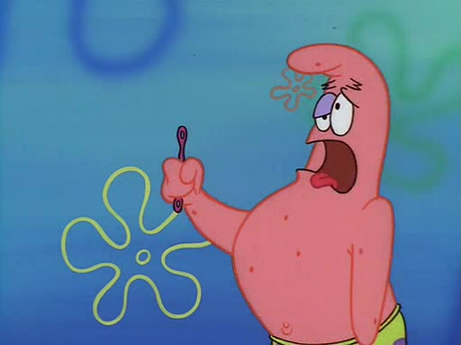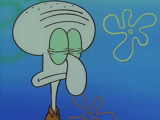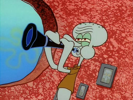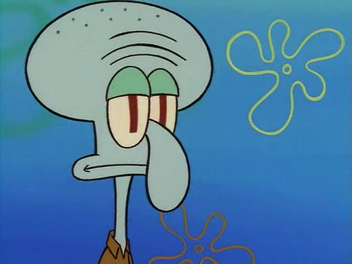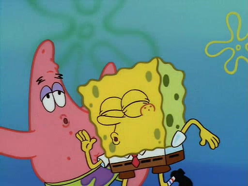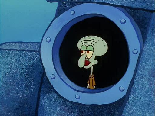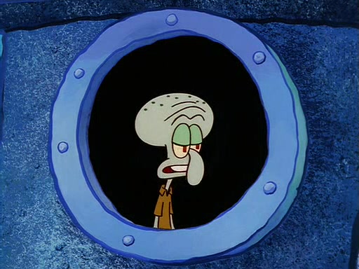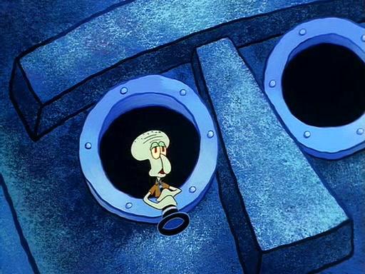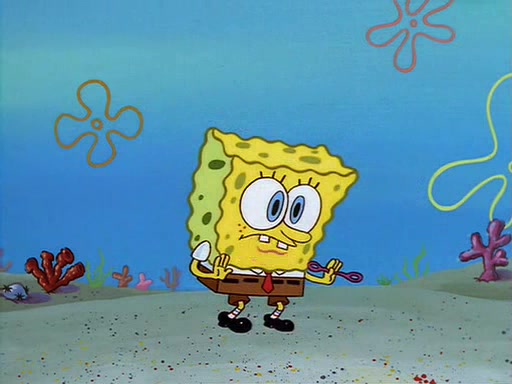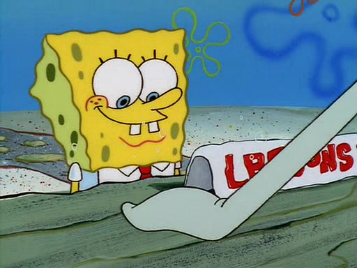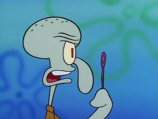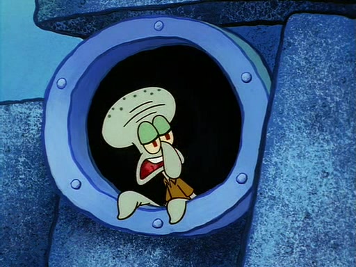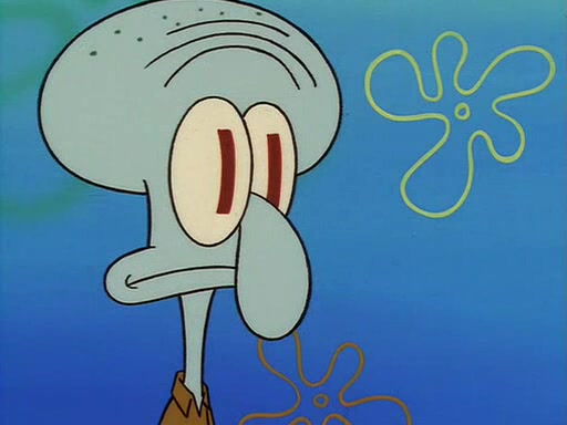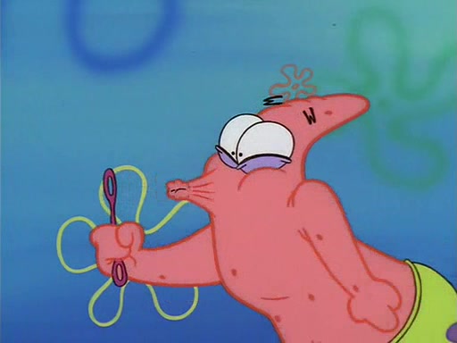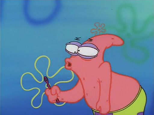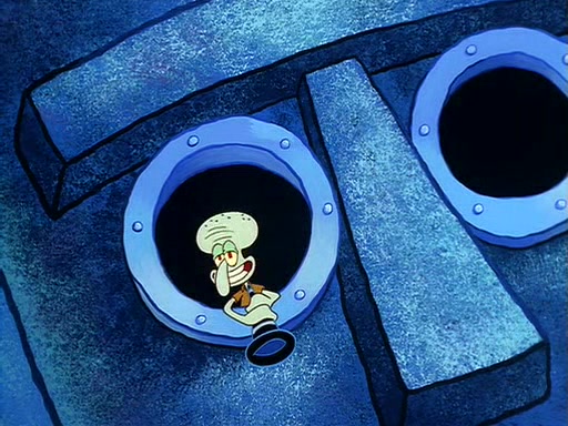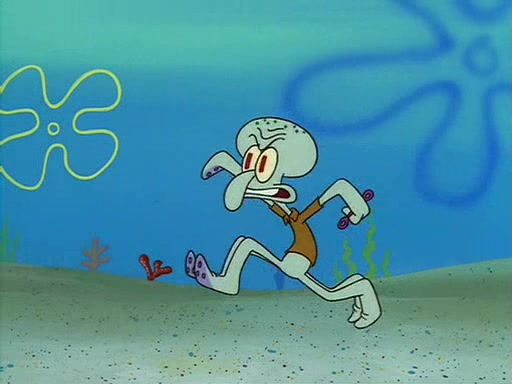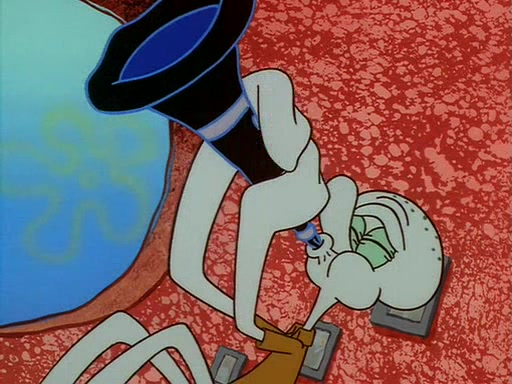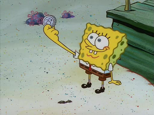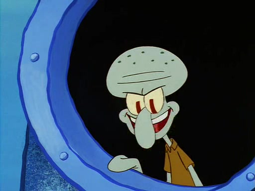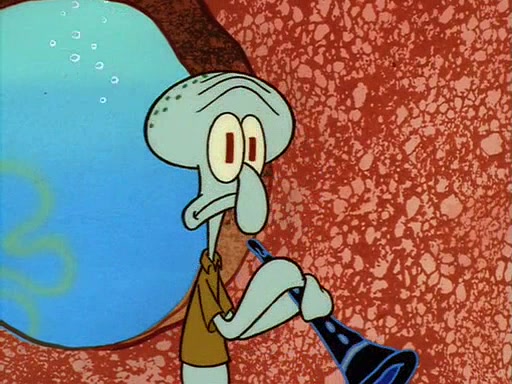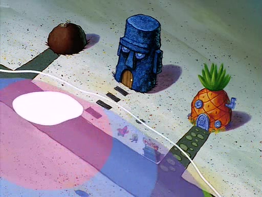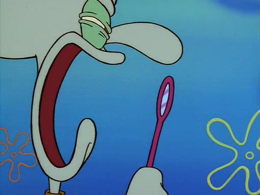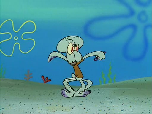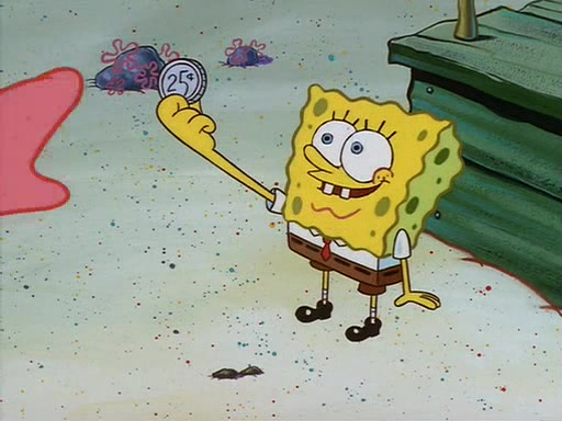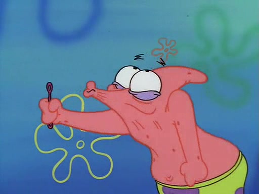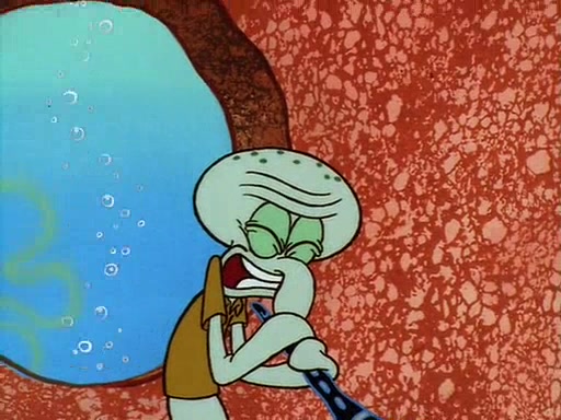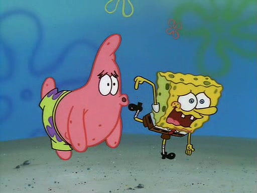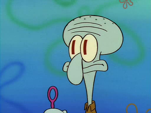 Then, after all the bubbles pop SpongeBob then uses two hands to blow a bubble elephant, Patrick calls it a "giraffe," The elephant (or giraffe) flies into Squidward's window and pops inside the house causing an explosion. Squidward, enraged, comes out and demands to know how they are just making so much noise just blowing bubbles. SpongeBob shows him the technique and blows a butterfly bubble, but Squidward angrily rejects SpongeBob's ideas and shoos SpongeBob and Patrick back into their houses in embarrassment. However, Squidward begins to blow a bubble out of curiosity, but SpongeBob and Patrick return to ask for payment. Squidward the reluctantly has to give them 25 cents for the bubble.