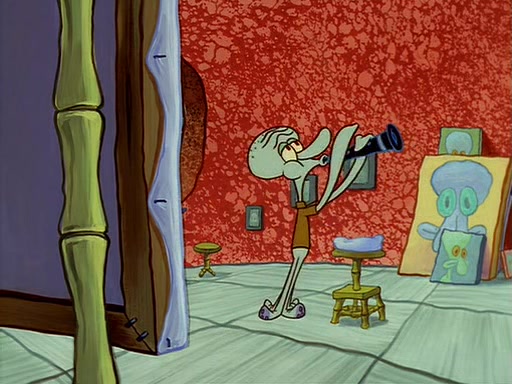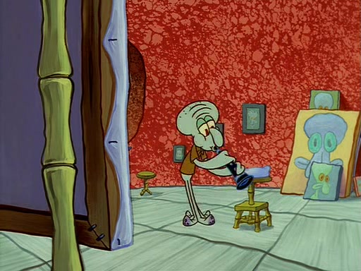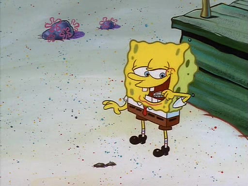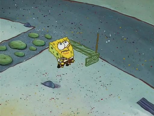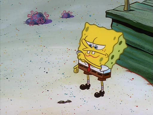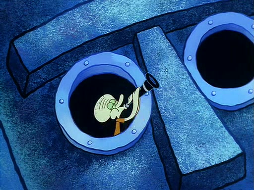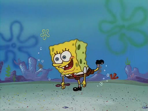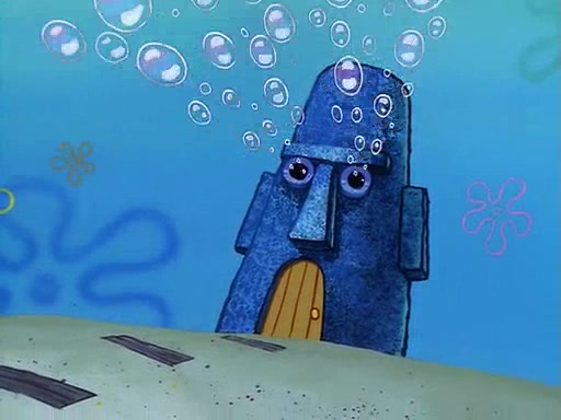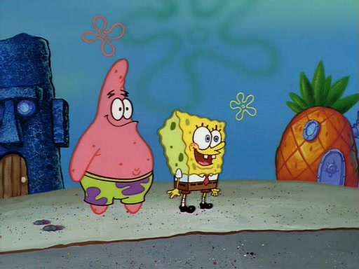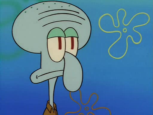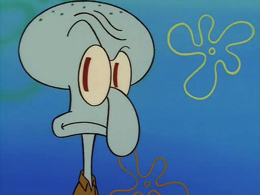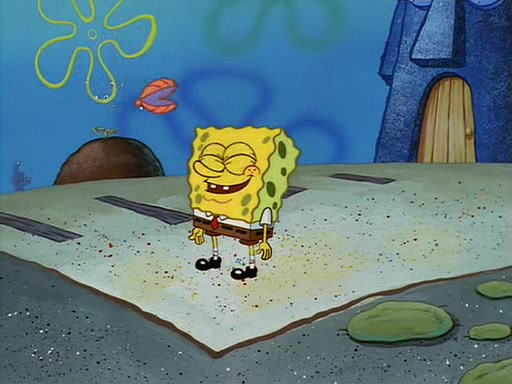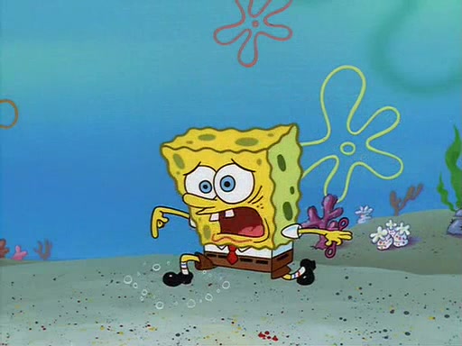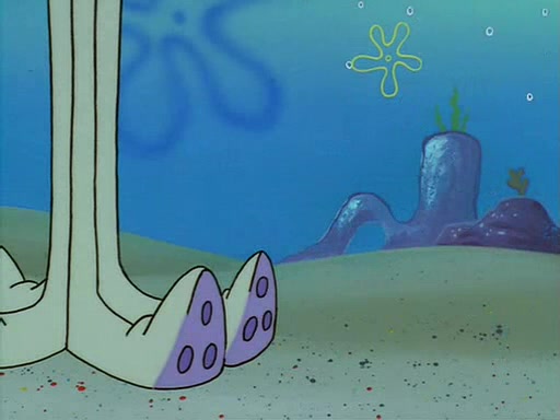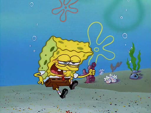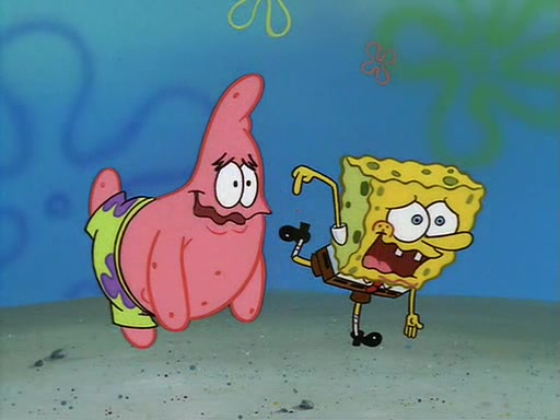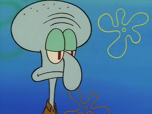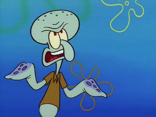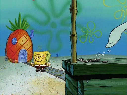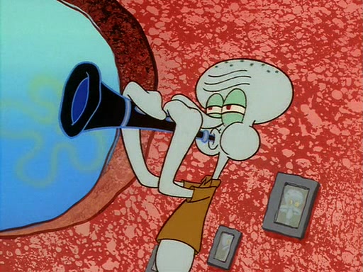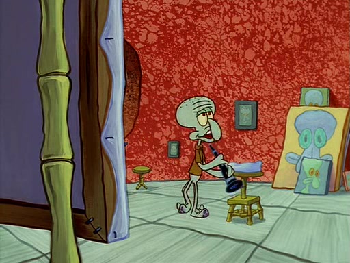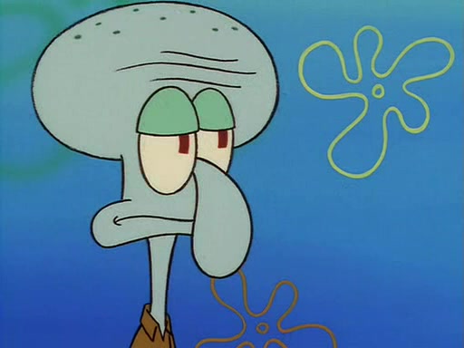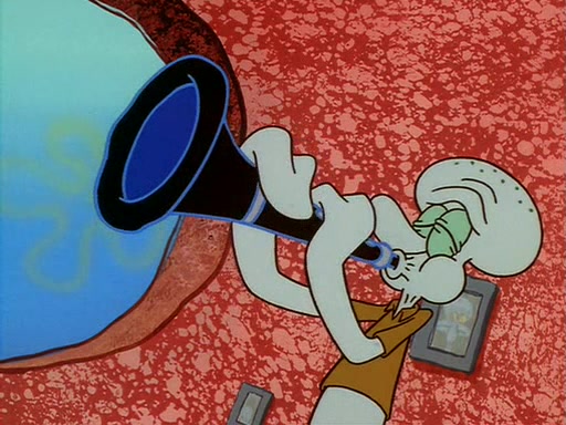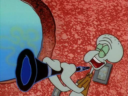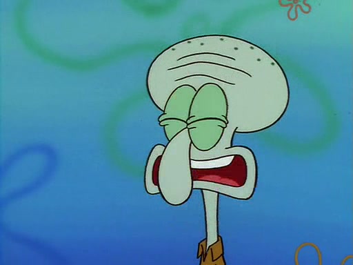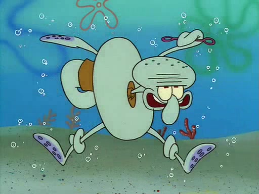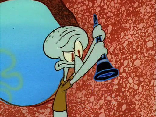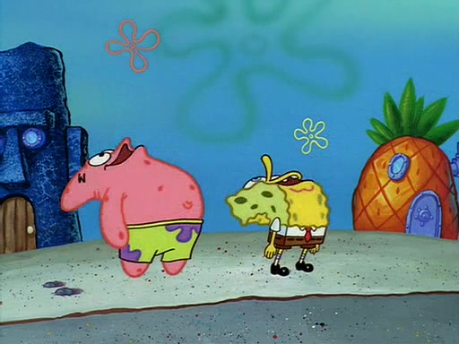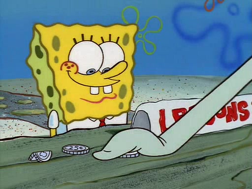 Then, after all the bubbles pop SpongeBob then uses two hands to blow a bubble elephant, Patrick calls it a "giraffe," The elephant (or giraffe) flies into Squidward's window and pops inside the house causing an explosion. Squidward, enraged, comes out and demands to know how they are just making so much noise just blowing bubbles. SpongeBob shows him the technique and blows a butterfly bubble, but Squidward angrily rejects SpongeBob's ideas and shoos SpongeBob and Patrick back into their houses in embarrassment. However, Squidward begins to blow a bubble out of curiosity, but SpongeBob and Patrick return to ask for payment. Squidward the reluctantly has to give them 25 cents for the bubble.