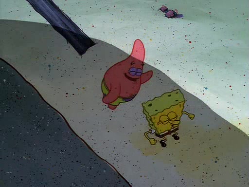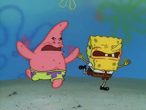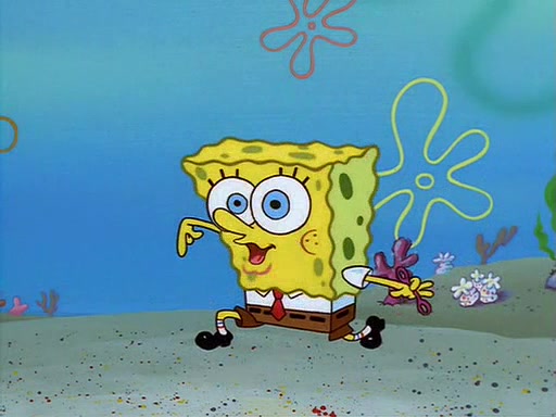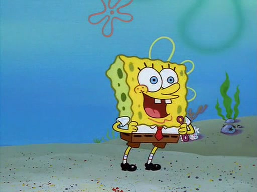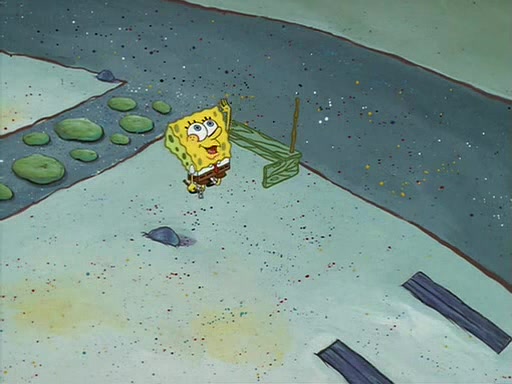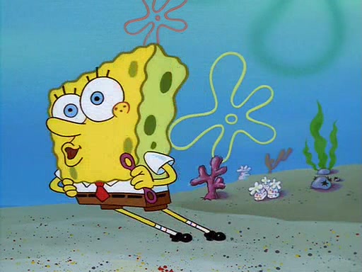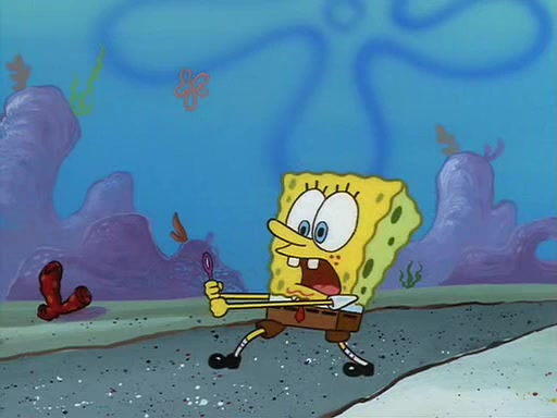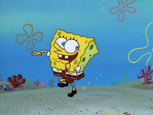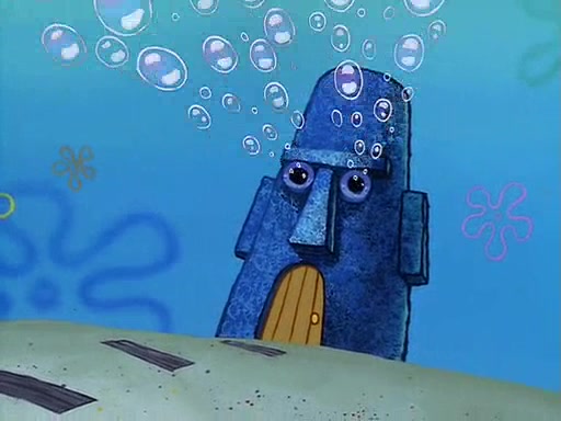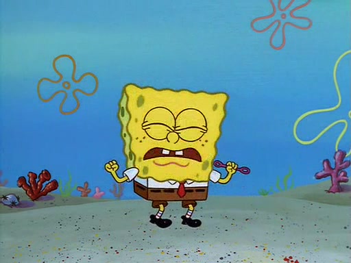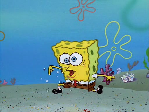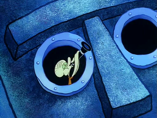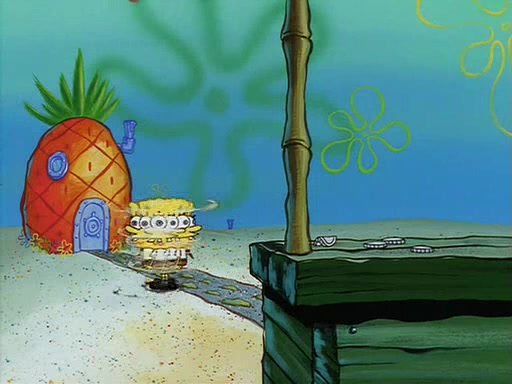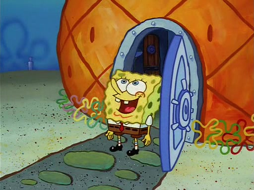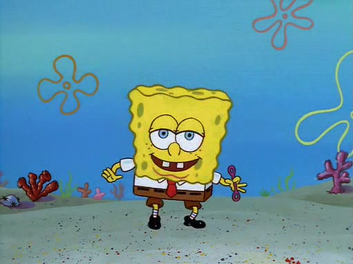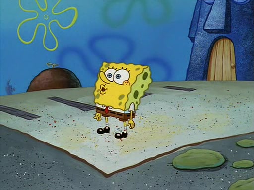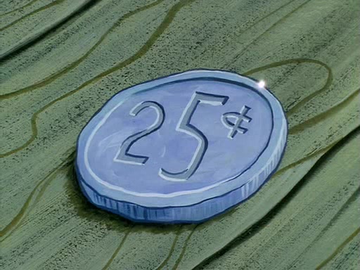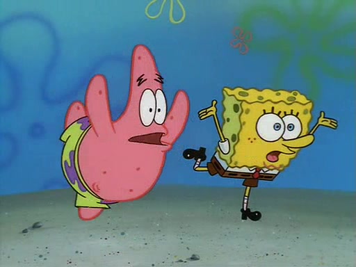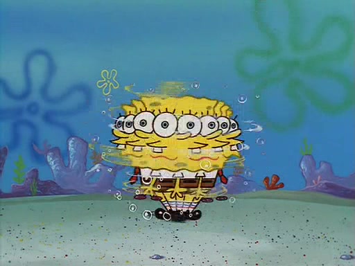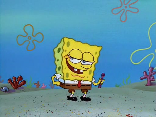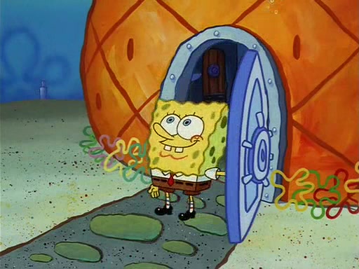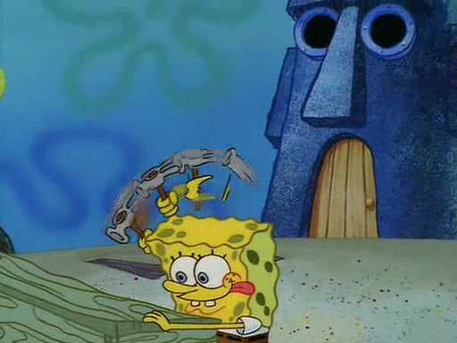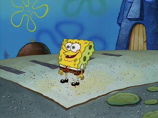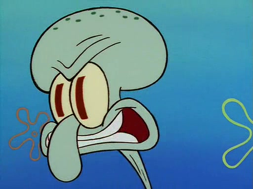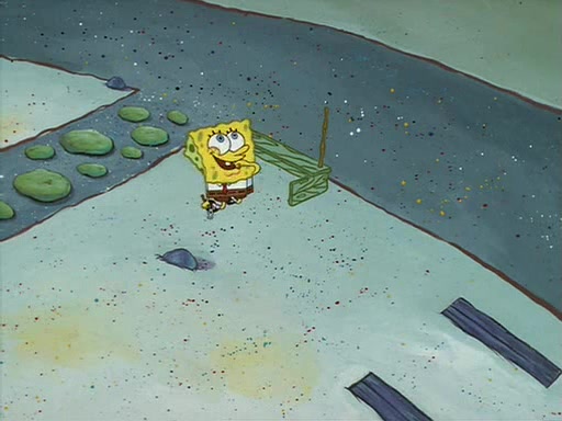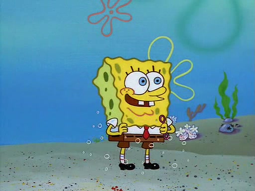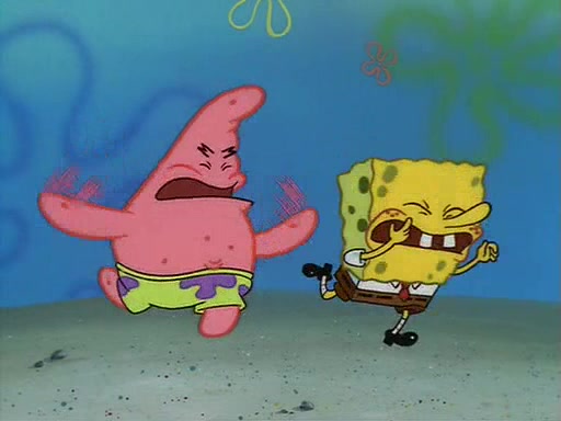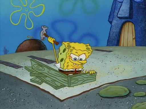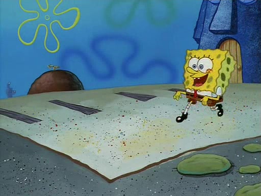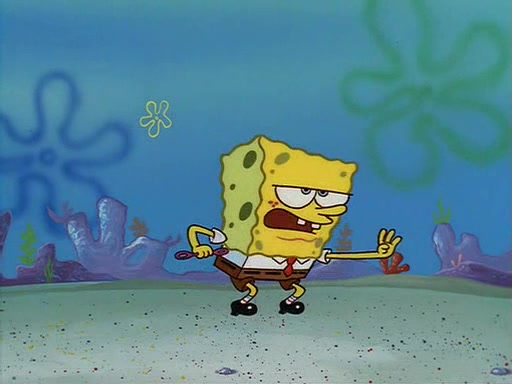 Then, after all the bubbles pop SpongeBob then uses two hands to blow a bubble elephant, Patrick calls it a "giraffe," The elephant (or giraffe) flies into Squidward's window and pops inside the house causing an explosion. Squidward, enraged, comes out and demands to know how they are just making so much noise just blowing bubbles. SpongeBob shows him the technique and blows a butterfly bubble, but Squidward angrily rejects SpongeBob's ideas and shoos SpongeBob and Patrick back into their houses in embarrassment. However, Squidward begins to blow a bubble out of curiosity, but SpongeBob and Patrick return to ask for payment. Squidward the reluctantly has to give them 25 cents for the bubble.