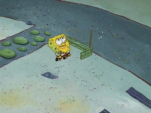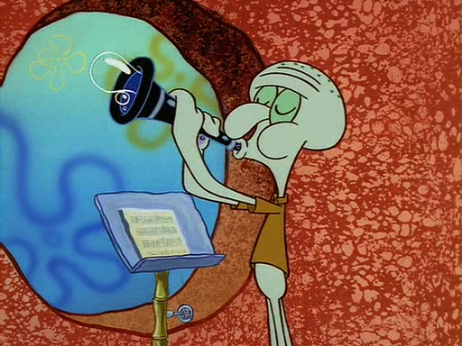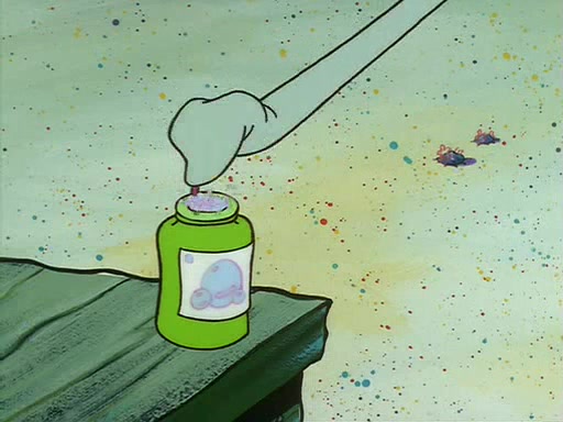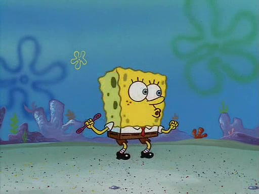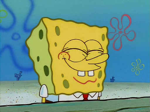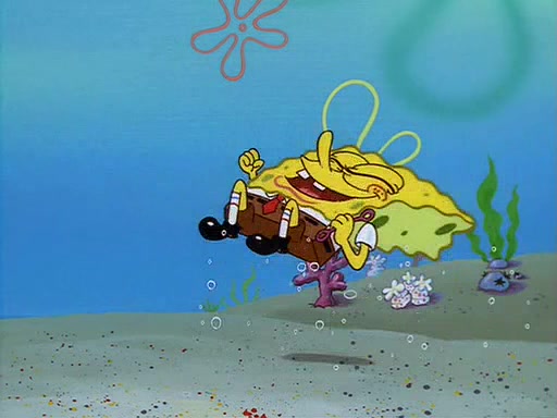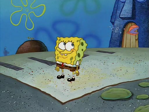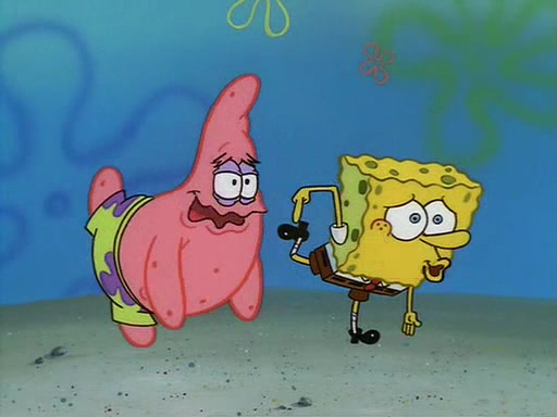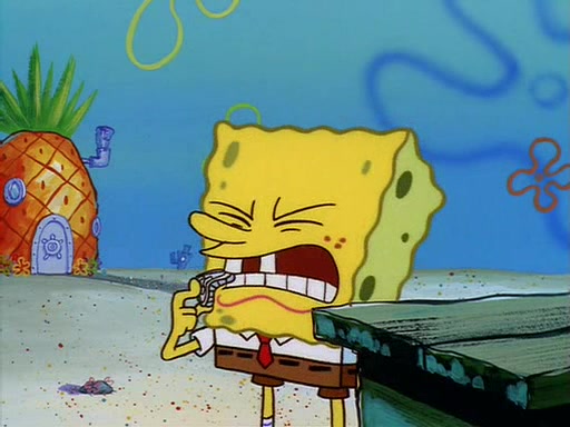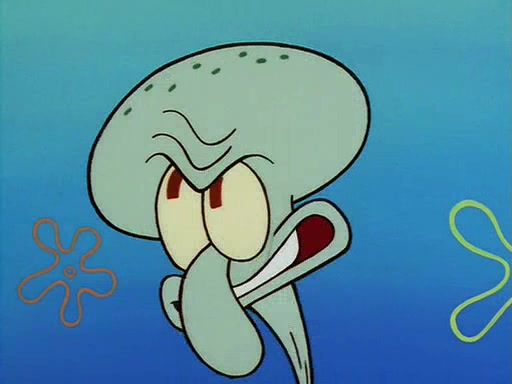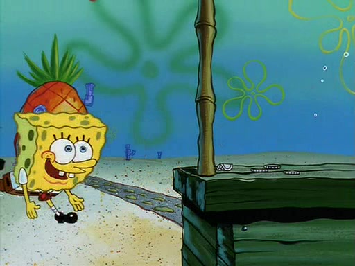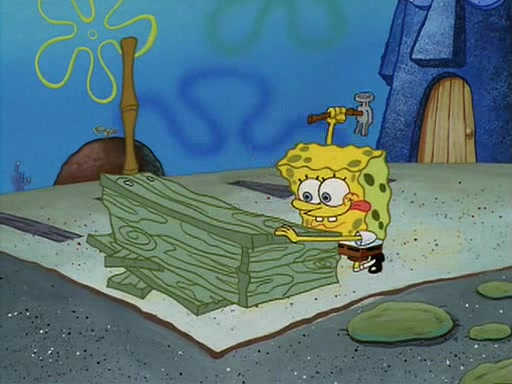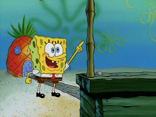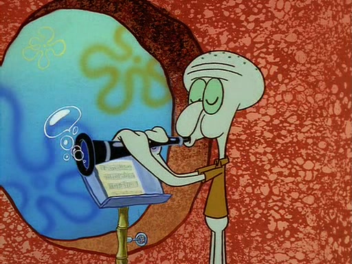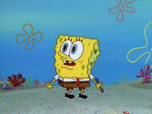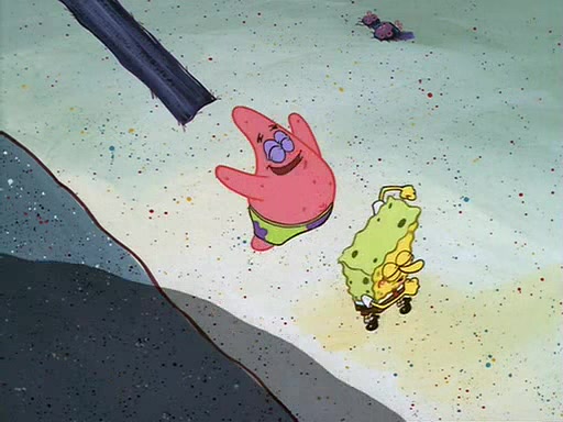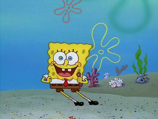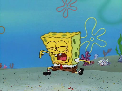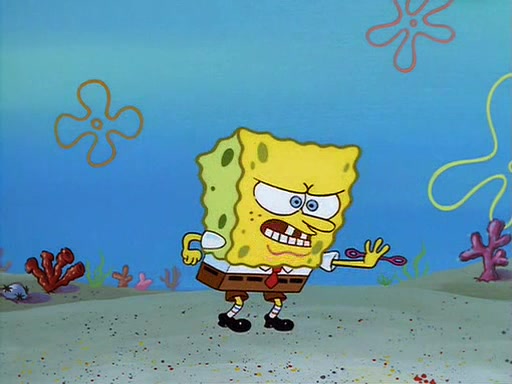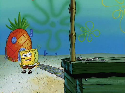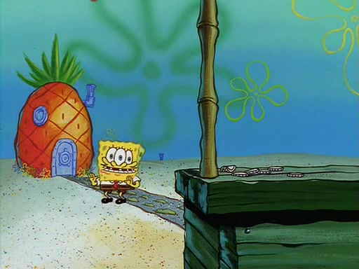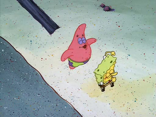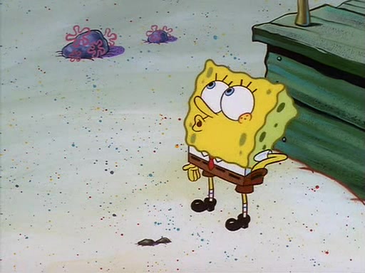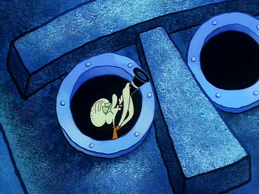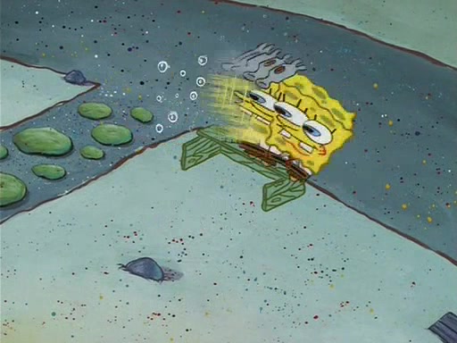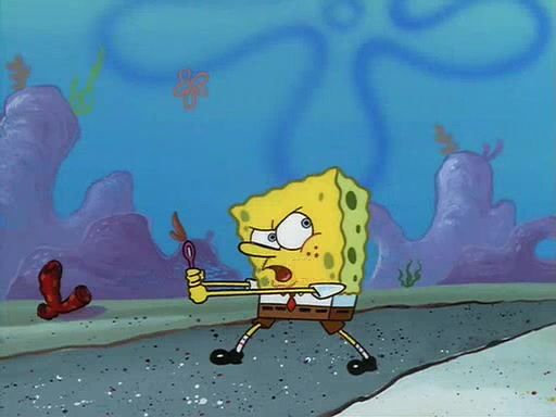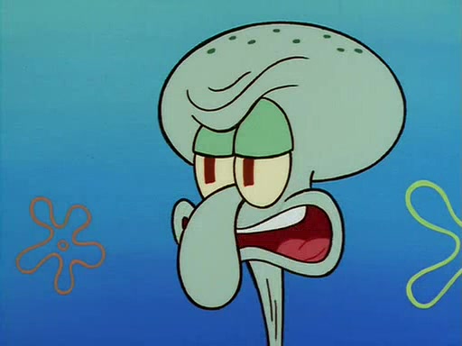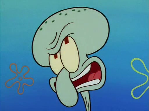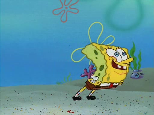 Then, after all the bubbles pop SpongeBob then uses two hands to blow a bubble elephant, Patrick calls it a "giraffe," The elephant (or giraffe) flies into Squidward's window and pops inside the house causing an explosion. Squidward, enraged, comes out and demands to know how they are just making so much noise just blowing bubbles. SpongeBob shows him the technique and blows a butterfly bubble, but Squidward angrily rejects SpongeBob's ideas and shoos SpongeBob and Patrick back into their houses in embarrassment. However, Squidward begins to blow a bubble out of curiosity, but SpongeBob and Patrick return to ask for payment. Squidward the reluctantly has to give them 25 cents for the bubble.