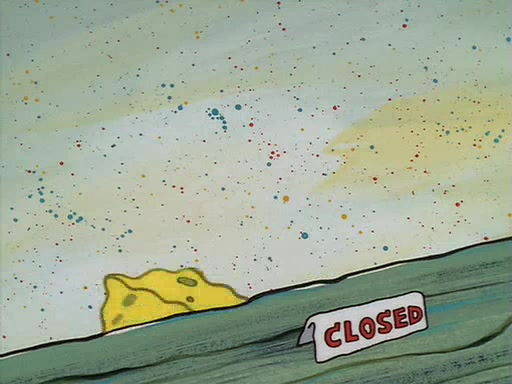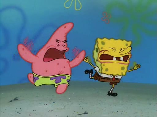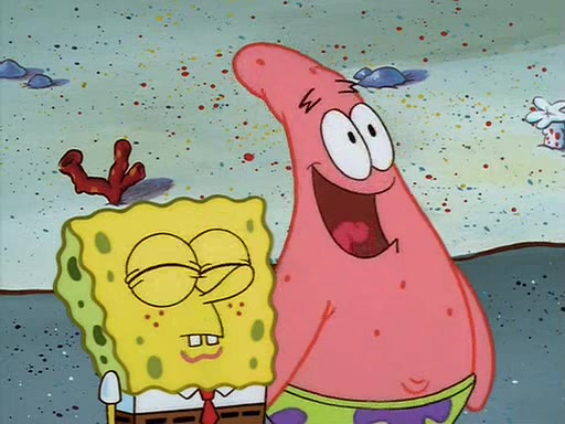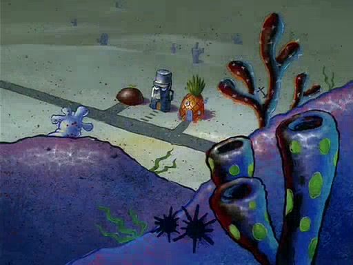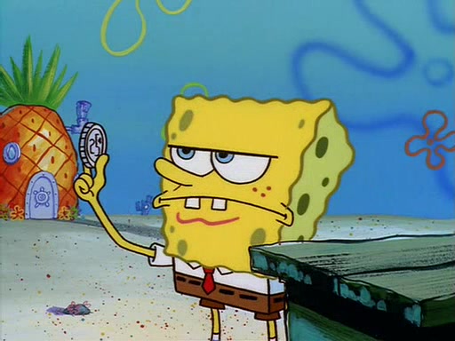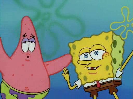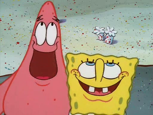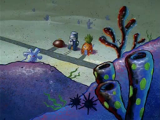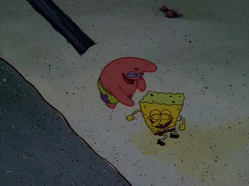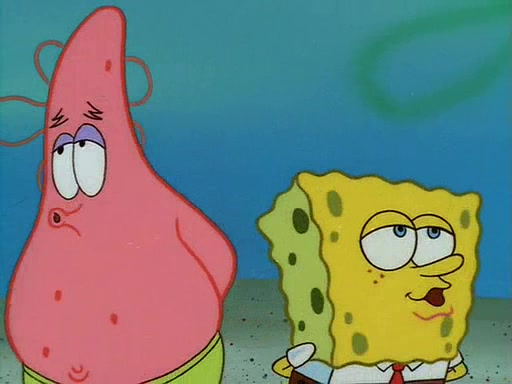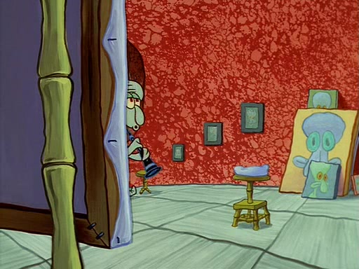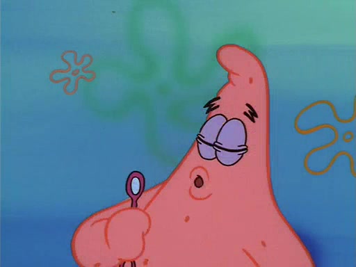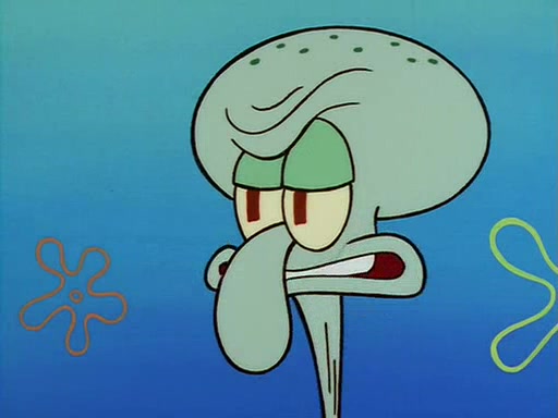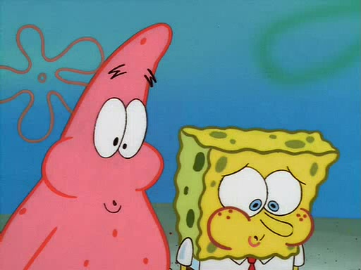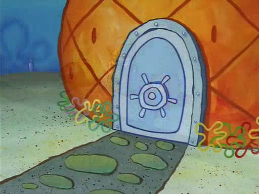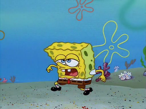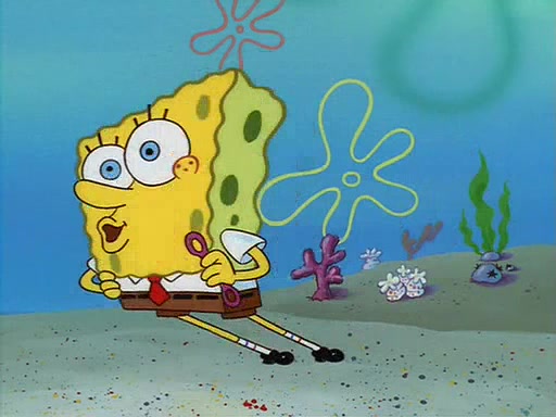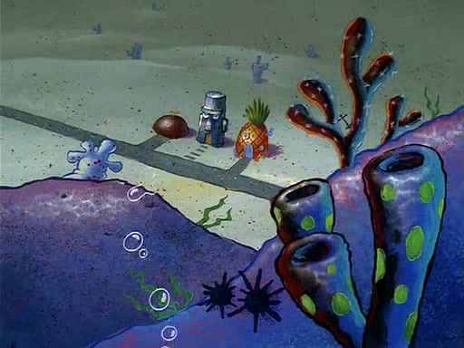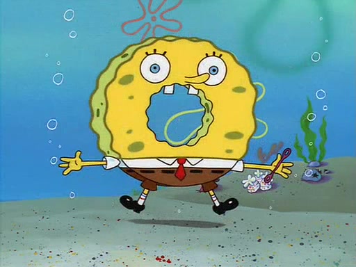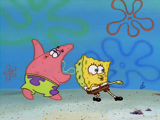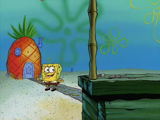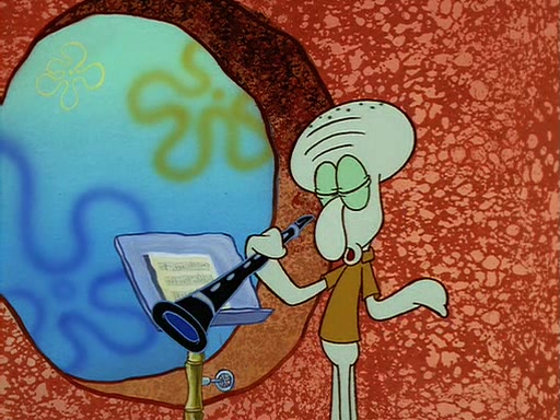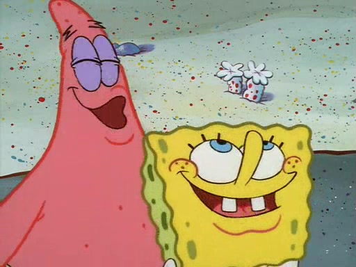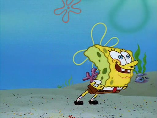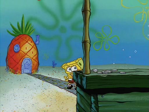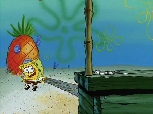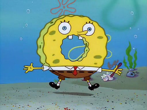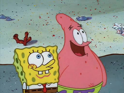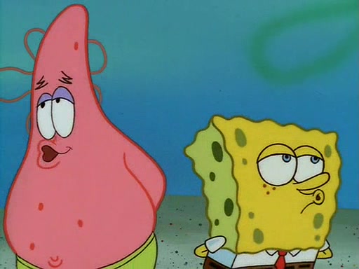 Then, after all the bubbles pop SpongeBob then uses two hands to blow a bubble elephant, Patrick calls it a "giraffe," The elephant (or giraffe) flies into Squidward's window and pops inside the house causing an explosion. Squidward, enraged, comes out and demands to know how they are just making so much noise just blowing bubbles. SpongeBob shows him the technique and blows a butterfly bubble, but Squidward angrily rejects SpongeBob's ideas and shoos SpongeBob and Patrick back into their houses in embarrassment. However, Squidward begins to blow a bubble out of curiosity, but SpongeBob and Patrick return to ask for payment. Squidward the reluctantly has to give them 25 cents for the bubble.