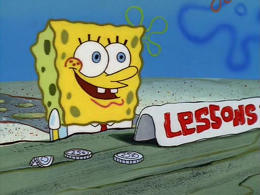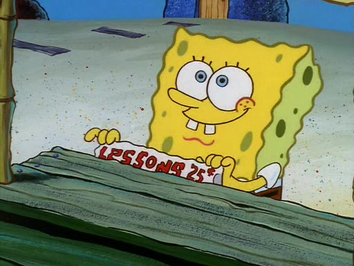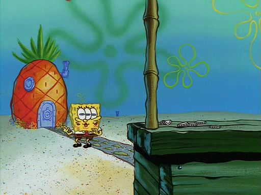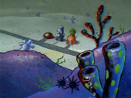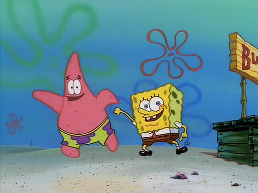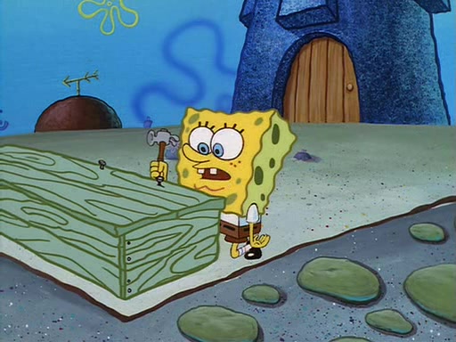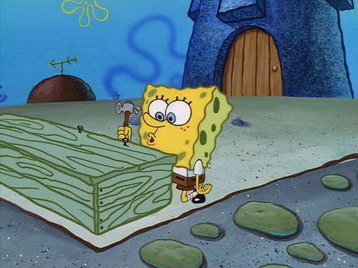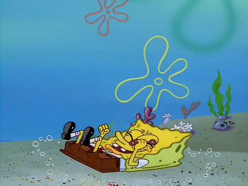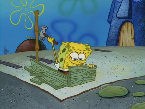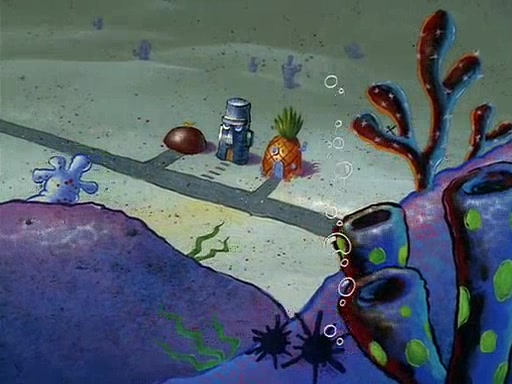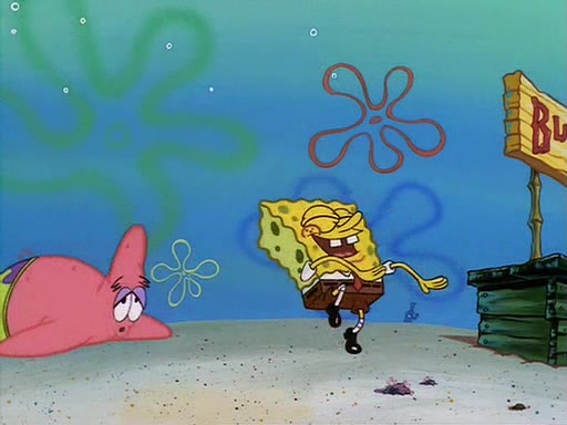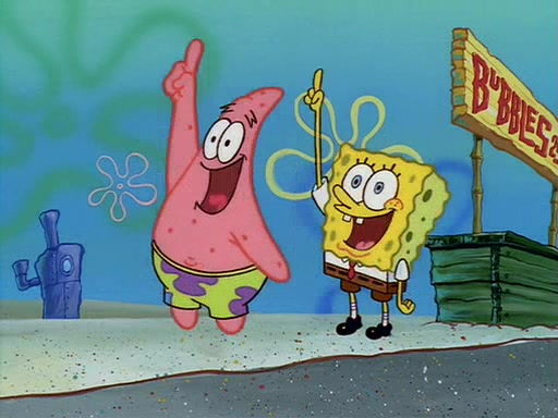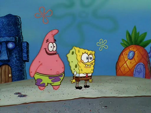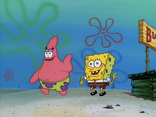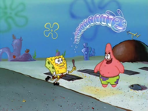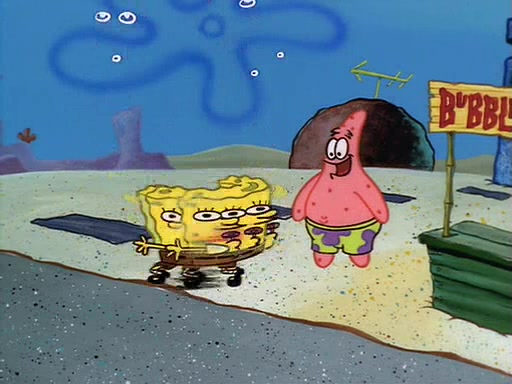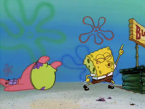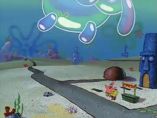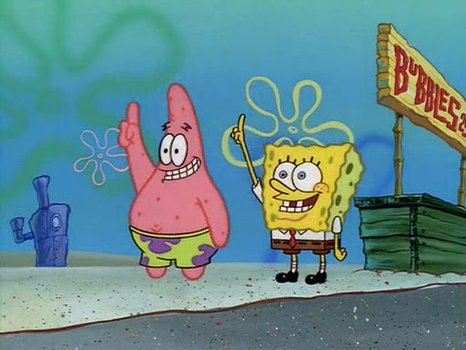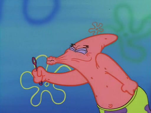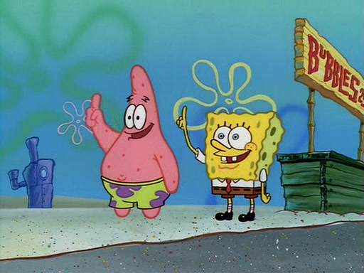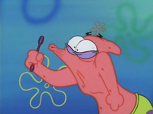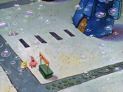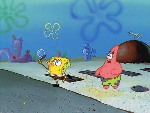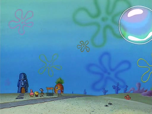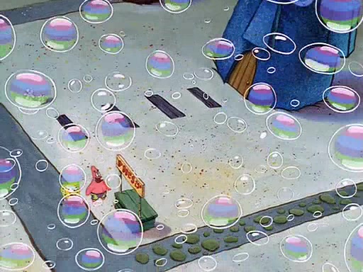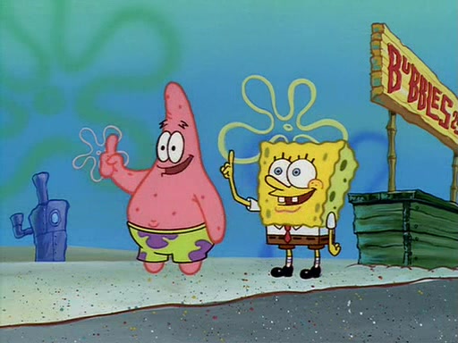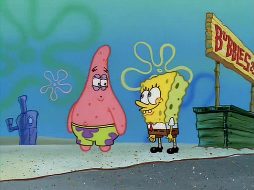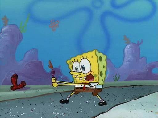 SpongeBob walks outside to breathe in the peacefulness of the neighborhood. Suddenly, he loudly begins to build a bubblestand, much to the dismay and annoyance of Squidward. At the stand, SpongeBob offers to teach how to blow bubbles for twenty-five cents. The noise disturbs Squidward, who demands SpongeBob to be quiet. Patrick comes out, comes to the stand, and asks to try it out. Patrick only buzzes his lips instead of blowing, failing to blow a bubble. SpongeBob offers to teach him for an extra quarter. SpongeBob shows how he blows bubbles with a peculiarly entertaining, yet somewhat peculiar, technique. When he shows Patrick, SpongeBob blows a duck bubble, an ice cube bubble, a caterpillar bubble, and a boat bubble.