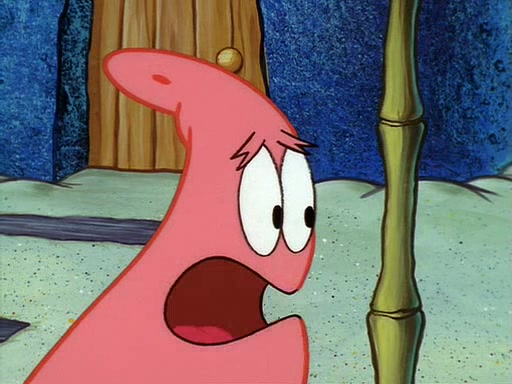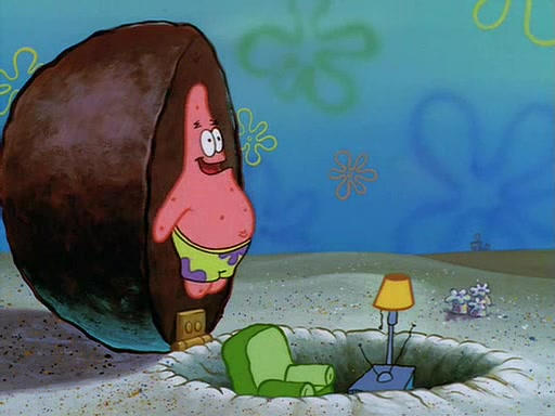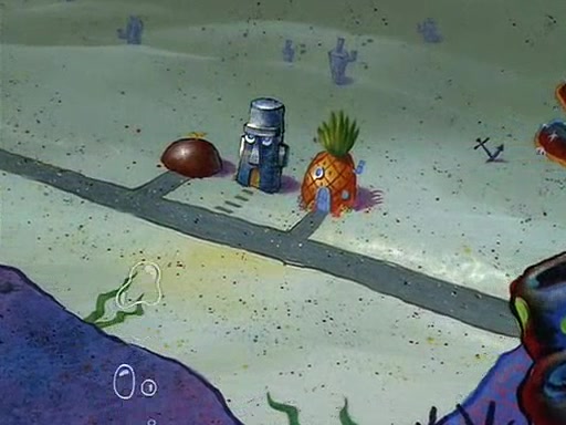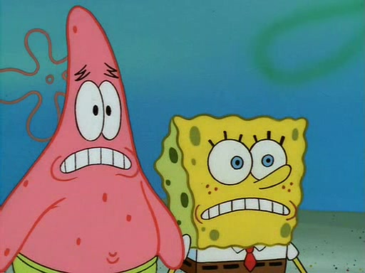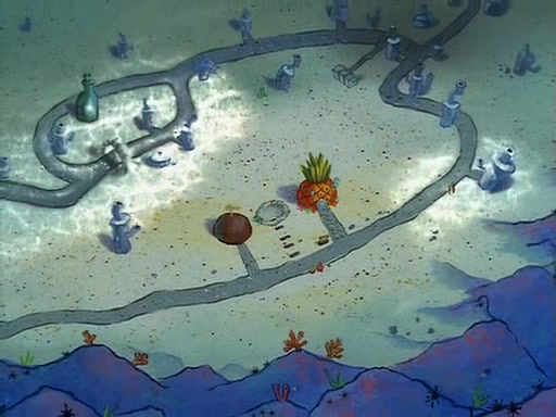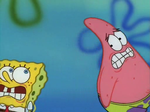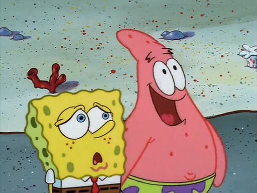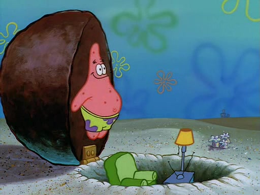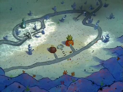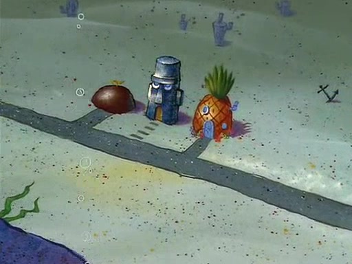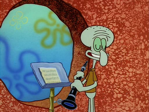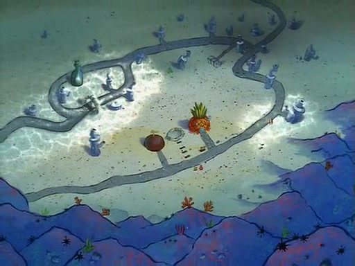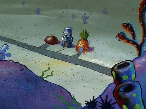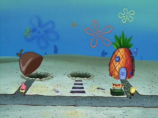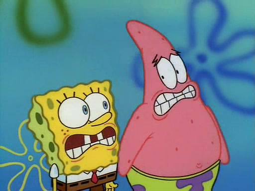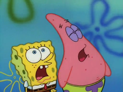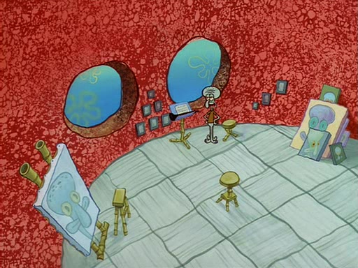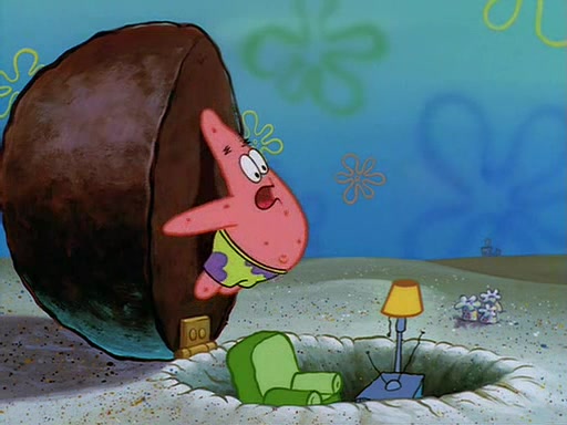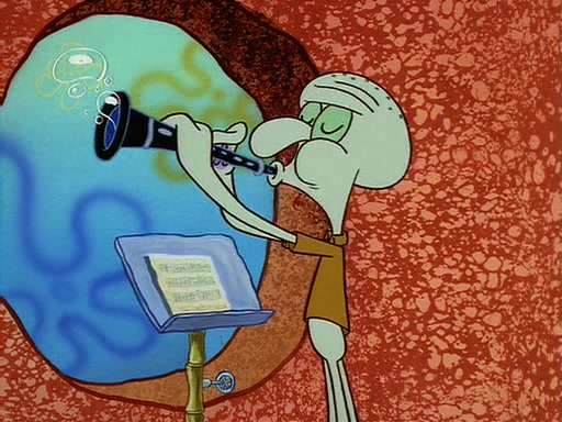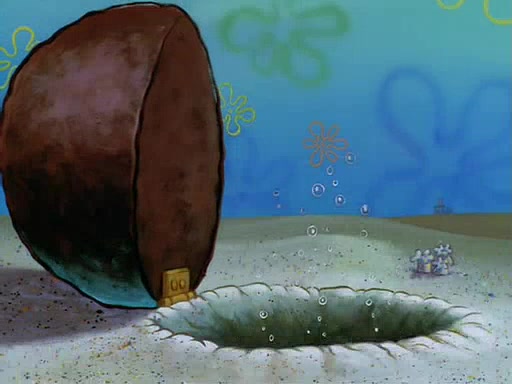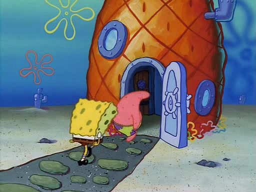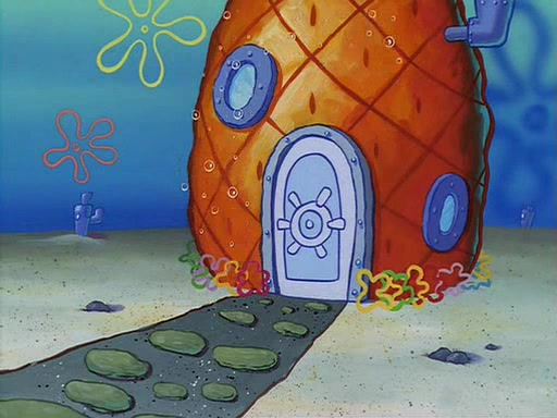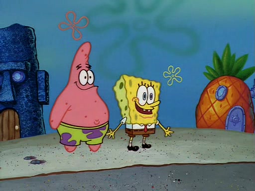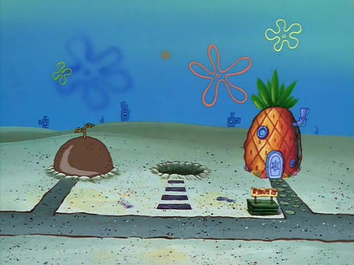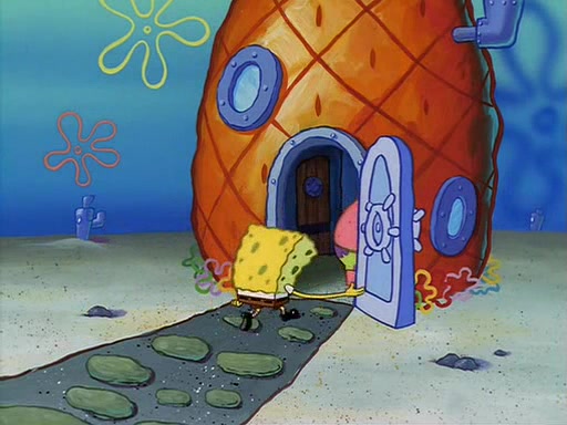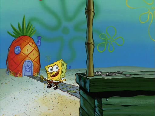 SpongeBob and Patrick try to warn Squidward, but Squidward thinks they're still chanting him and keeps playing, thinking he is "amazing." When he looks outside, he sees himself way way above the ground with SpongeBob and Patrick specks on the ground. The bubble then pops, which then shakes the ground, sending his house back to its original area, albeit with much force. SpongeBob and Patrick look at each other nervously and they retreat to their houses before Squidward can scold them.