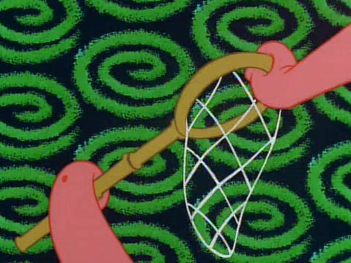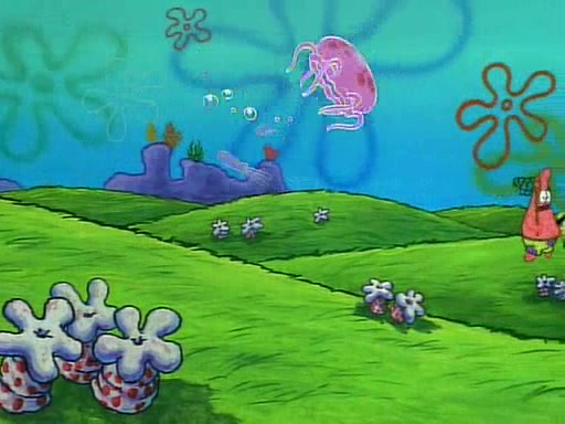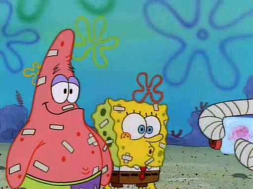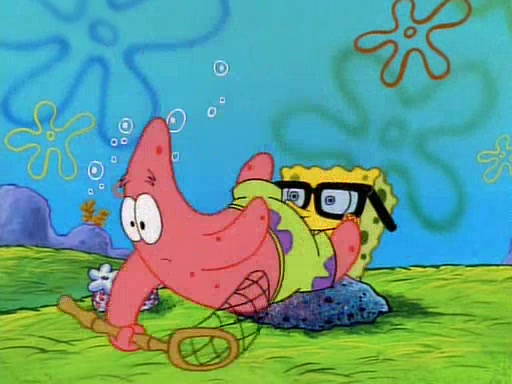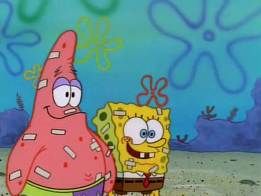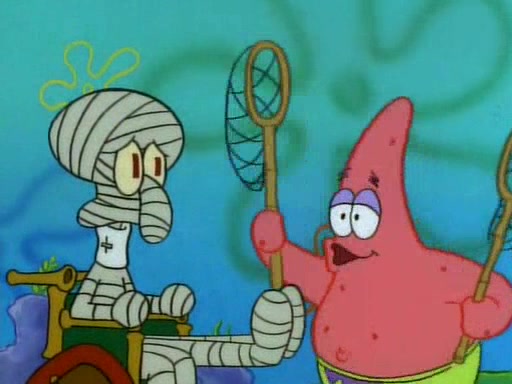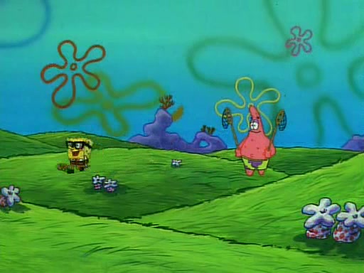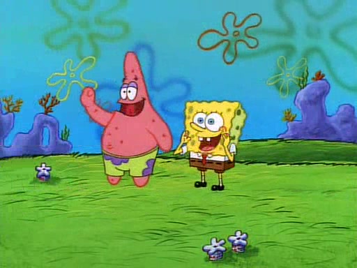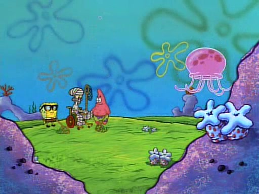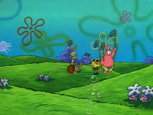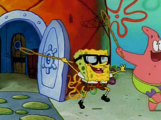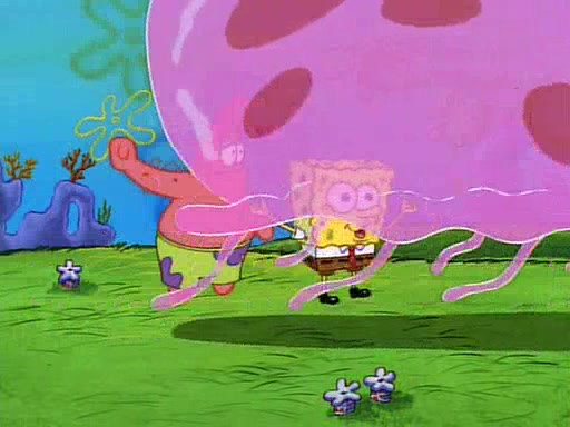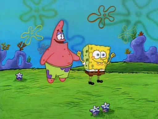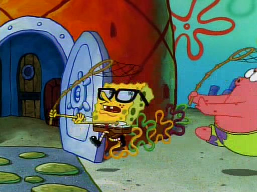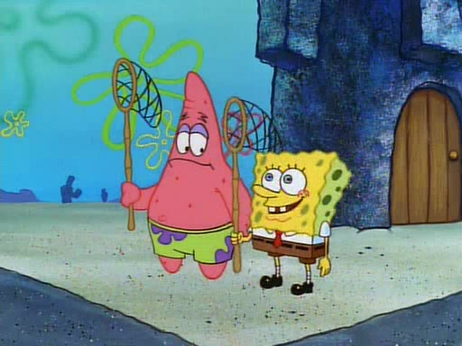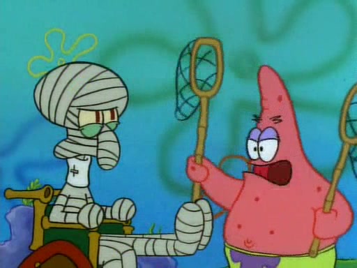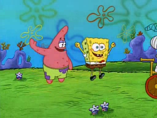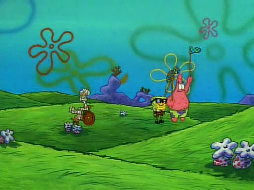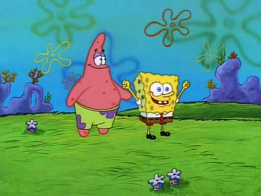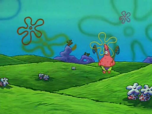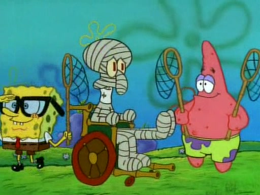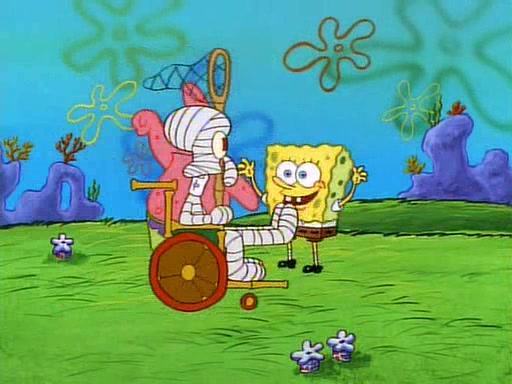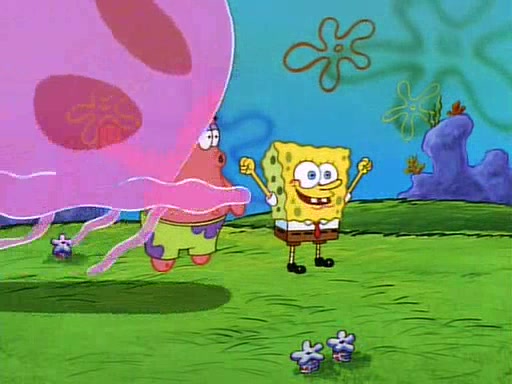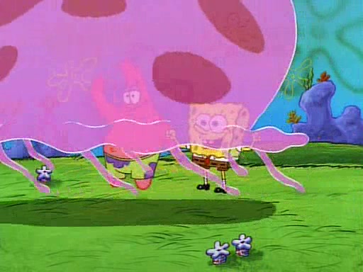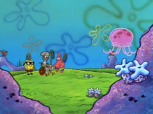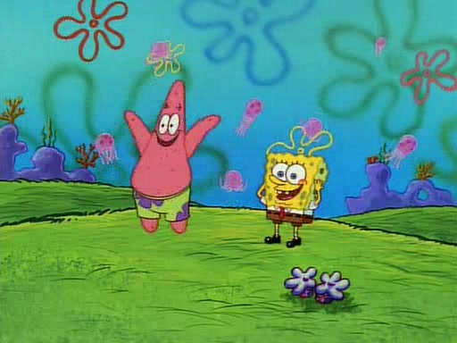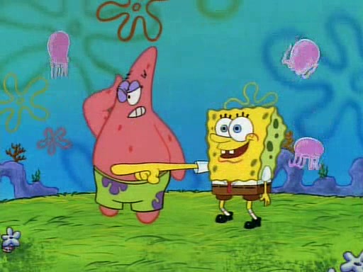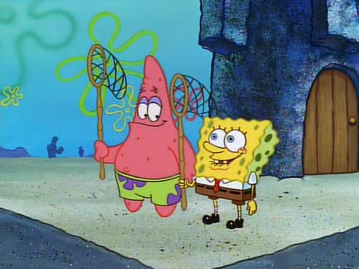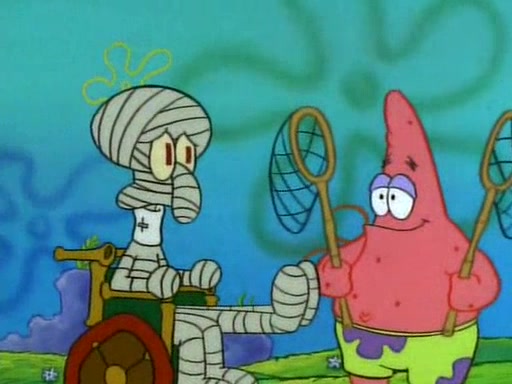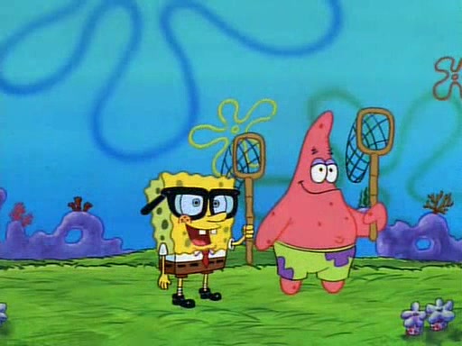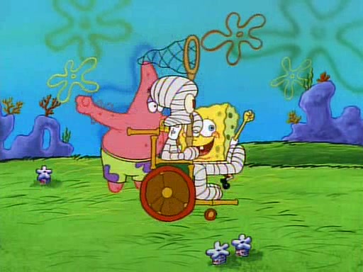 SpongeBob and Patrick then declare that a Jellyfishing expedition would be in order for the "Best Day Ever." When they arrive in Jellyfish Fields, SpongeBob tells Patrick to give a net to Squidward, while he finds "a good specimen." He (Patrick) explains that Squidward must, "firmly grasp [the net] in your hand," but when Patrick fails to put a jellyfishing net in Squidward's cast covered hand he stabs it through Squidward's palm, much to his chagrin and pain.