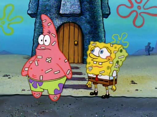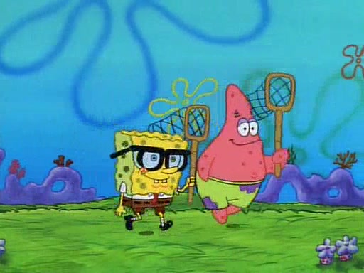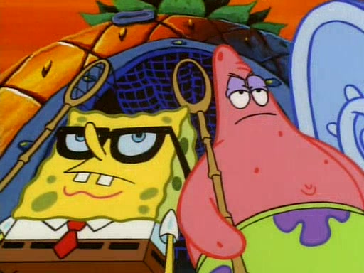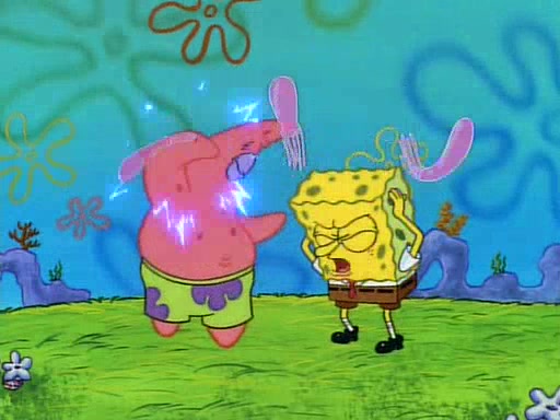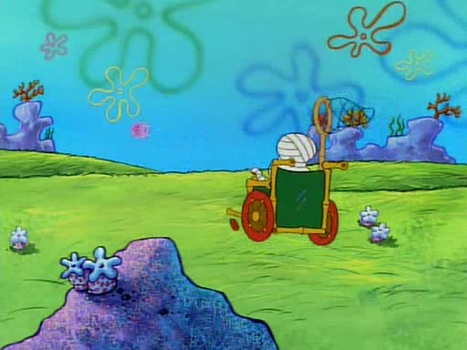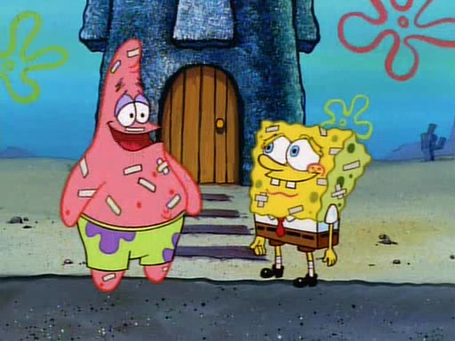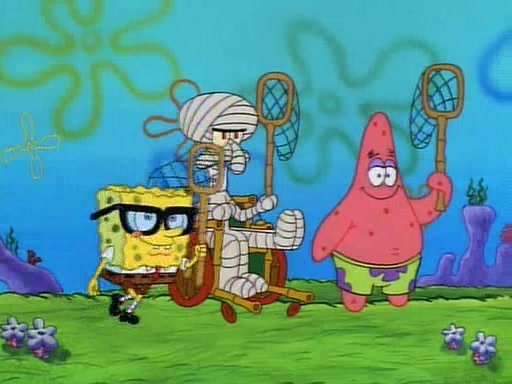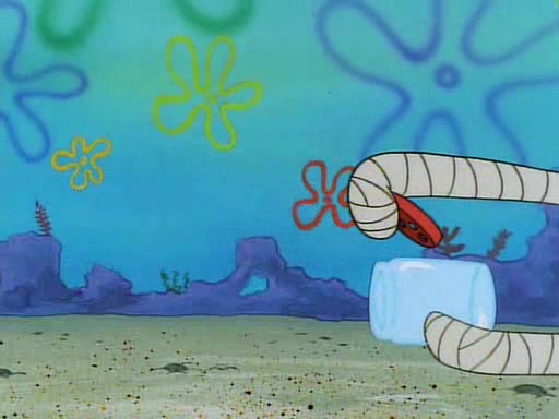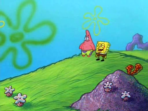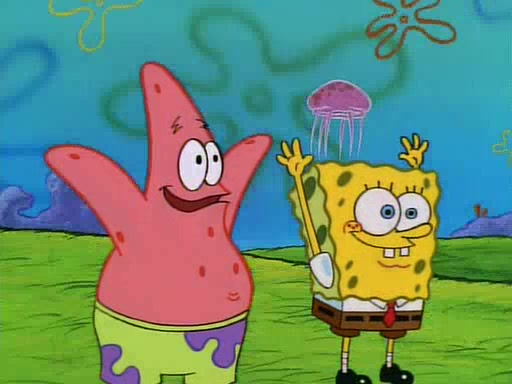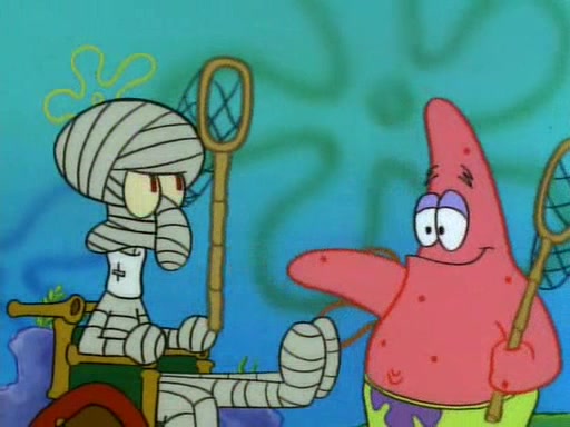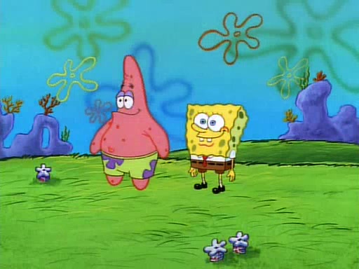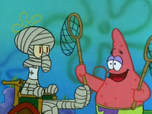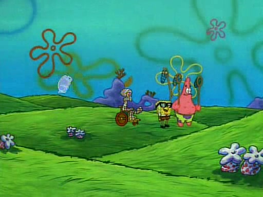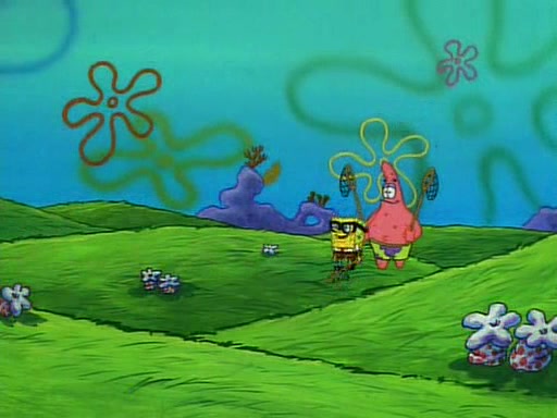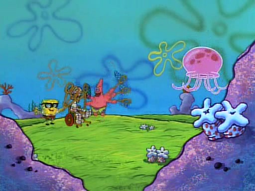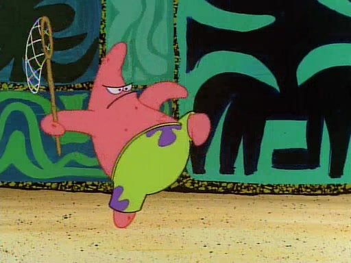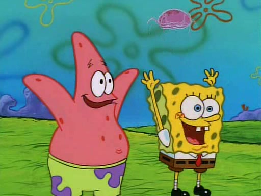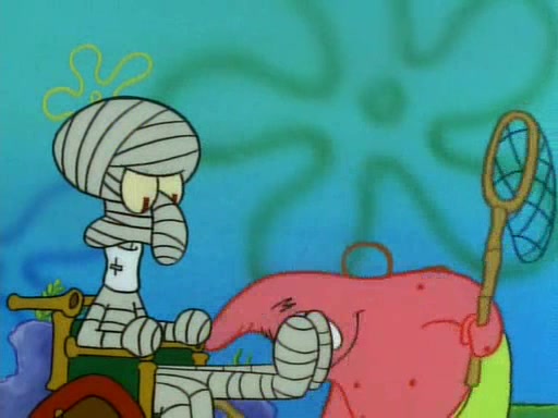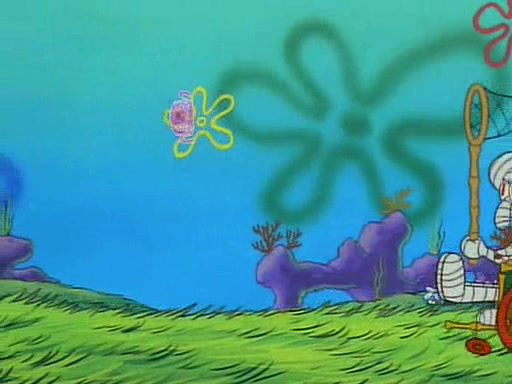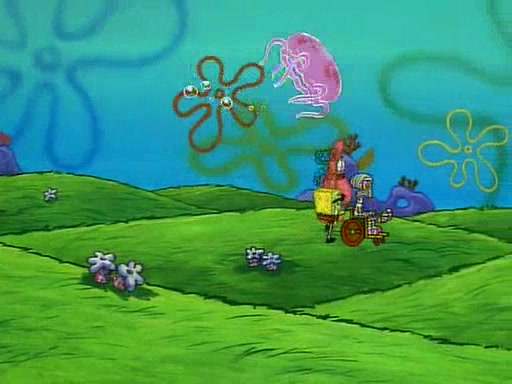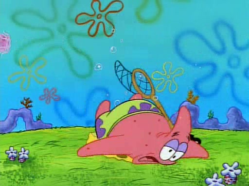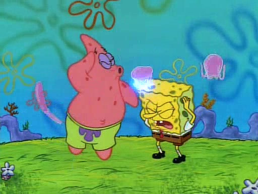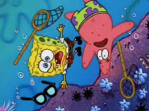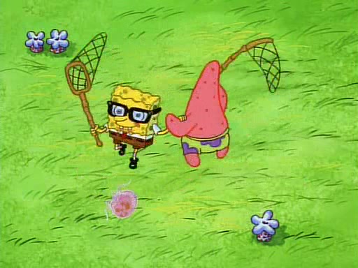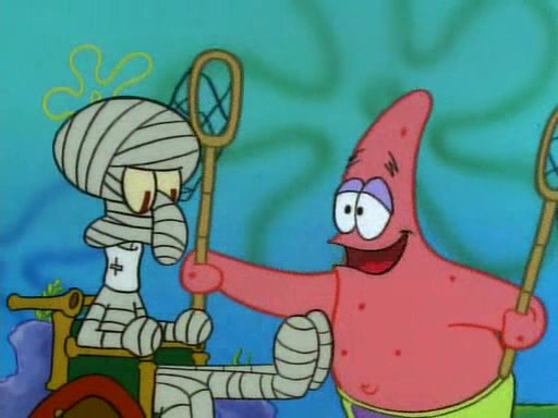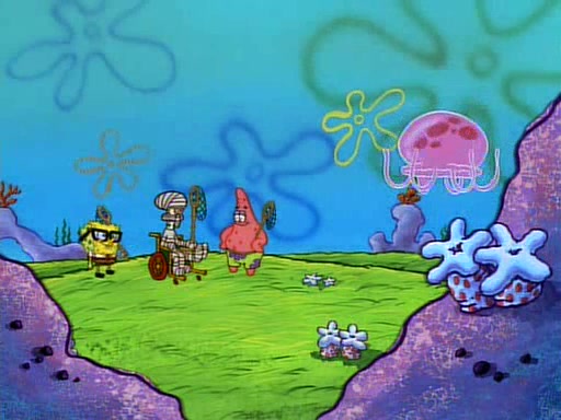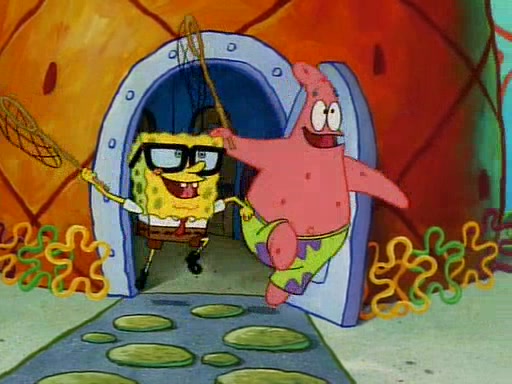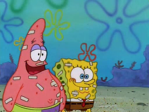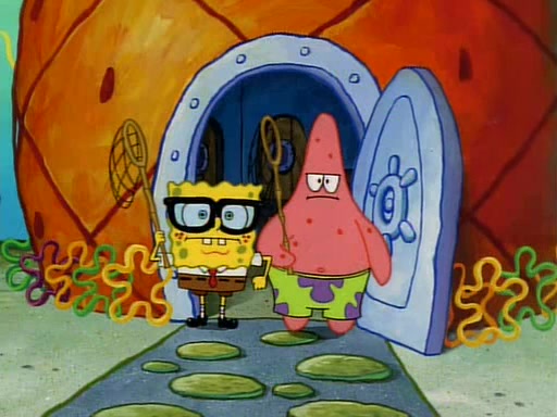 SpongeBob and Patrick then declare that a Jellyfishing expedition would be in order for the "Best Day Ever." When they arrive in Jellyfish Fields, SpongeBob tells Patrick to give a net to Squidward, while he finds "a good specimen." He (Patrick) explains that Squidward must, "firmly grasp [the net] in your hand," but when Patrick fails to put a jellyfishing net in Squidward's cast covered hand he stabs it through Squidward's palm, much to his chagrin and pain.