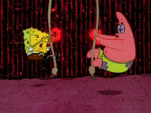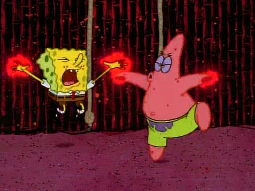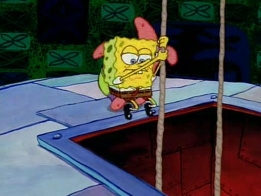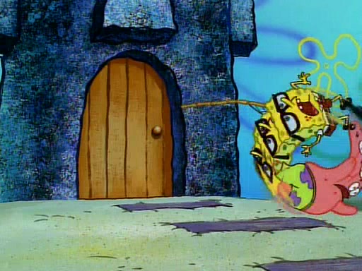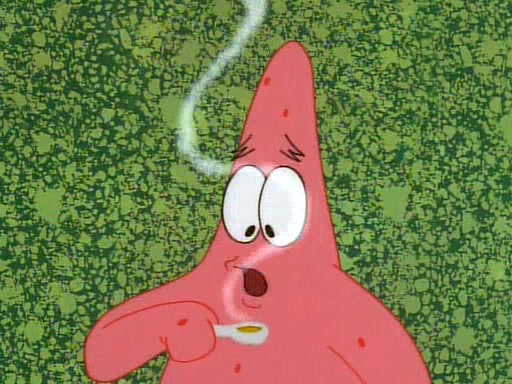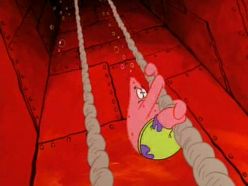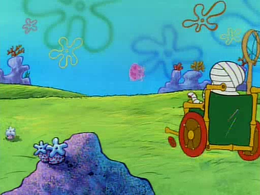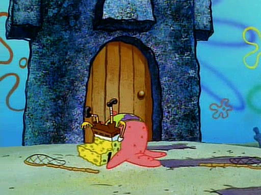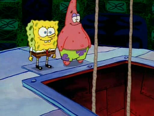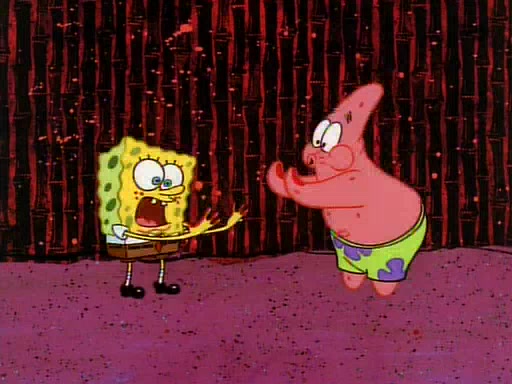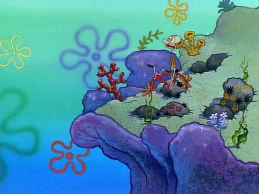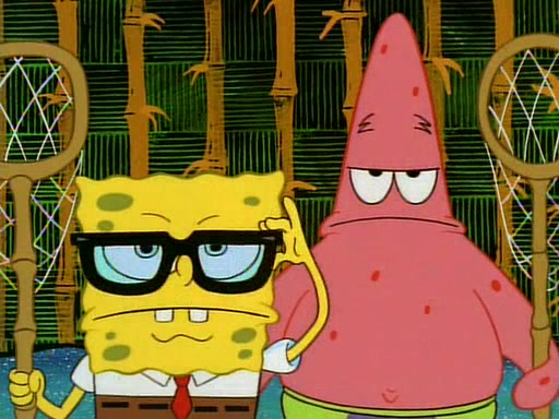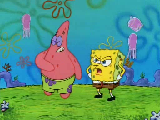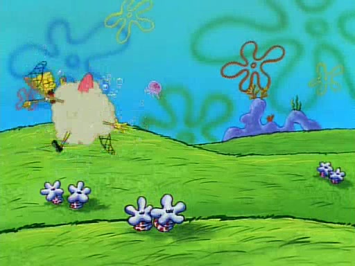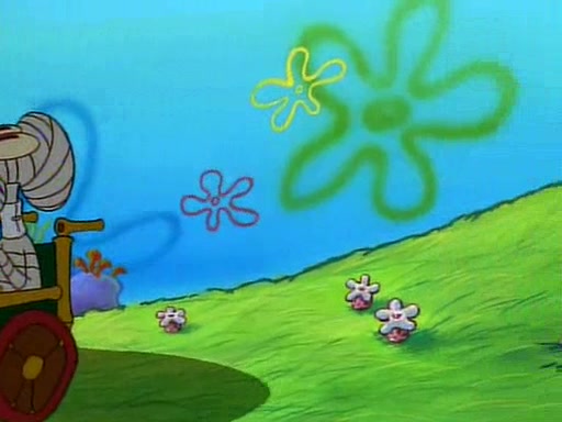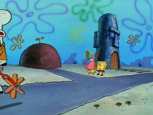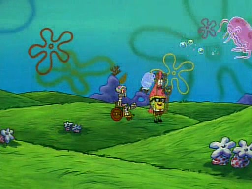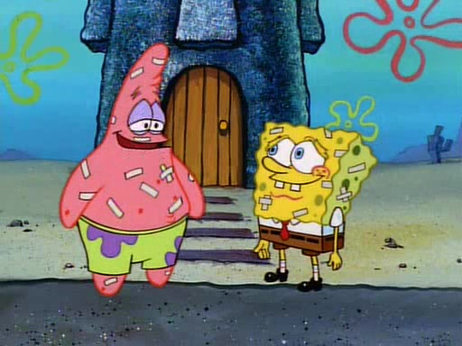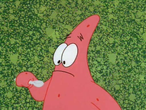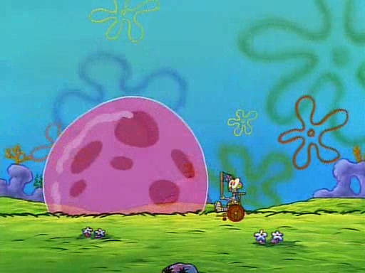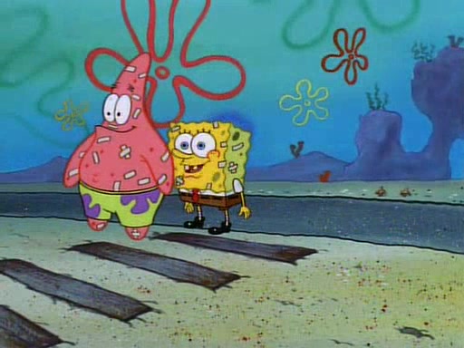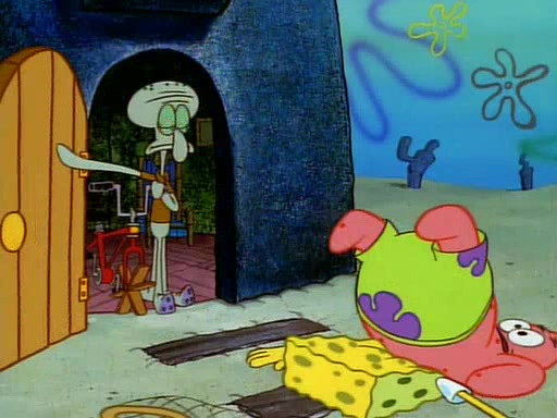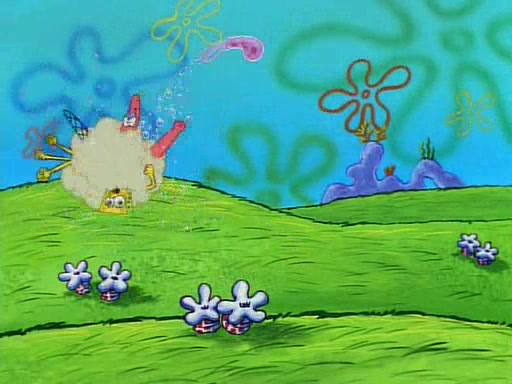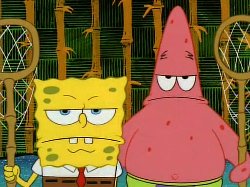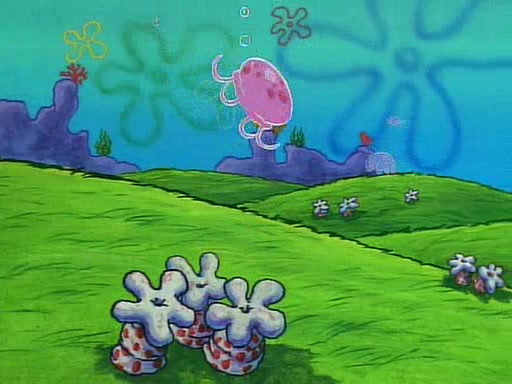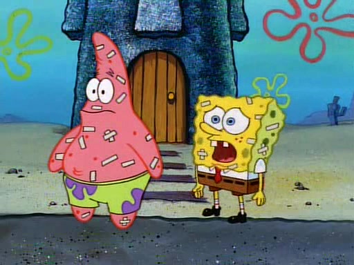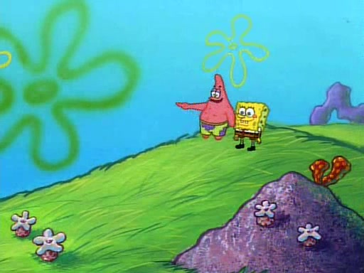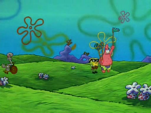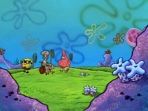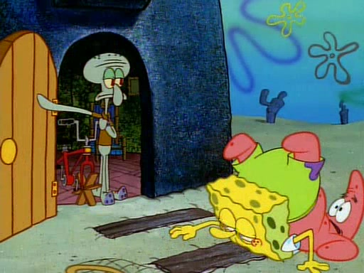SpongeBob and Patrick then declare that a Jellyfishing expedition would be in order for the "Best Day Ever." When they arrive in Jellyfish Fields, SpongeBob tells Patrick to give a net to Squidward, while he finds "a good specimen." He (Patrick) explains that Squidward must, "firmly grasp [the net] in your hand," but when Patrick fails to put a jellyfishing net in Squidward's cast covered hand he stabs it through Squidward's palm, much to his chagrin and pain.