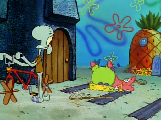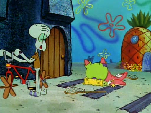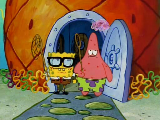 The episode begins with a jellyfish swimming by SpongeBob's House, where SpongeBob and Patrick then observe it through a massive telescope protruding from a window at SpongeBob's house. They then slide down ropes (causing them to get rope burn) and put their nets together, and SpongeBob puts on his glasses. They prepare for Jellyfishing like a pro, but then meet Squidward and ask him if he wants to join them. He says that he can't go with them because he's busy and goes bicycling instead. SpongeBob asks Squidward if he can join them next time. Squidward sarcastically says yes and goes off.