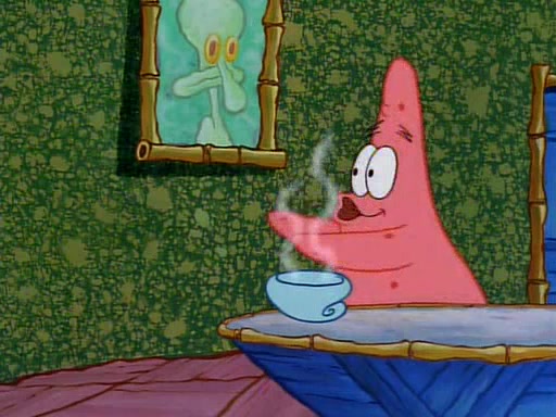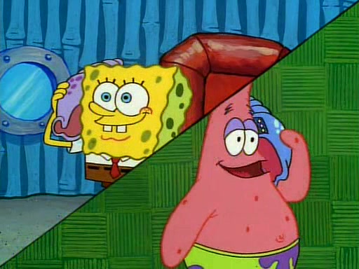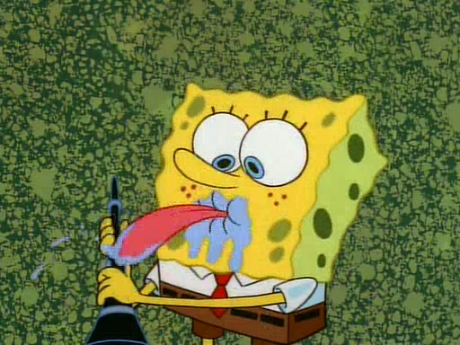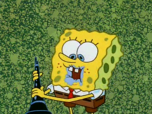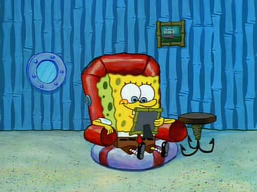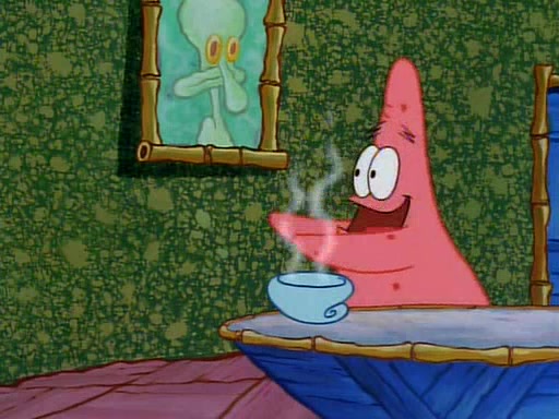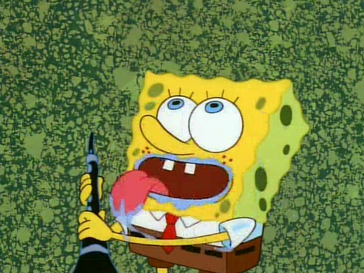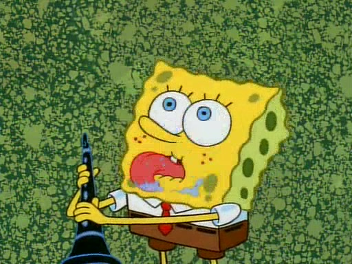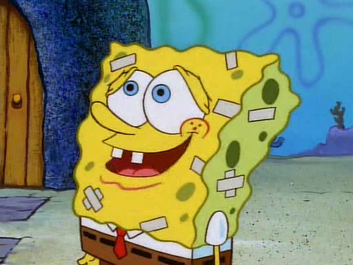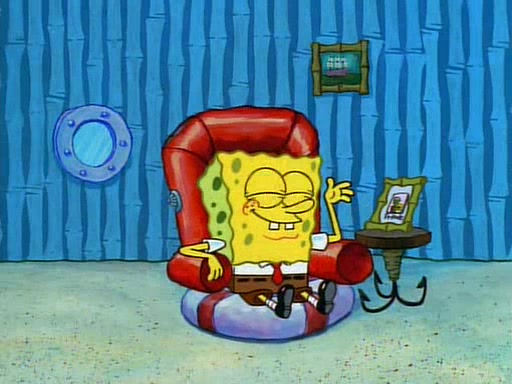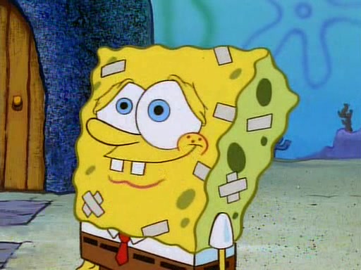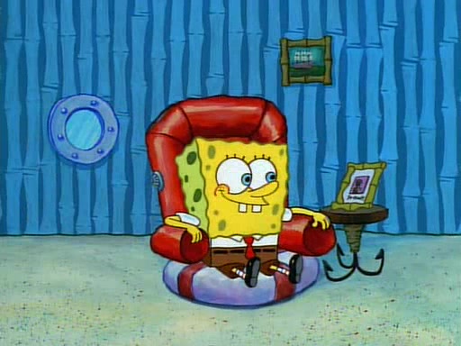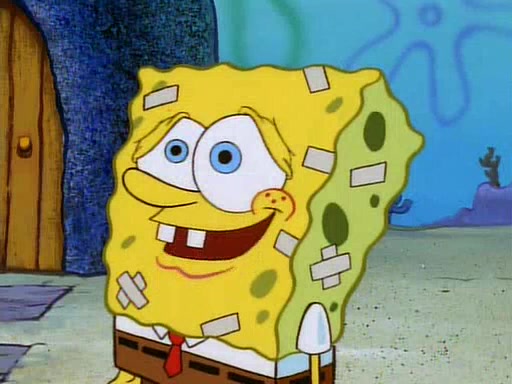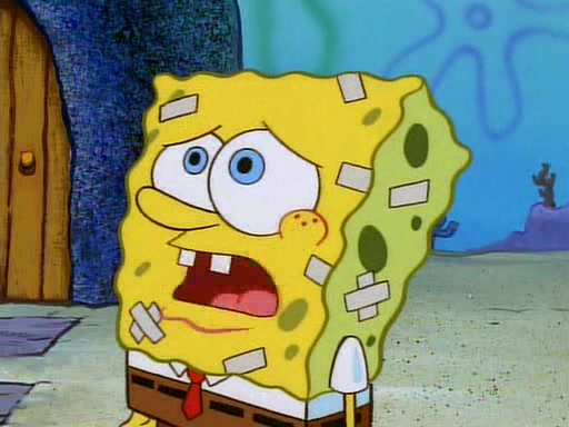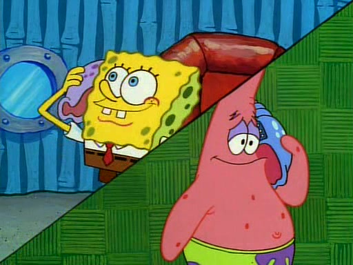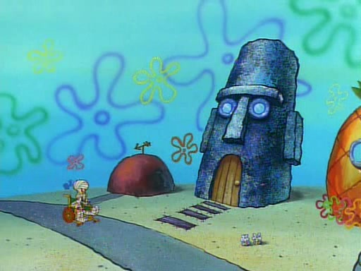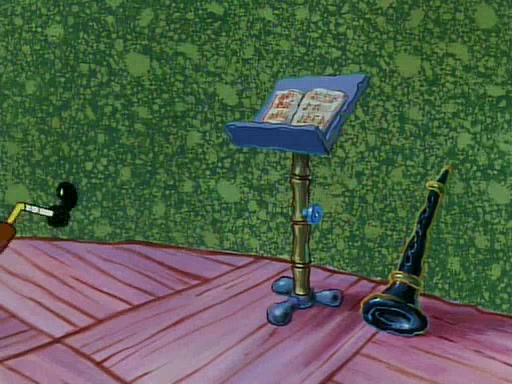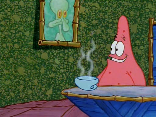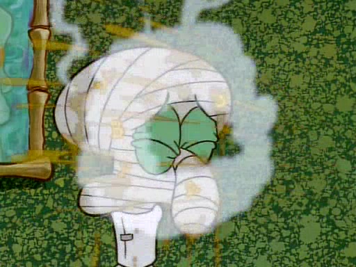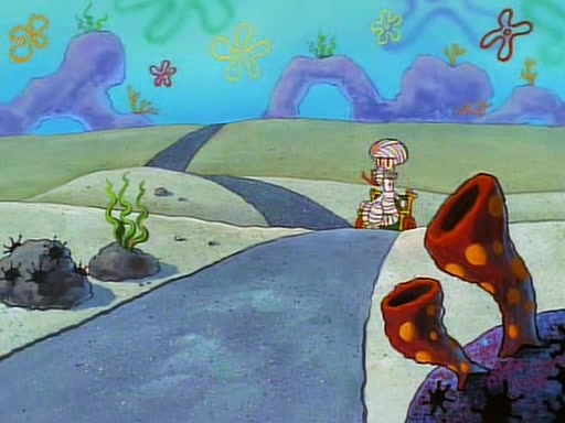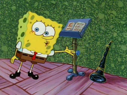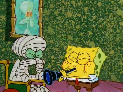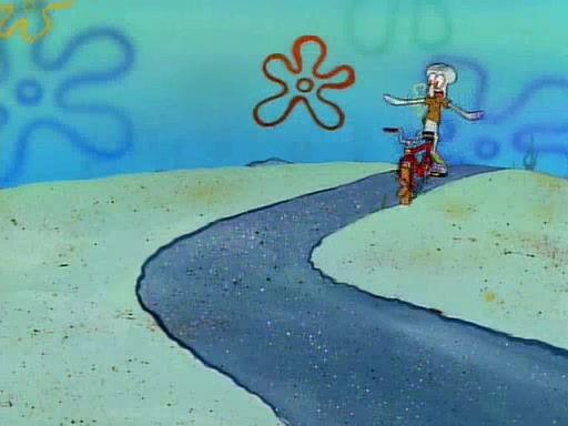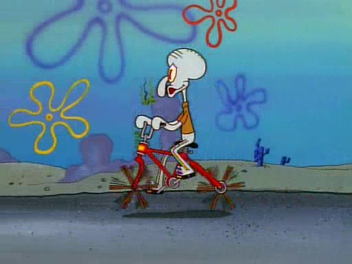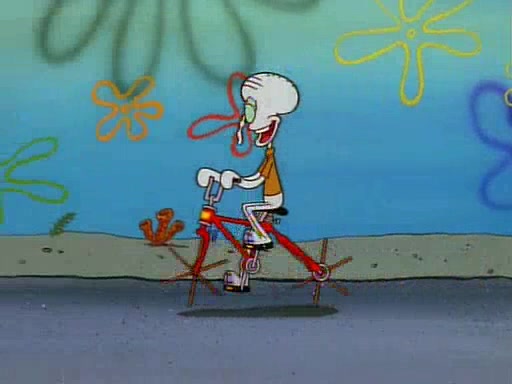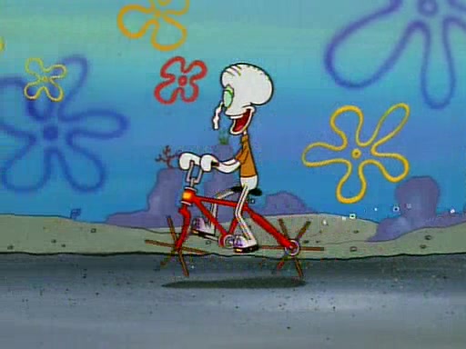 Unfortunately, while he is bicycling, he has an accident involving a jellyfish and is ultimately left wheelchair bound. SpongeBob and Patrick decide that what Squidward needs is a "Best Day Ever." It begins at Squidward's house where Patrick offers Squidward some soup. (For whatever reason, the doctors put bandages all over Squidward's body, including his mouth). Patrick blows the hot soup onto Squidward's bandaged face several times before SpongeBob says that soup isn't a good idea. SpongeBob then suggests that some music would be good, and gets Squidward's clarinet. He blows a bad note before realizing that his lips are too dry, and goes through several disgusting motions of trying to wet his lips. Patrick soon violently takes the instrument away from SpongeBob, declaring music not to be a good thing for Squidward either.