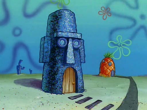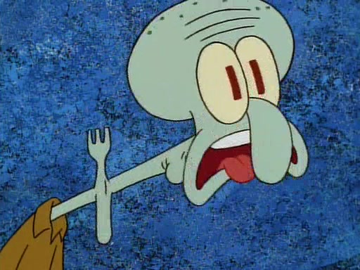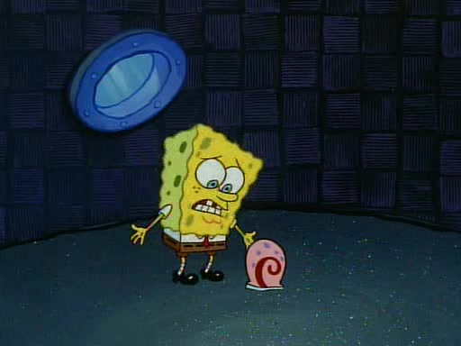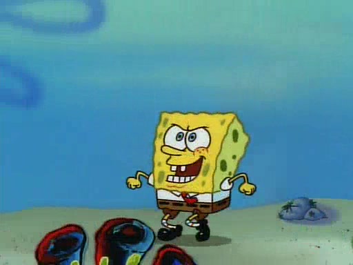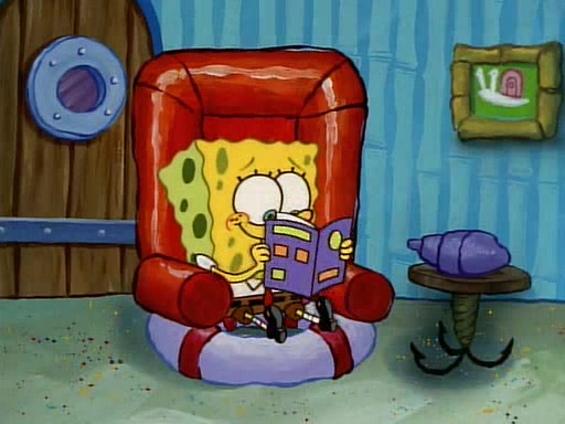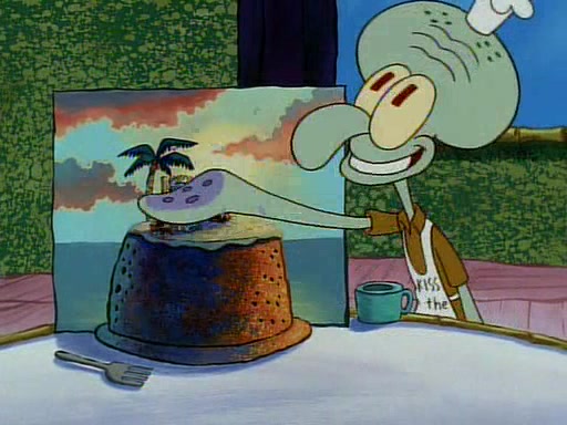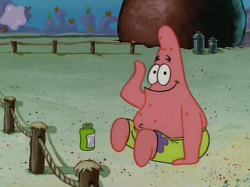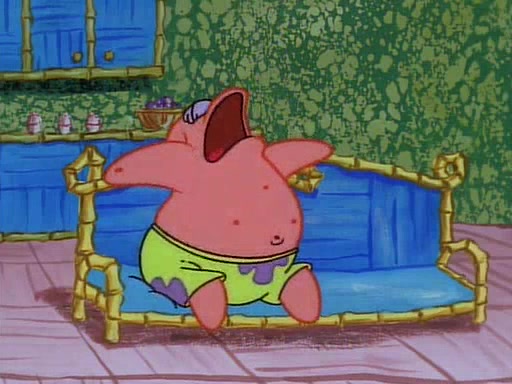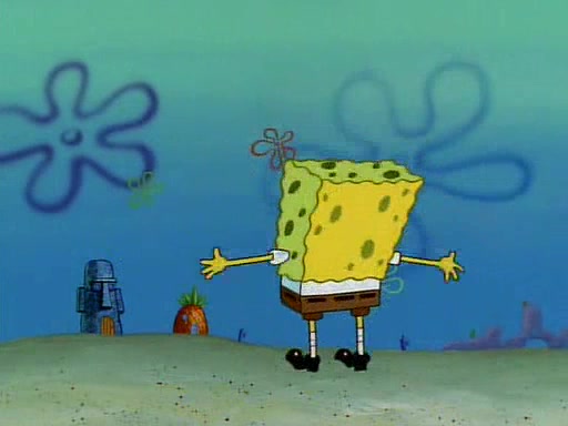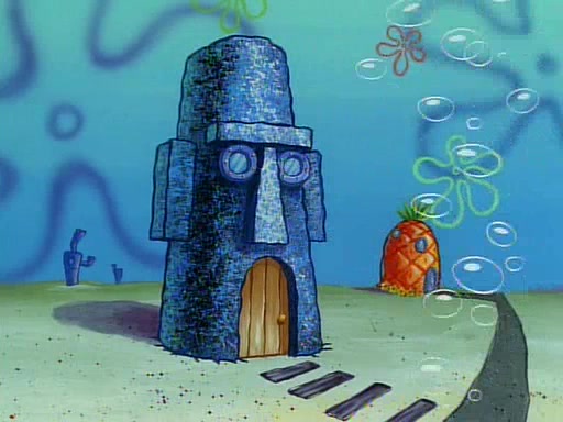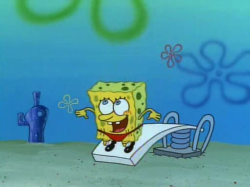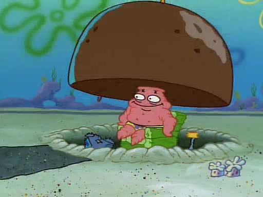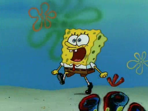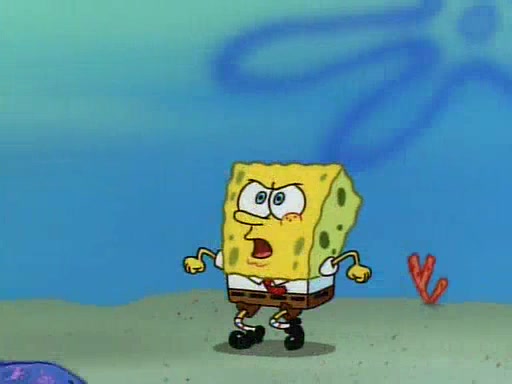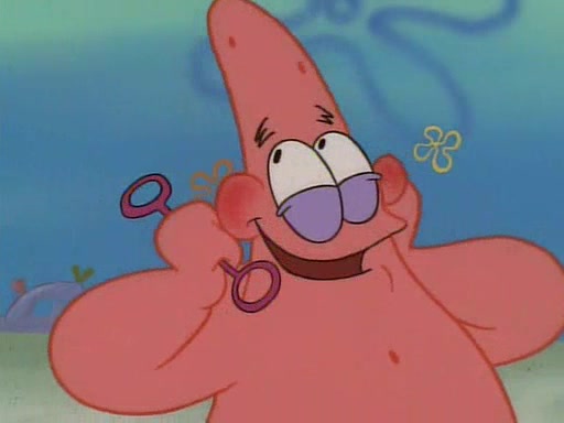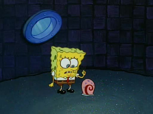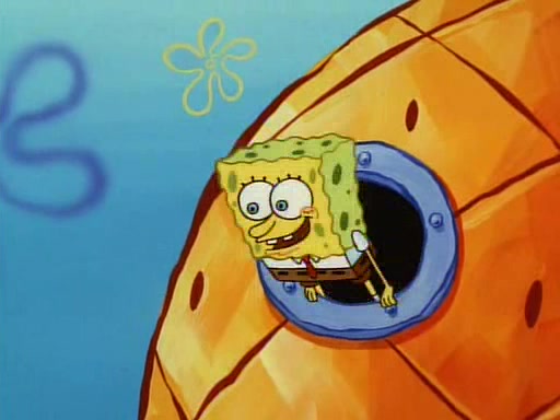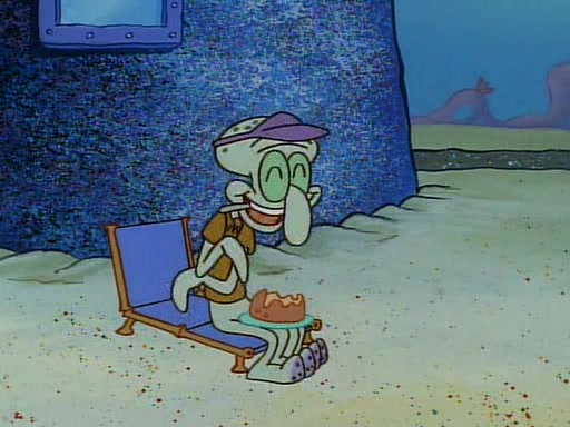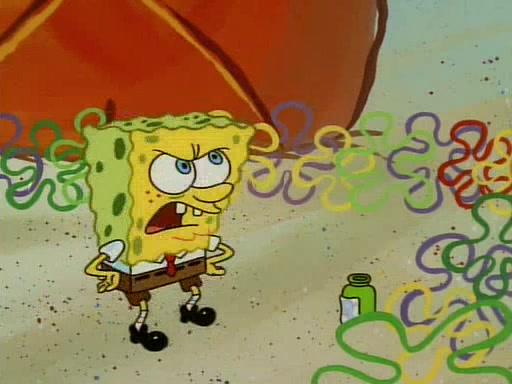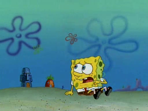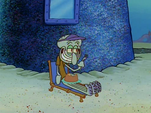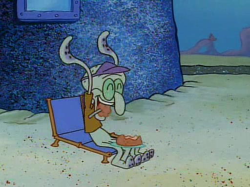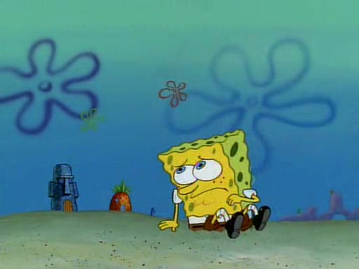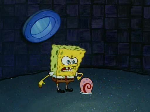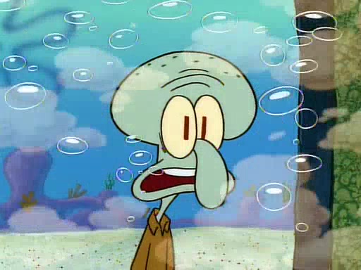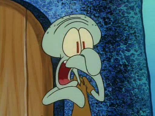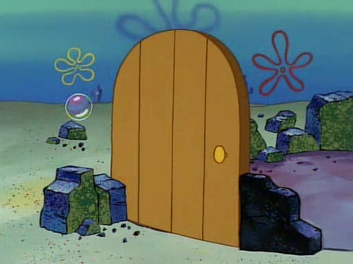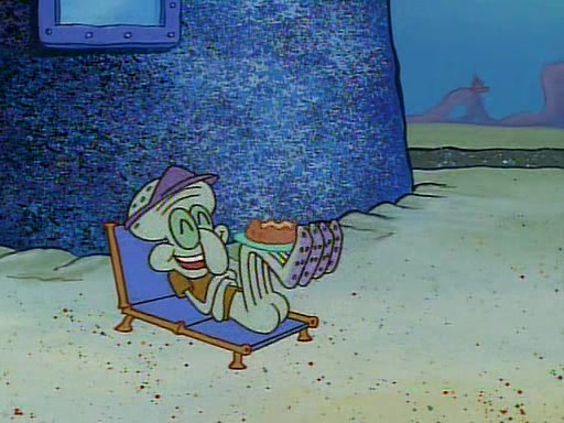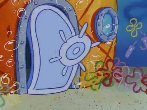 Inside, SpongeBob plays a song (badly) for Squidward on his Double Bass (which he thinks is a bassinet) and when Patrick appears in the window and interrupts the song, SpongeBob destroys the instrument in a fit of rage, and Squidward kicks him out. Squidward then tries to take a bath but Patrick is in the tub. SpongeBob appears in the window and sees this, and he and Patrick begin arguing again, driving Squidward crazy.