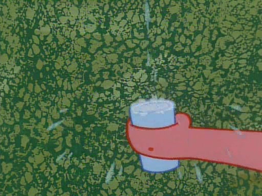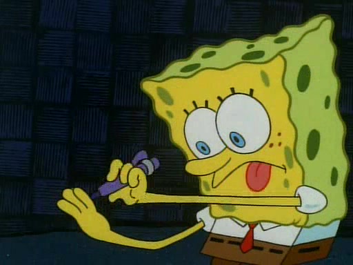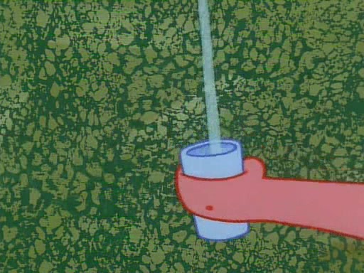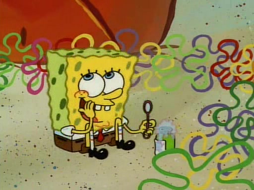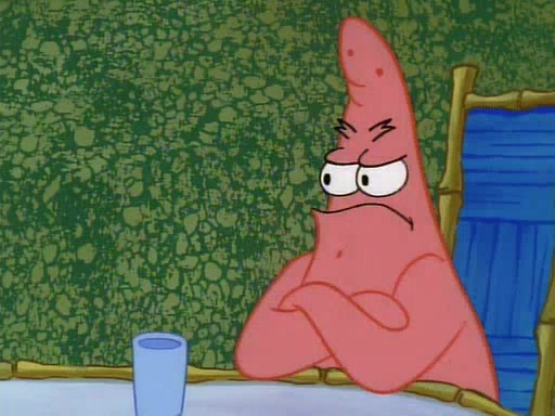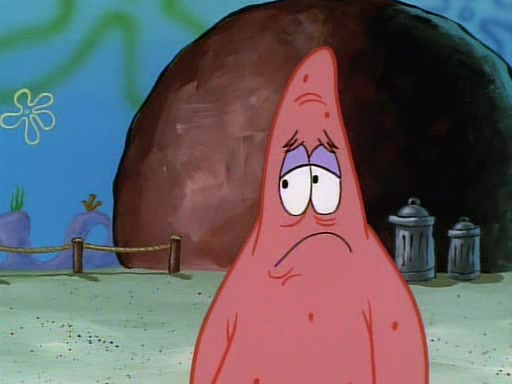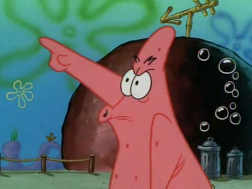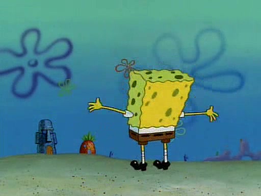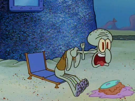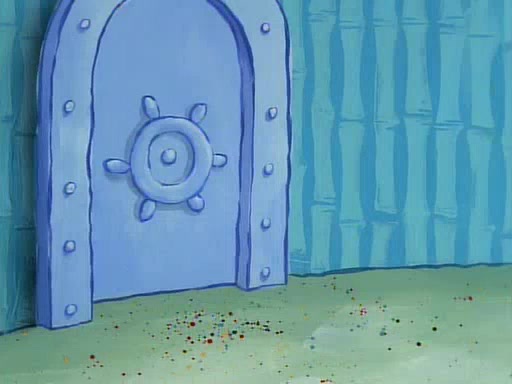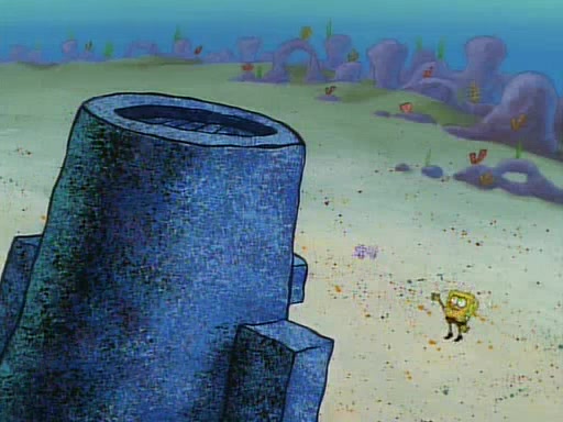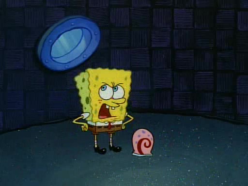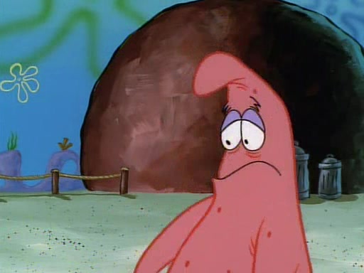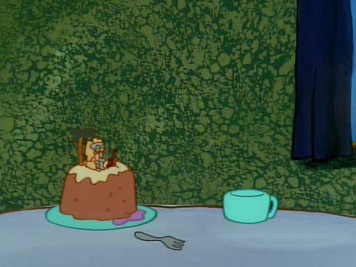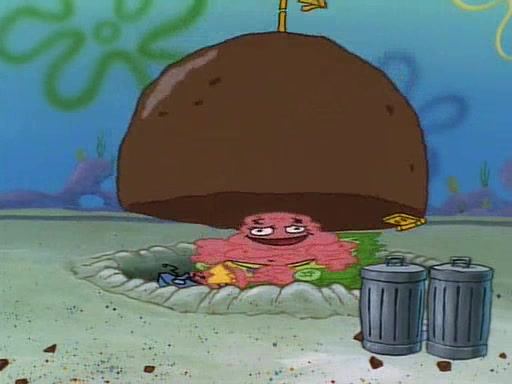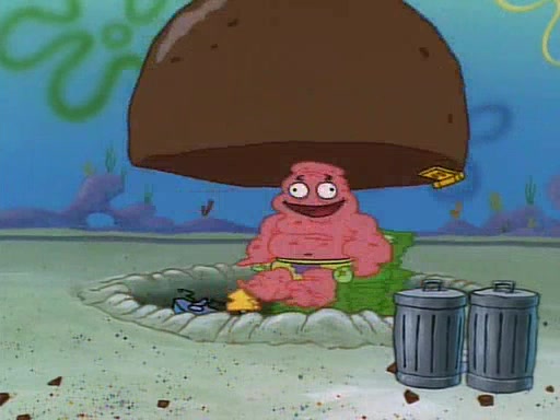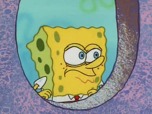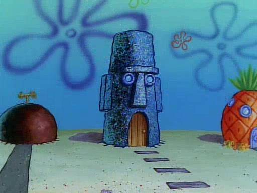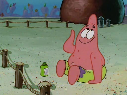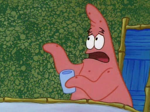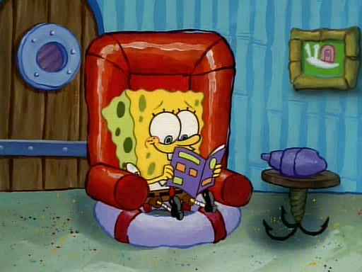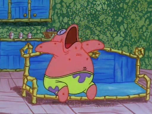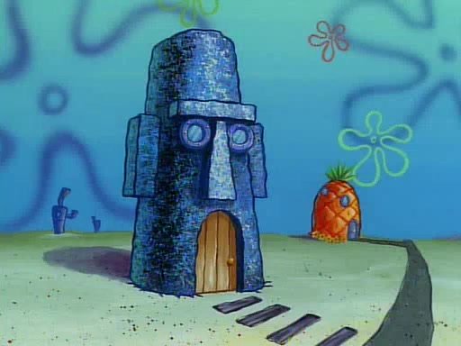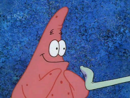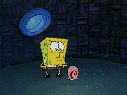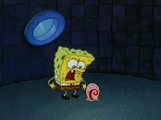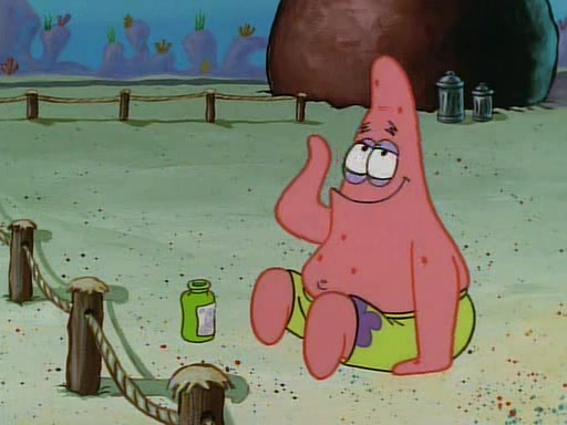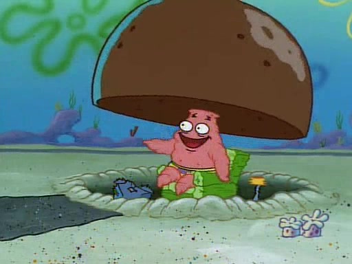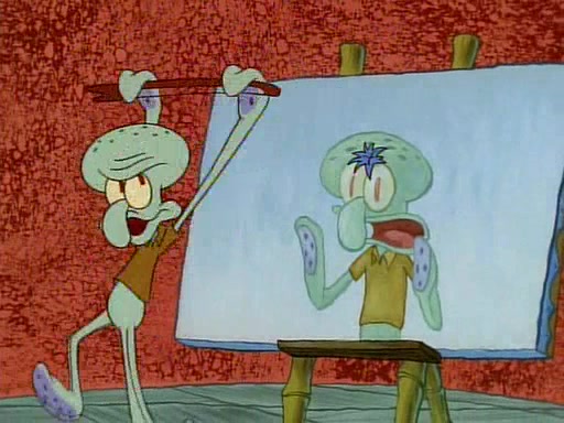 Inside, SpongeBob plays a song (badly) for Squidward on his Double Bass (which he thinks is a bassinet) and when Patrick appears in the window and interrupts the song, SpongeBob destroys the instrument in a fit of rage, and Squidward kicks him out. Squidward then tries to take a bath but Patrick is in the tub. SpongeBob appears in the window and sees this, and he and Patrick begin arguing again, driving Squidward crazy.