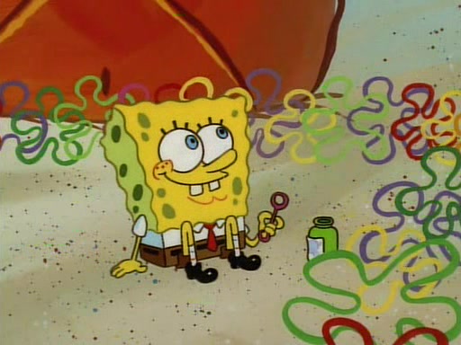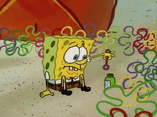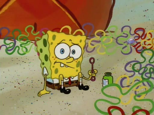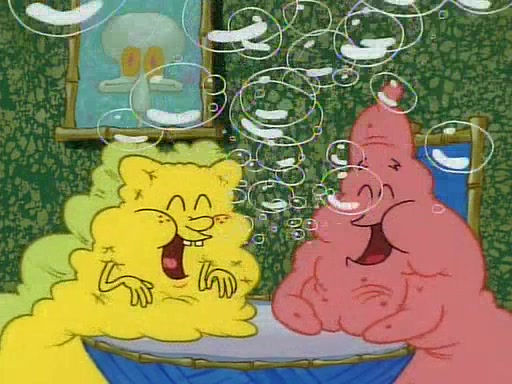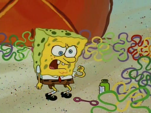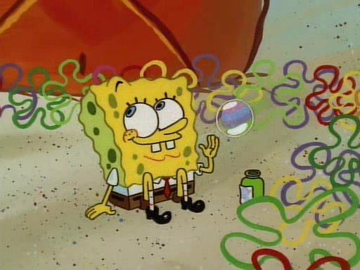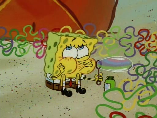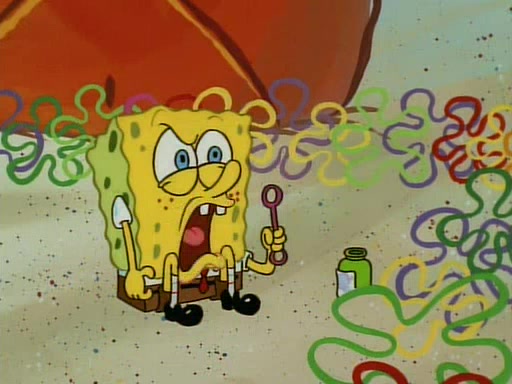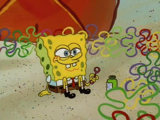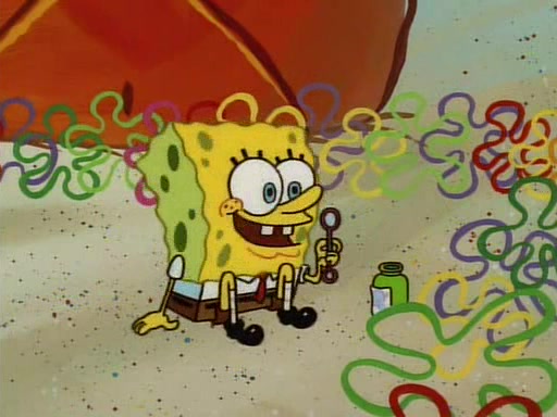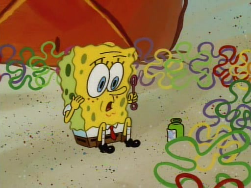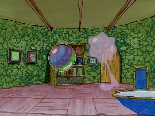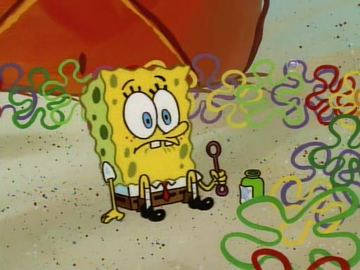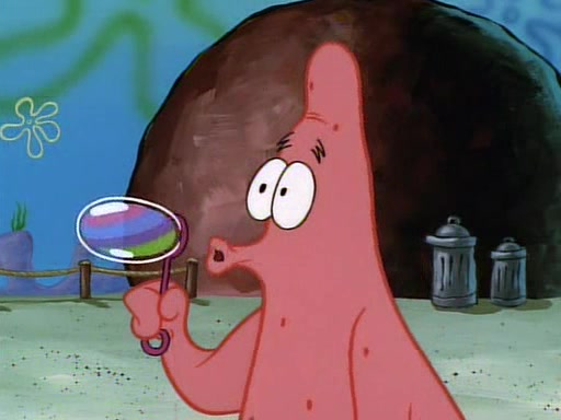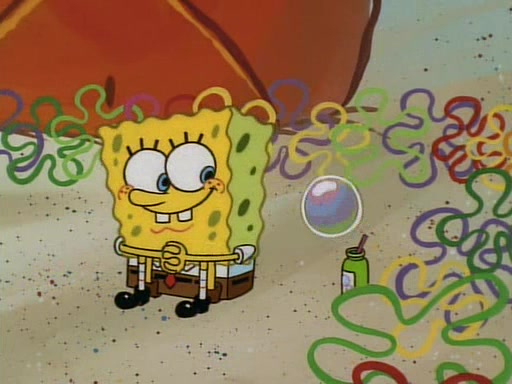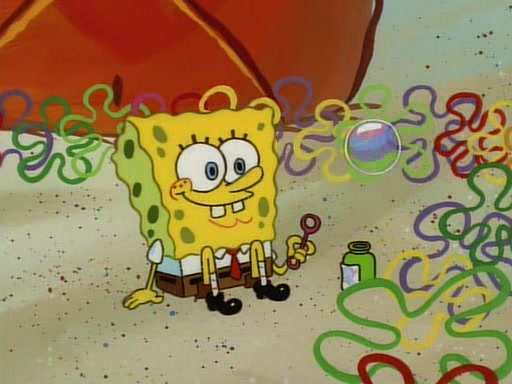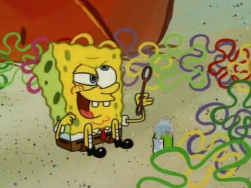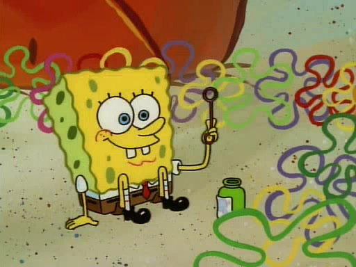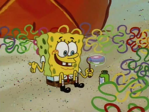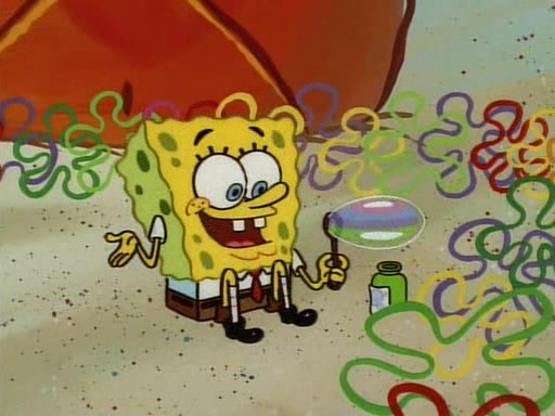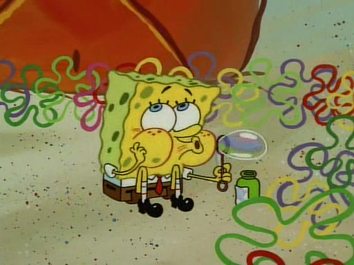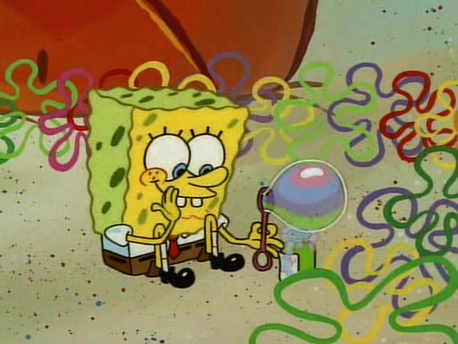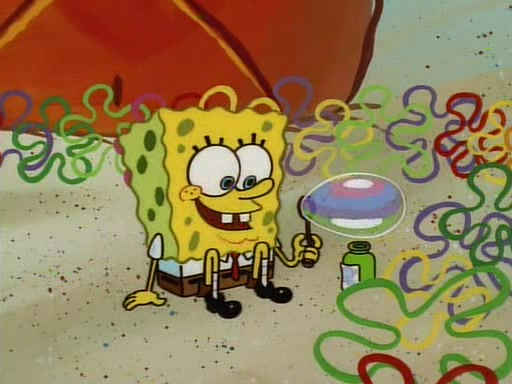 Squidward has made a delicious souffle, but SpongeBob and Patrick's constant laughing distracts him from enjoying it. Squidward sees that they're having a private conversation with bubbles. They whisper a message into the bubble wand instead of blowing into it, and when the bubble pops, the message can be heard.