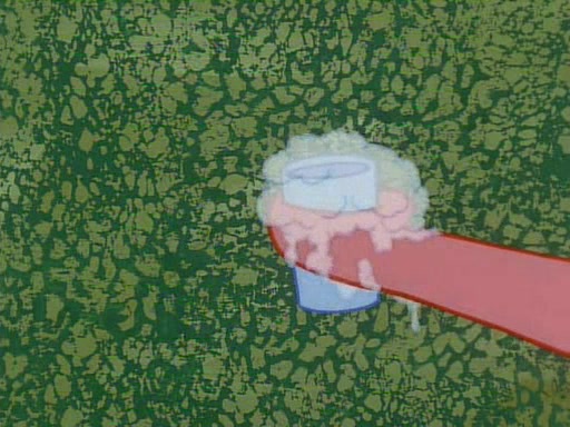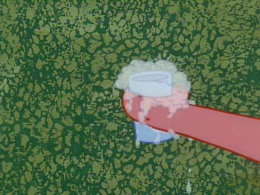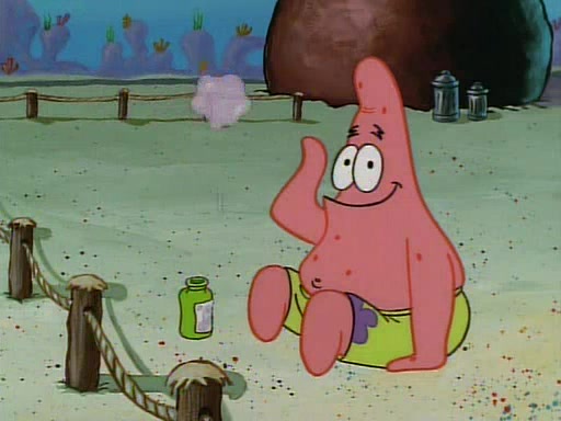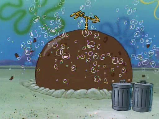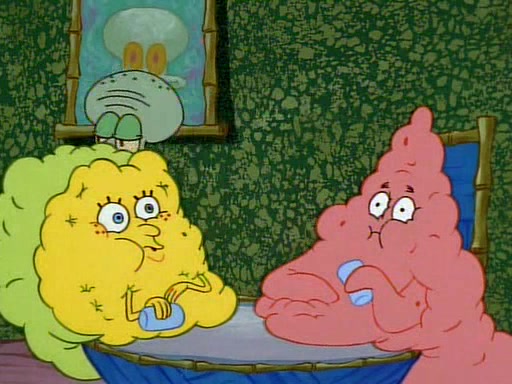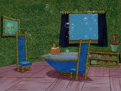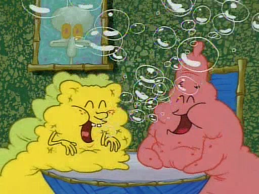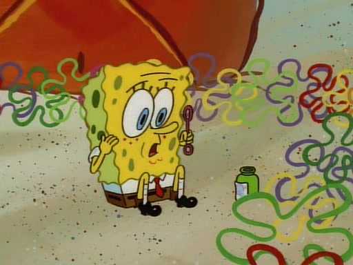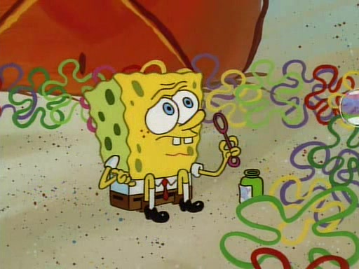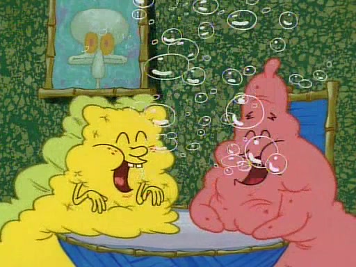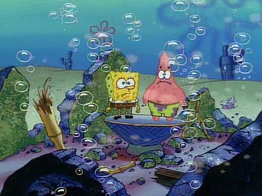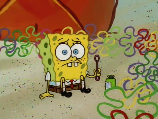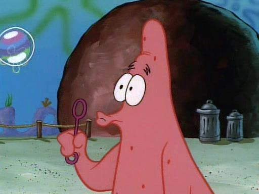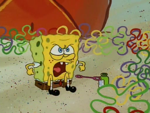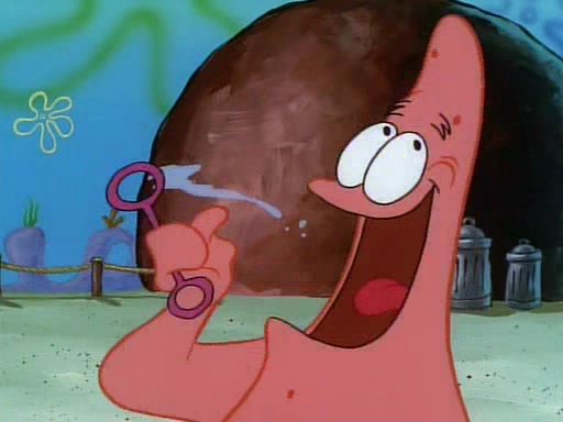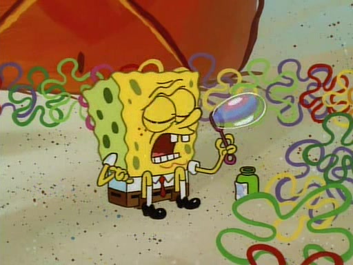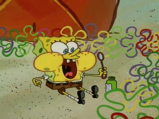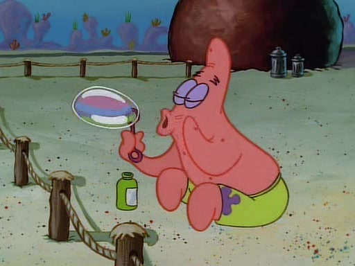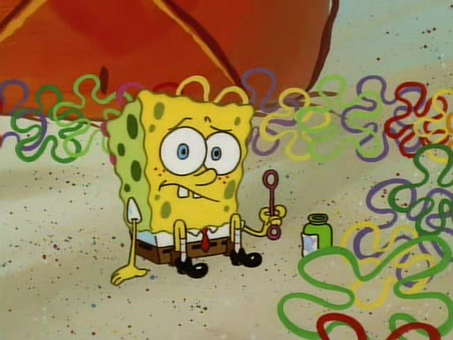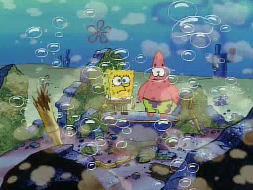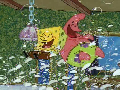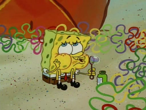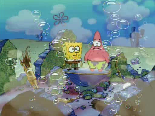 Squidward has made a delicious souffle, but SpongeBob and Patrick's constant laughing distracts him from enjoying it. Squidward sees that they're having a private conversation with bubbles. They whisper a message into the bubble wand instead of blowing into it, and when the bubble pops, the message can be heard.