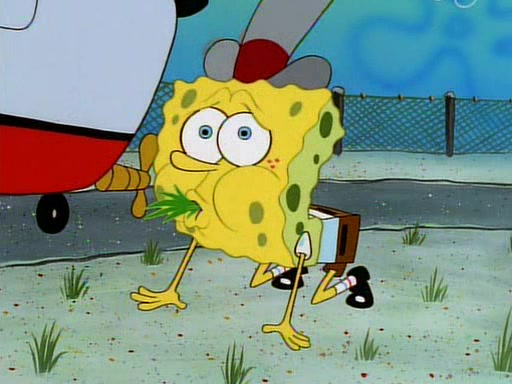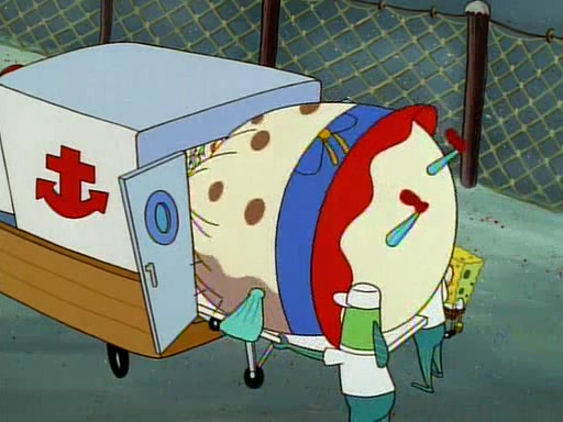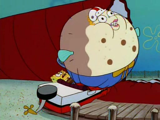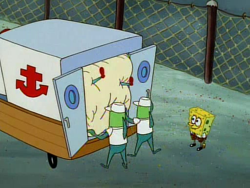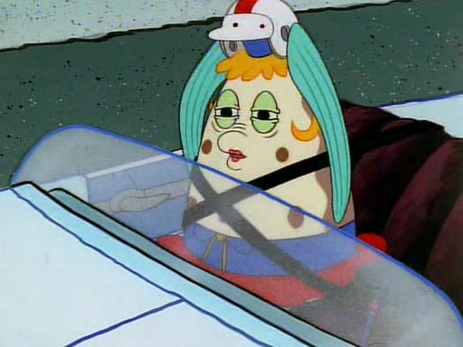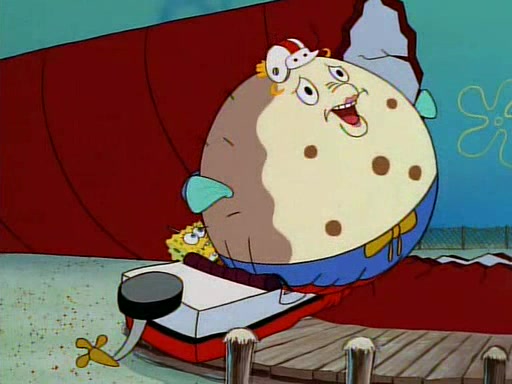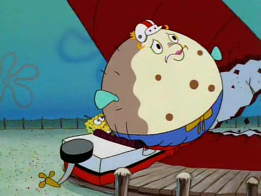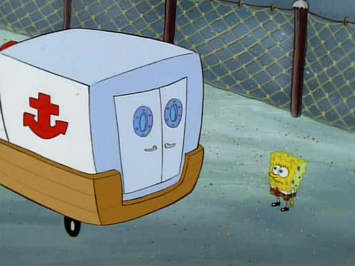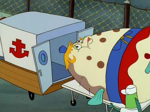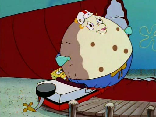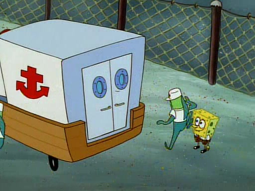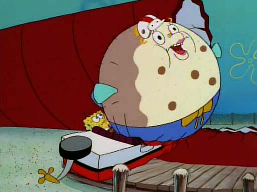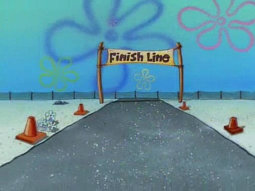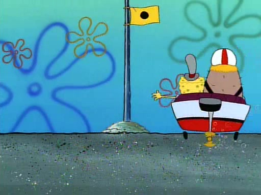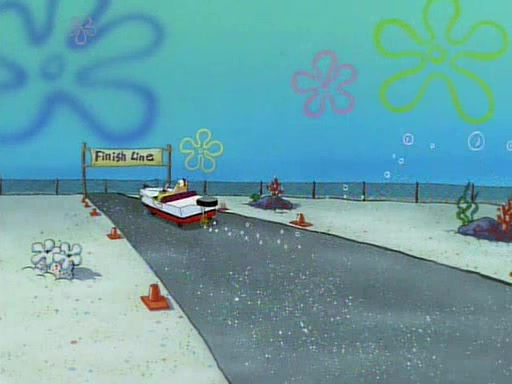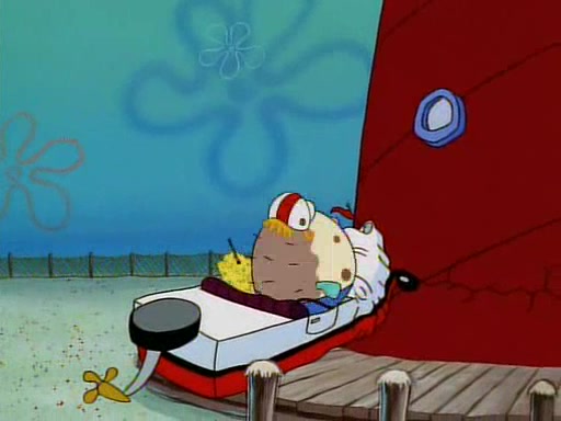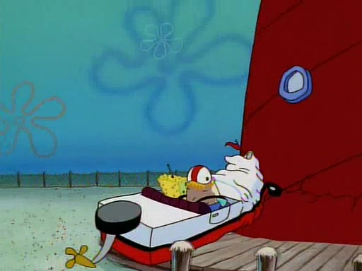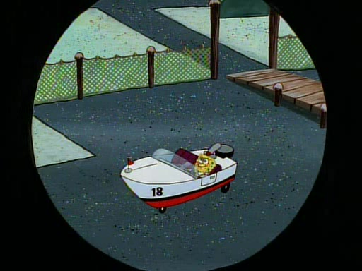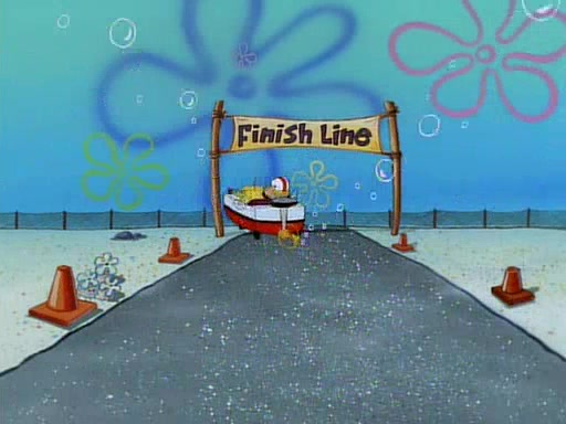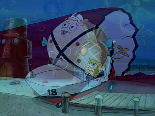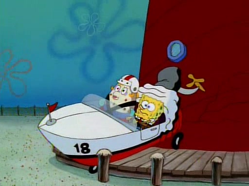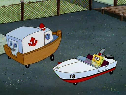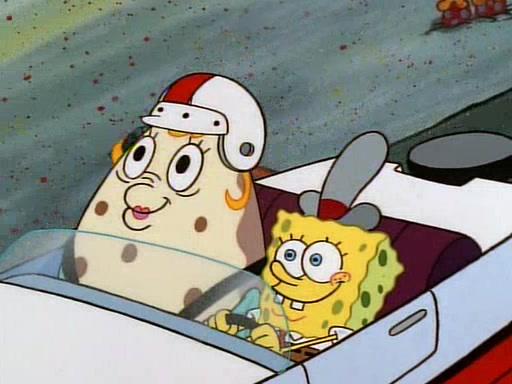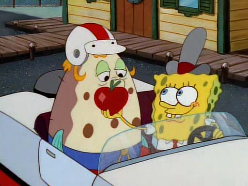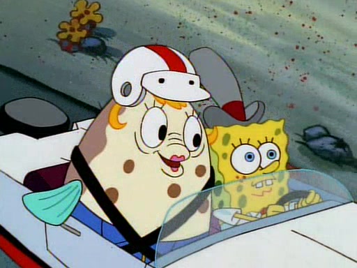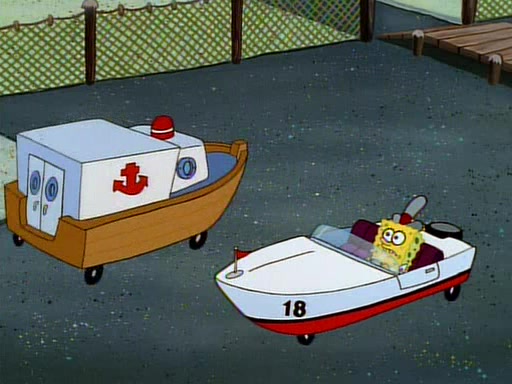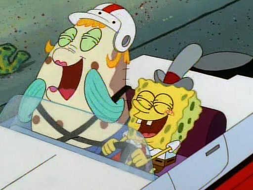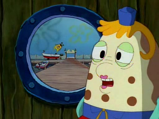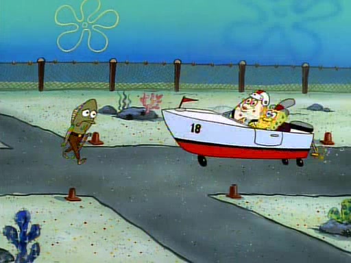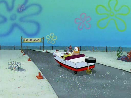 The next day, SpongeBob goes back to take the test again. When asked to start the boat, he initially panics, but Patrick's instructions keep him calm. Just after SpongeBob puts the boat in drive he almost floors the pedal but then Patrick goes, "Freeze mister!," and SpongeBob's foot stops just before it touches the pedal. Patrick then says, "Big toe." SpongeBob's toe then pops out of his shoe and it presses the pedal. This is followed by a video montage of SpongeBob acing the exam, interspersed with shots of Patrick eating SpongeBob's food and reading his diary while helping him. Mrs. Puff is floored by his sudden improvement and jokingly suggests that SpongeBob's success is due to an antenna under his hat through which "some guy miles away from here is giving you (him) all the answers." SpongeBob (and Patrick) finds this hilarious, until Mrs. Puff concludes, "But that would be cheating!" Upon realizing that he has been cheating, SpongeBob goes into hysterics, making Patrick realize that his method is bad, forcing Patrick to flee to his house, and driving wildly all over the course and sobbing while Mrs. Puff, in a panic, tries desperately to stop him but SpongeBob refuses to listen and crashes the boat and fails the test again, and the inflated Mrs. Puff is taken to the hospital. As he leaves boating school, he finds Gary riding his unicycle. SpongeBob rides off on it, with Gary atop his head, saying "Let's go surprise someone at the hospital!" thus ending the episode.