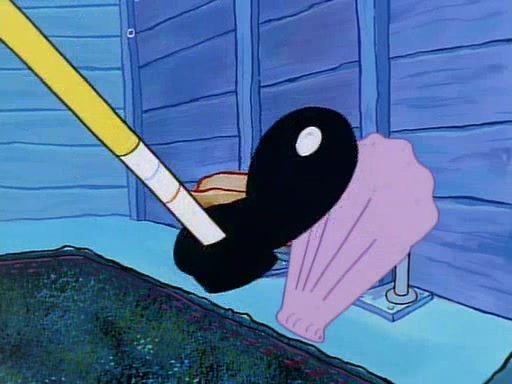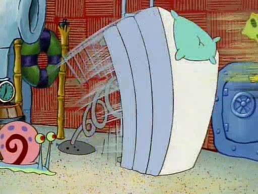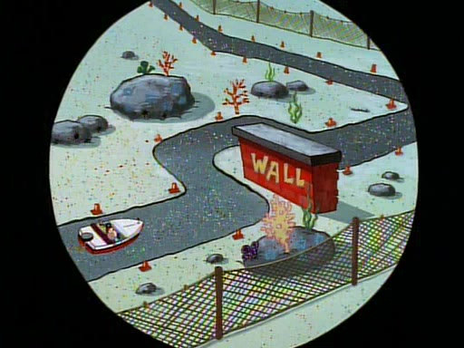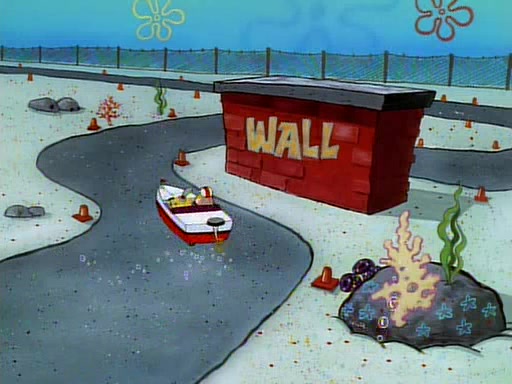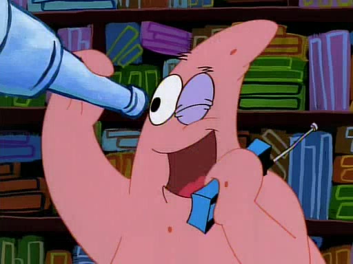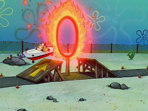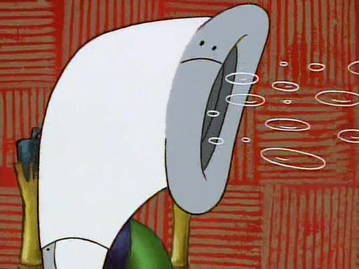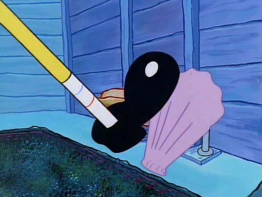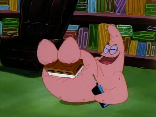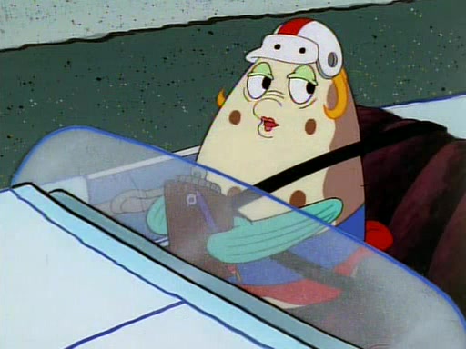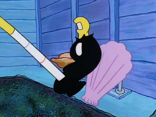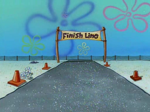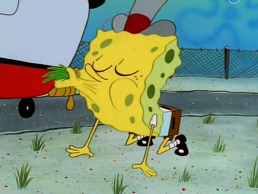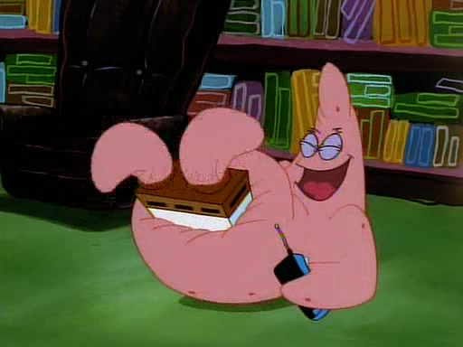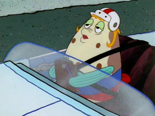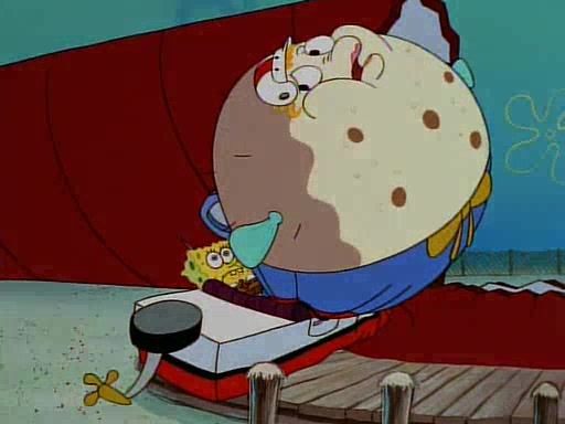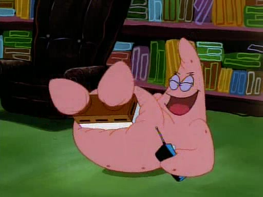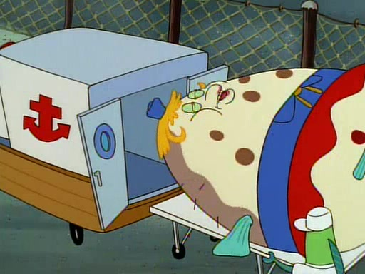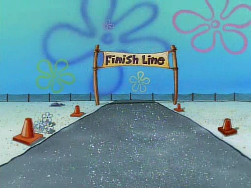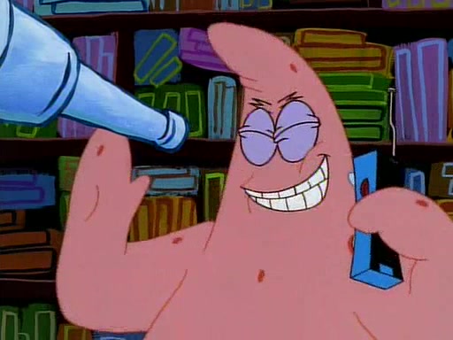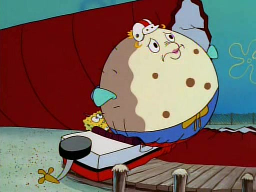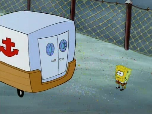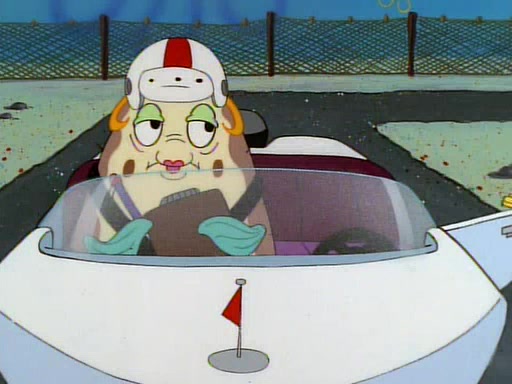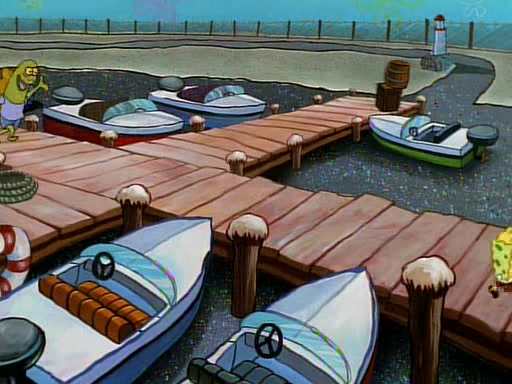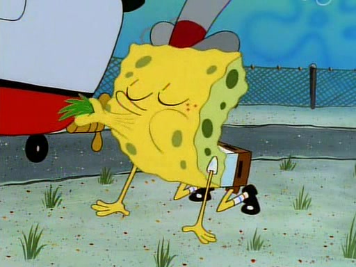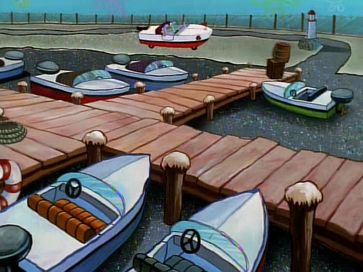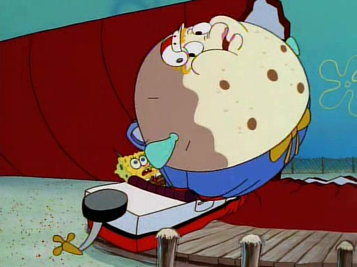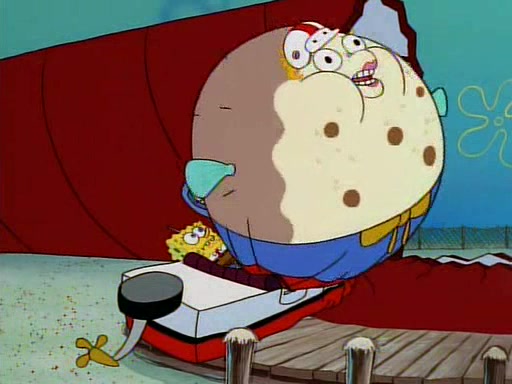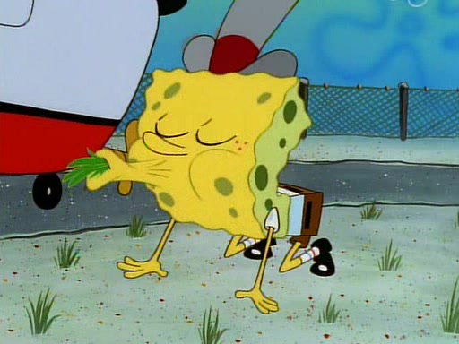 The next day, SpongeBob goes back to take the test again. When asked to start the boat, he initially panics, but Patrick's instructions keep him calm. Just after SpongeBob puts the boat in drive he almost floors the pedal but then Patrick goes, "Freeze mister!," and SpongeBob's foot stops just before it touches the pedal. Patrick then says, "Big toe." SpongeBob's toe then pops out of his shoe and it presses the pedal. This is followed by a video montage of SpongeBob acing the exam, interspersed with shots of Patrick eating SpongeBob's food and reading his diary while helping him. Mrs. Puff is floored by his sudden improvement and jokingly suggests that SpongeBob's success is due to an antenna under his hat through which "some guy miles away from here is giving you (him) all the answers." SpongeBob (and Patrick) finds this hilarious, until Mrs. Puff concludes, "But that would be cheating!" Upon realizing that he has been cheating, SpongeBob goes into hysterics, making Patrick realize that his method is bad, forcing Patrick to flee to his house, and driving wildly all over the course and sobbing while Mrs. Puff, in a panic, tries desperately to stop him but SpongeBob refuses to listen and crashes the boat and fails the test again, and the inflated Mrs. Puff is taken to the hospital. As he leaves boating school, he finds Gary riding his unicycle. SpongeBob rides off on it, with Gary atop his head, saying "Let's go surprise someone at the hospital!" thus ending the episode.