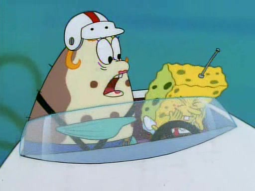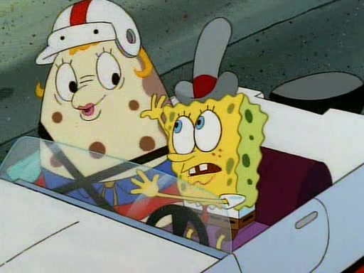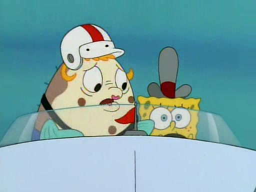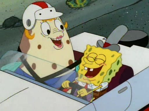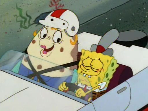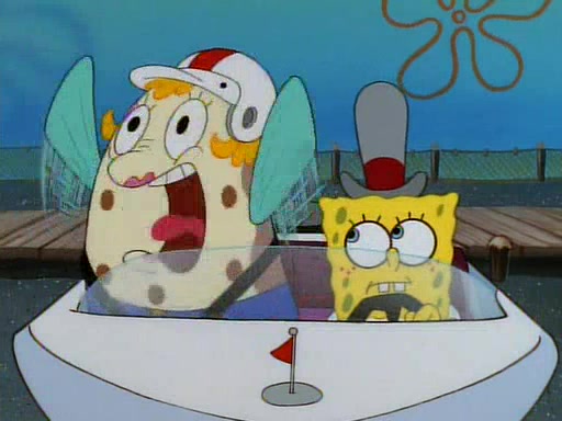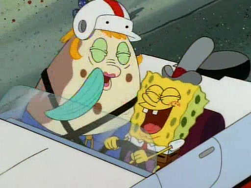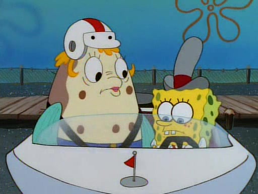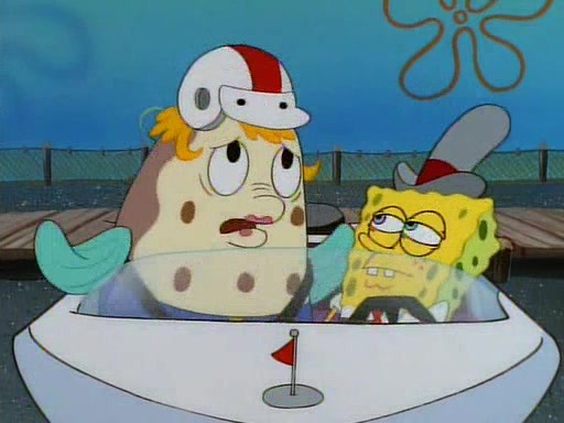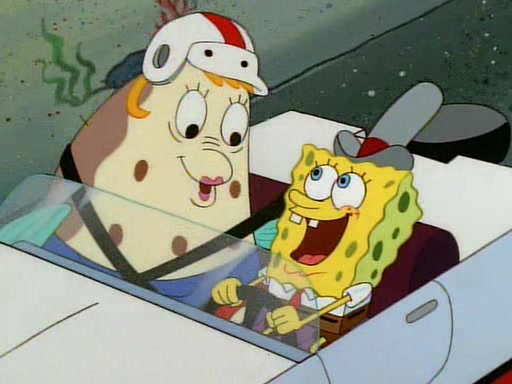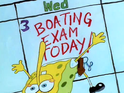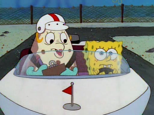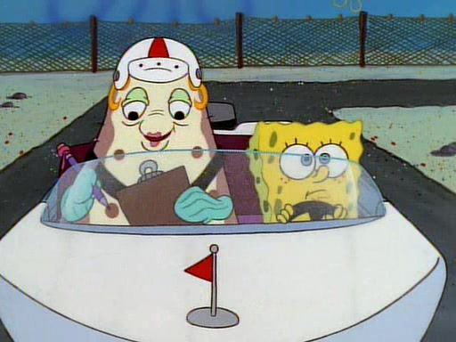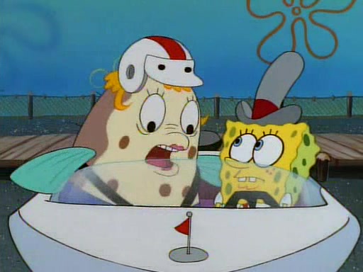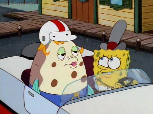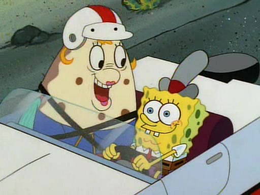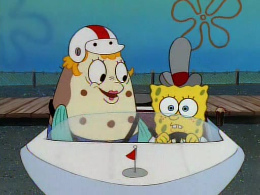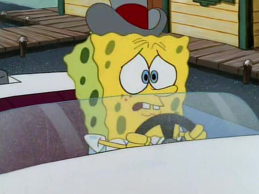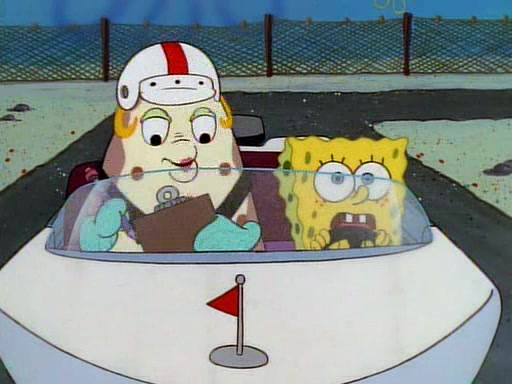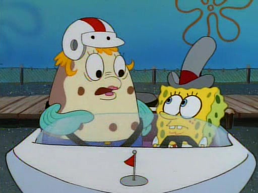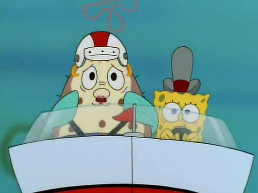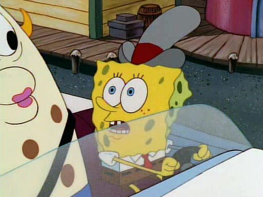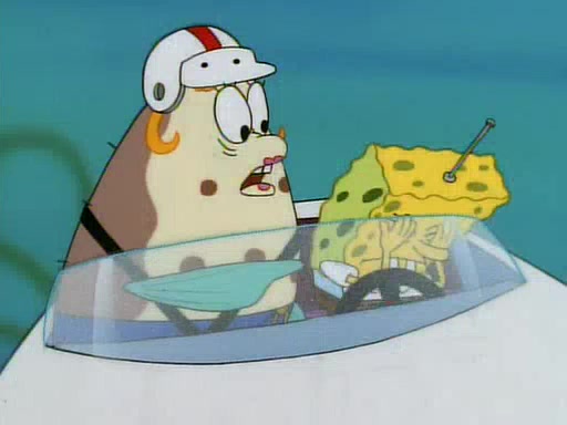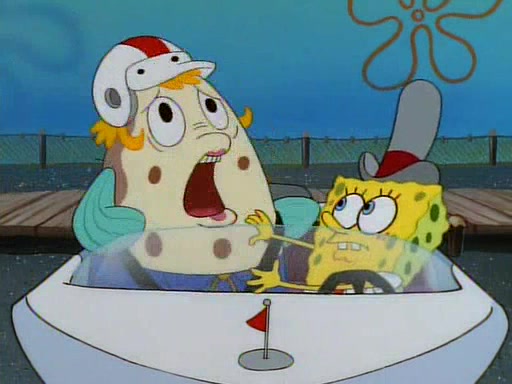 It is the day of SpongeBob's driving exam at Mrs. Puff's Boating School, and he is very excited. If he passes it, he will get his license. Once there, he throws his unicycle away, falsely assuming he will pass. Having taken the oral exam 37 times previously, SpongeBob is able to answer the questions before they are even asked. However, upon reaching the driving portion of the exam, he realizes he was so excited so much that he didn't know it was really long and hard. As a result, he gets scared and panics, and quickly crashes into a lighthouse causing Mrs. Puff's body to inflate. Mrs. Puff says, "Oh SpongeBob, why?" Later that night, he complains about his failure to Gary, who asks SpongeBob to go for a walk, which he declines. Patrick is then heard talking to him from a walkie-talkie under his bed covers. He asks SpongeBob to head to his closet for a "surprise." It is Patrick wearing his clothes and calling himself "Patrick SquarePants." SpongeBob is too depressed to laugh, and explains his problem to Patrick and mentions that he needs someone to help him think straight during the exam. Patrick quickly devises a plan. He puts a walkie-talkie inside SpongeBob's head so that he can talk SpongeBob through the test, hiding the antenna with a cowboy hat.
