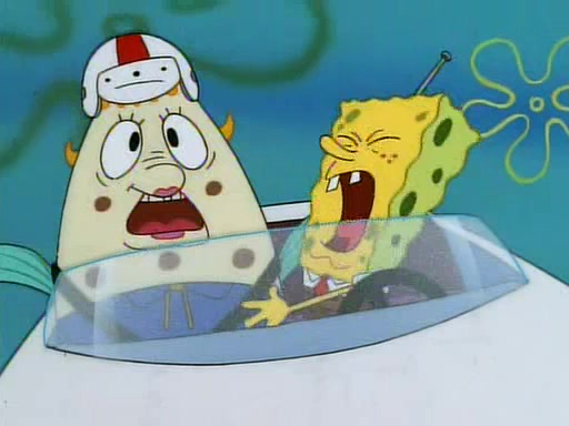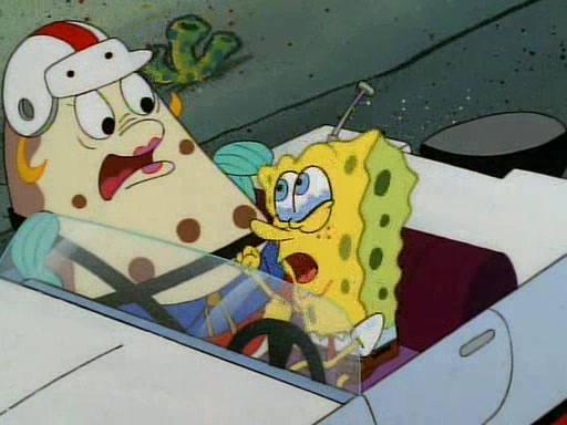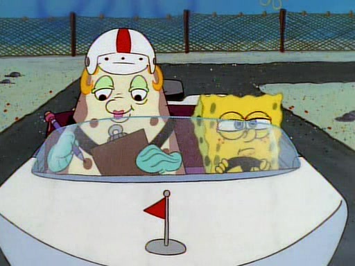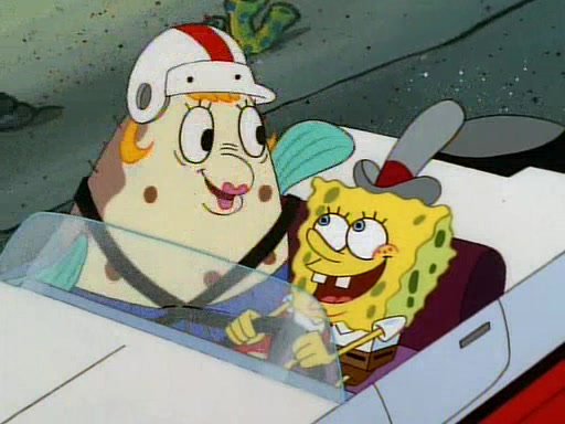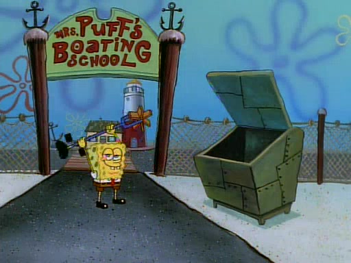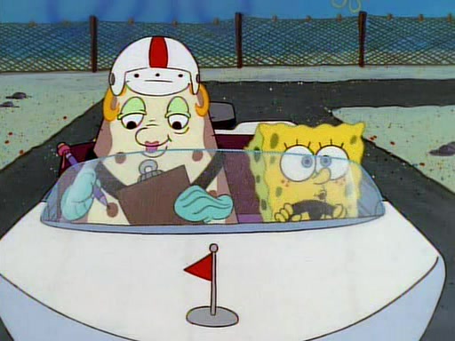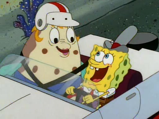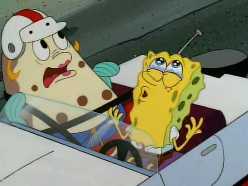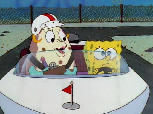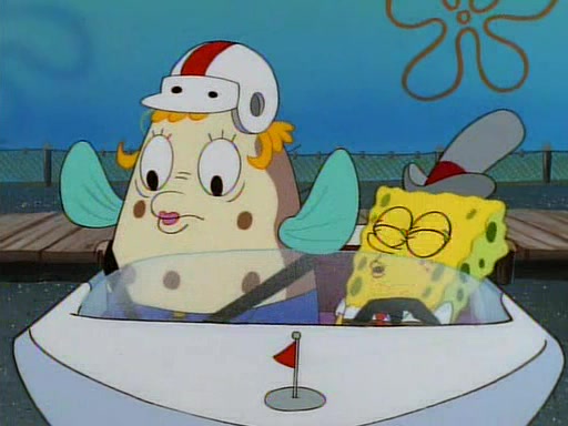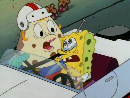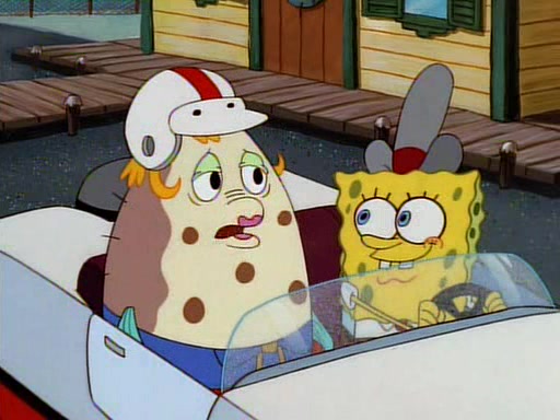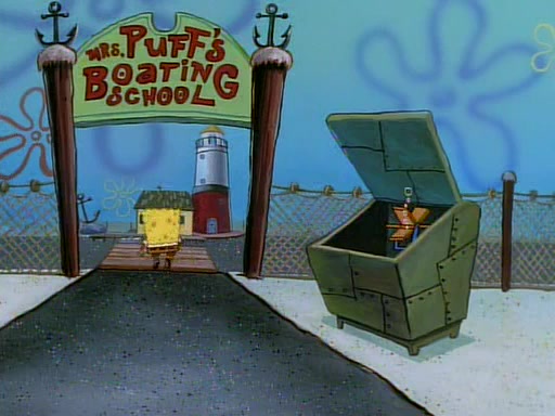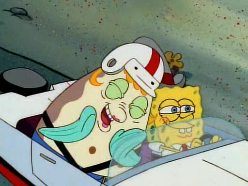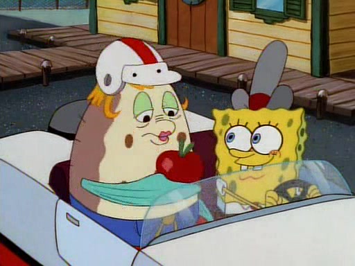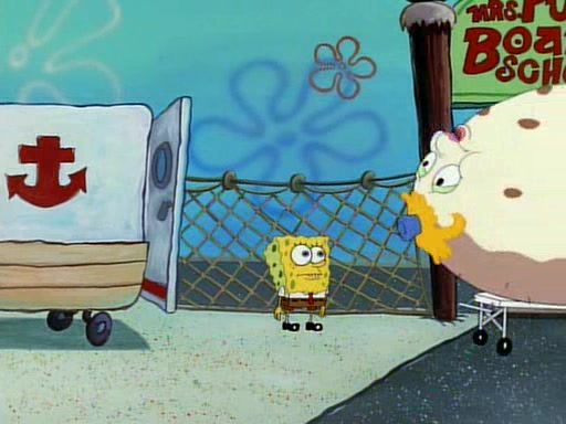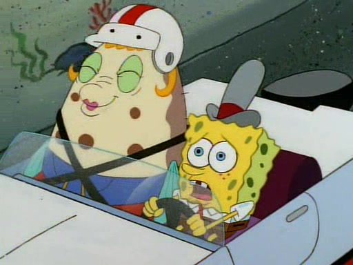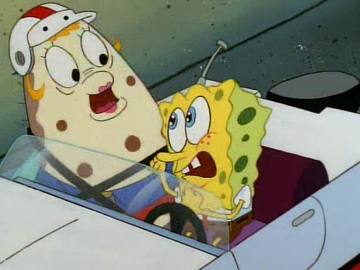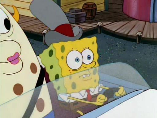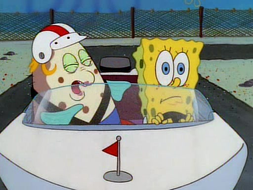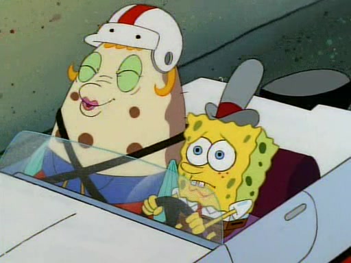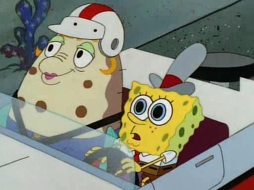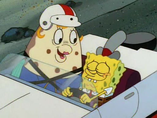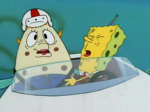 It is the day of SpongeBob's driving exam at Mrs. Puff's Boating School, and he is very excited. If he passes it, he will get his license. Once there, he throws his unicycle away, falsely assuming he will pass. Having taken the oral exam 37 times previously, SpongeBob is able to answer the questions before they are even asked. However, upon reaching the driving portion of the exam, he realizes he was so excited so much that he didn't know it was really long and hard. As a result, he gets scared and panics, and quickly crashes into a lighthouse causing Mrs. Puff's body to inflate. Mrs. Puff says, "Oh SpongeBob, why?" Later that night, he complains about his failure to Gary, who asks SpongeBob to go for a walk, which he declines. Patrick is then heard talking to him from a walkie-talkie under his bed covers. He asks SpongeBob to head to his closet for a "surprise." It is Patrick wearing his clothes and calling himself "Patrick SquarePants." SpongeBob is too depressed to laugh, and explains his problem to Patrick and mentions that he needs someone to help him think straight during the exam. Patrick quickly devises a plan. He puts a walkie-talkie inside SpongeBob's head so that he can talk SpongeBob through the test, hiding the antenna with a cowboy hat.