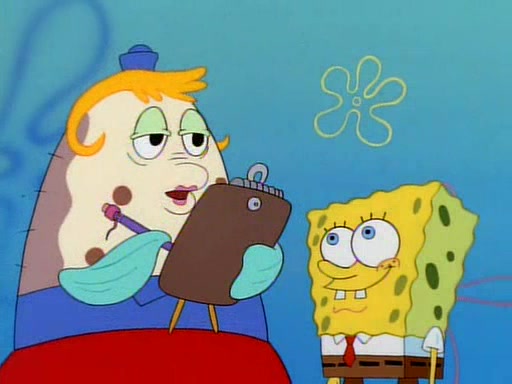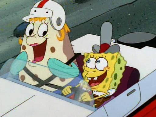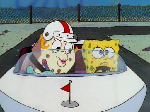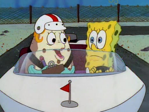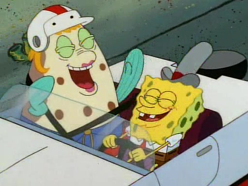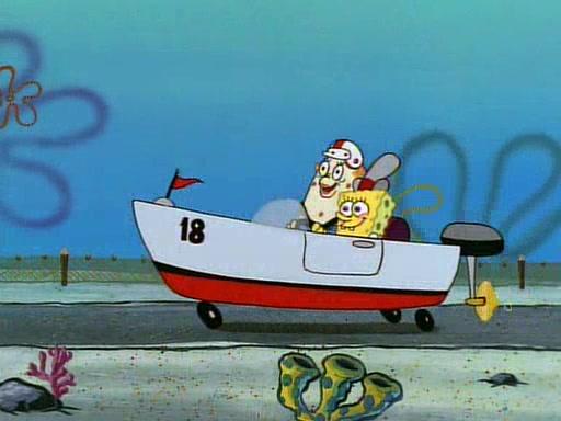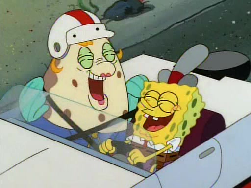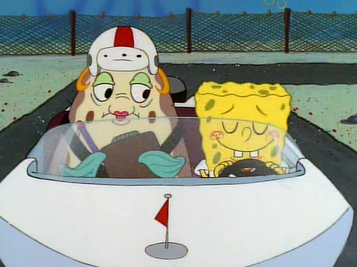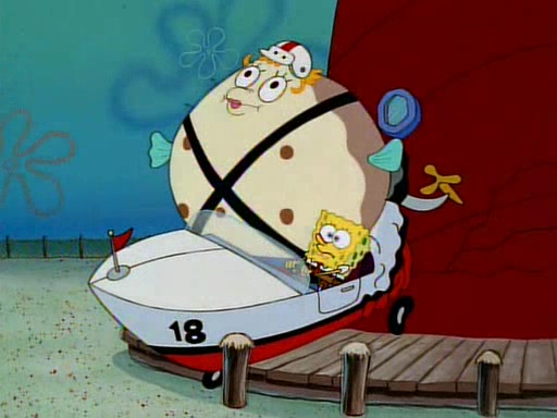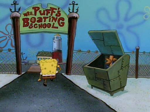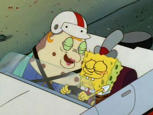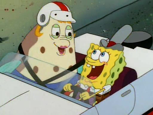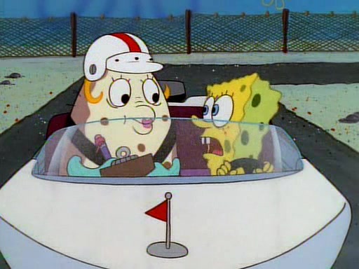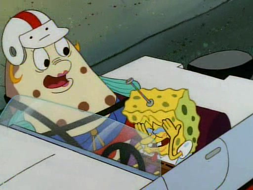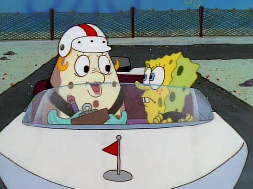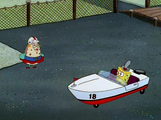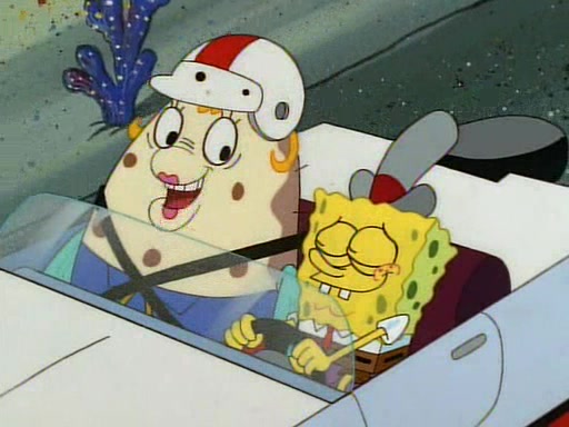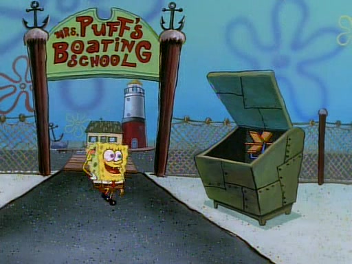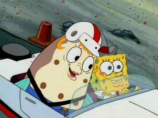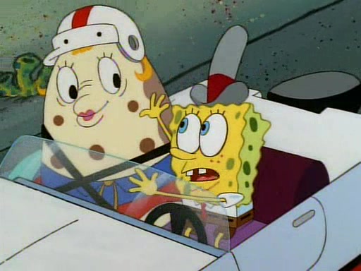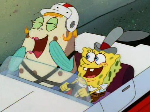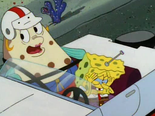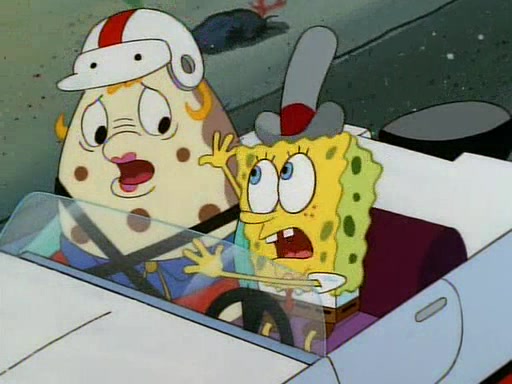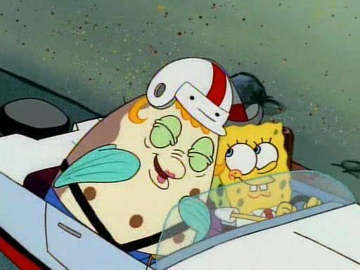 It is the day of SpongeBob's driving exam at Mrs. Puff's Boating School, and he is very excited. If he passes it, he will get his license. Once there, he throws his unicycle away, falsely assuming he will pass. Having taken the oral exam 37 times previously, SpongeBob is able to answer the questions before they are even asked. However, upon reaching the driving portion of the exam, he realizes he was so excited so much that he didn't know it was really long and hard. As a result, he gets scared and panics, and quickly crashes into a lighthouse causing Mrs. Puff's body to inflate. Mrs. Puff says, "Oh SpongeBob, why?" Later that night, he complains about his failure to Gary, who asks SpongeBob to go for a walk, which he declines. Patrick is then heard talking to him from a walkie-talkie under his bed covers. He asks SpongeBob to head to his closet for a "surprise." It is Patrick wearing his clothes and calling himself "Patrick SquarePants." SpongeBob is too depressed to laugh, and explains his problem to Patrick and mentions that he needs someone to help him think straight during the exam. Patrick quickly devises a plan. He puts a walkie-talkie inside SpongeBob's head so that he can talk SpongeBob through the test, hiding the antenna with a cowboy hat.
