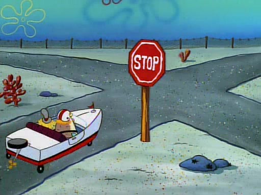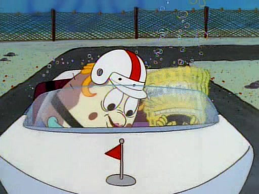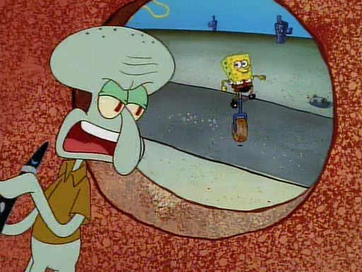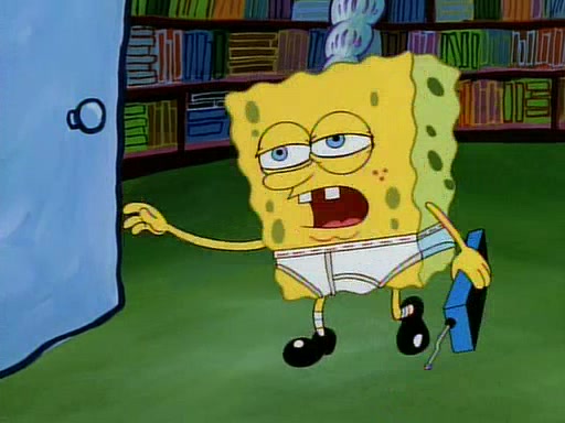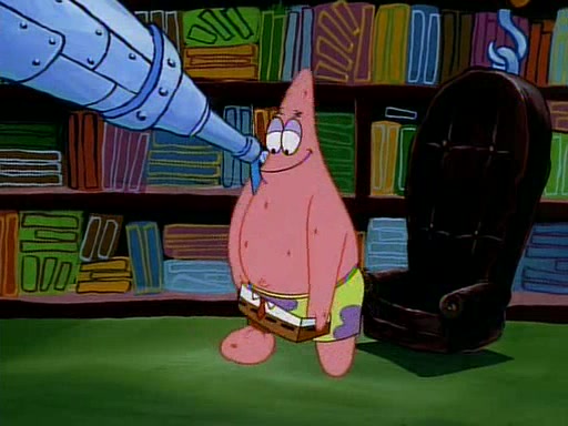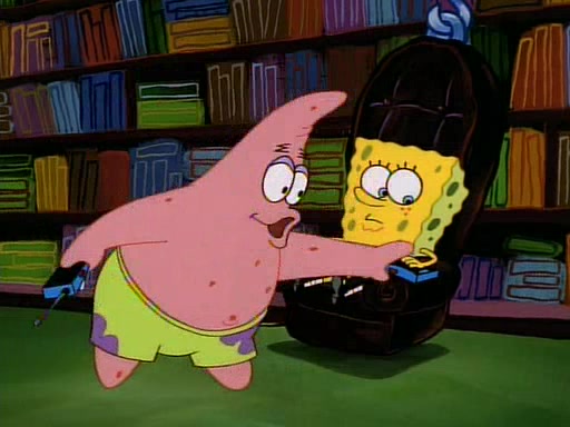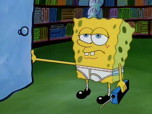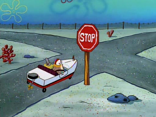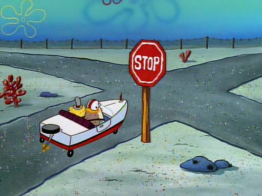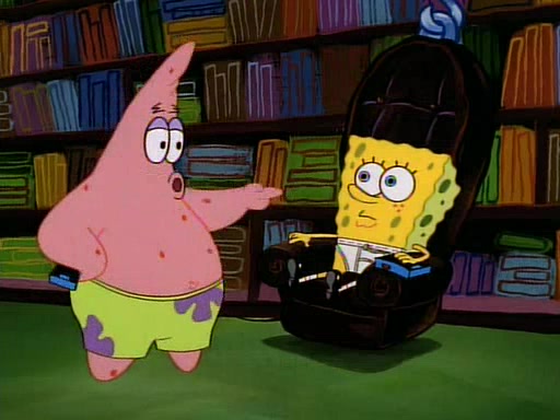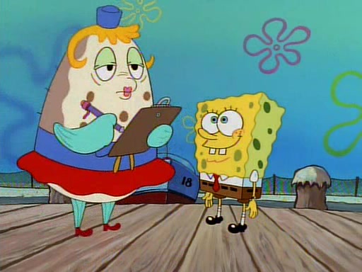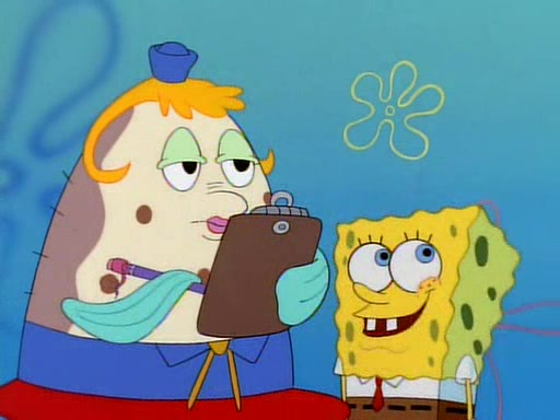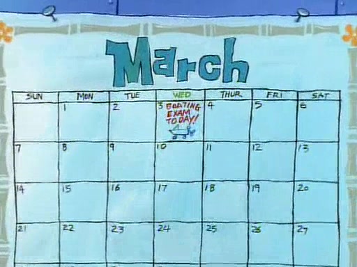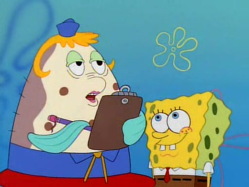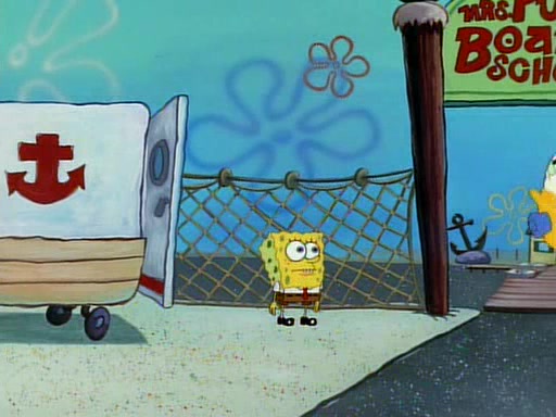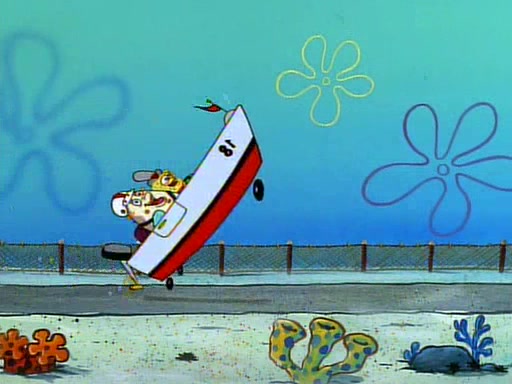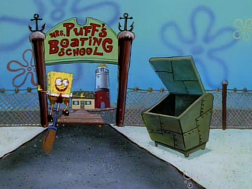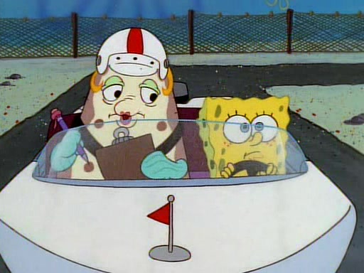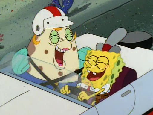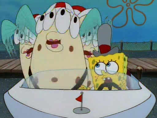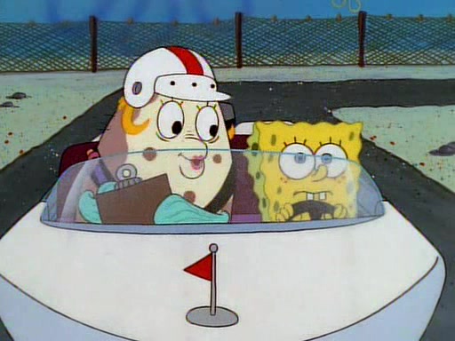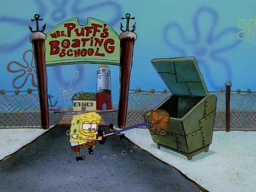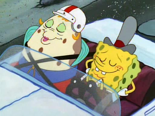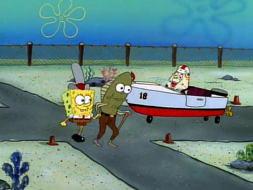 It is the day of SpongeBob's driving exam at Mrs. Puff's Boating School, and he is very excited. If he passes it, he will get his license. Once there, he throws his unicycle away, falsely assuming he will pass. Having taken the oral exam 37 times previously, SpongeBob is able to answer the questions before they are even asked. However, upon reaching the driving portion of the exam, he realizes he was so excited so much that he didn't know it was really long and hard. As a result, he gets scared and panics, and quickly crashes into a lighthouse causing Mrs. Puff's body to inflate. Mrs. Puff says, "Oh SpongeBob, why?" Later that night, he complains about his failure to Gary, who asks SpongeBob to go for a walk, which he declines. Patrick is then heard talking to him from a walkie-talkie under his bed covers. He asks SpongeBob to head to his closet for a "surprise." It is Patrick wearing his clothes and calling himself "Patrick SquarePants." SpongeBob is too depressed to laugh, and explains his problem to Patrick and mentions that he needs someone to help him think straight during the exam. Patrick quickly devises a plan. He puts a walkie-talkie inside SpongeBob's head so that he can talk SpongeBob through the test, hiding the antenna with a cowboy hat.