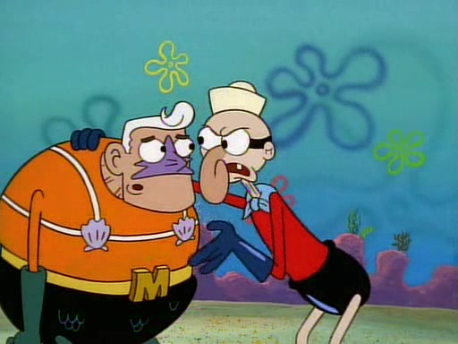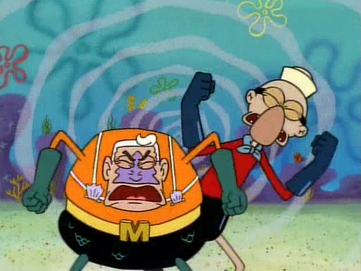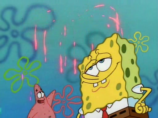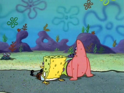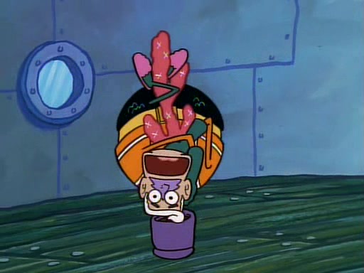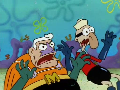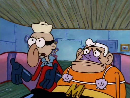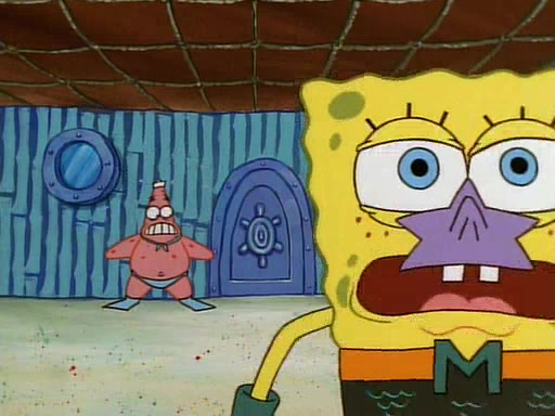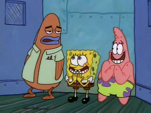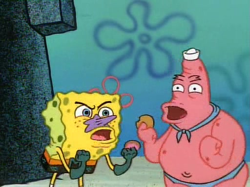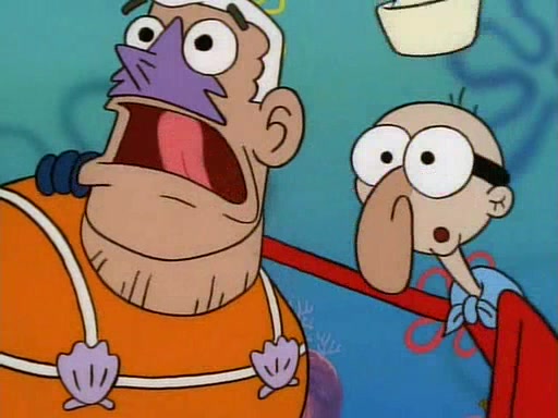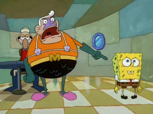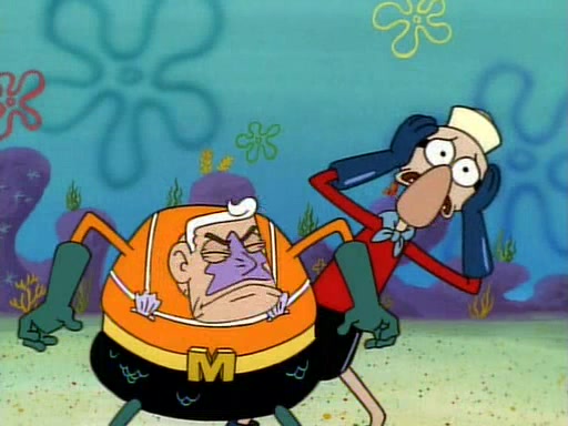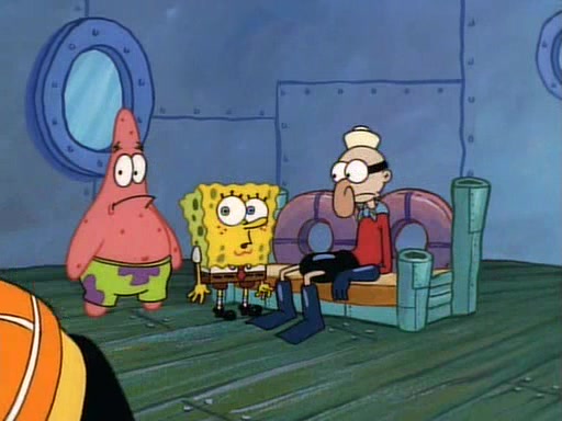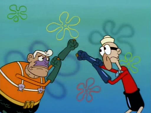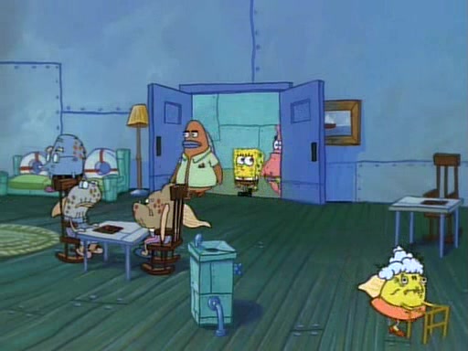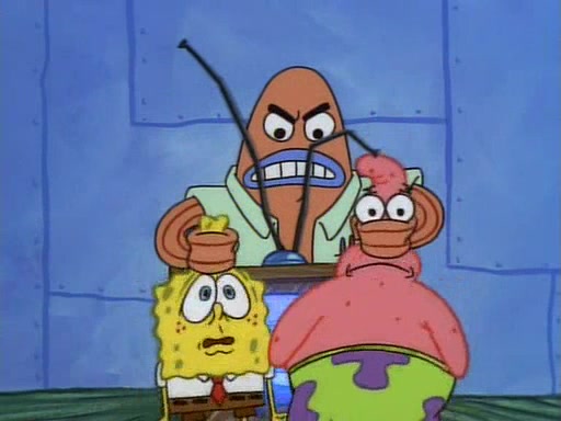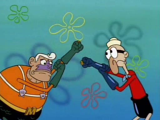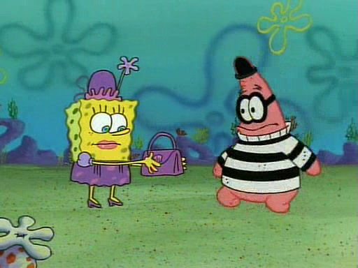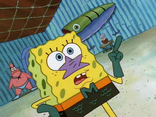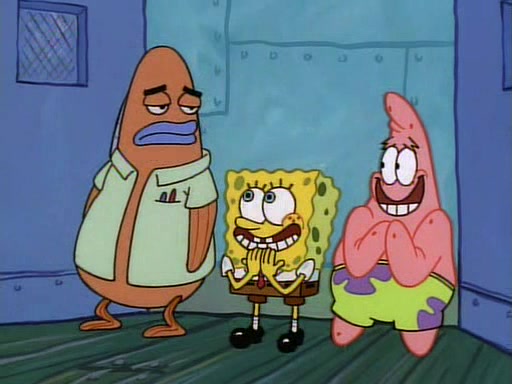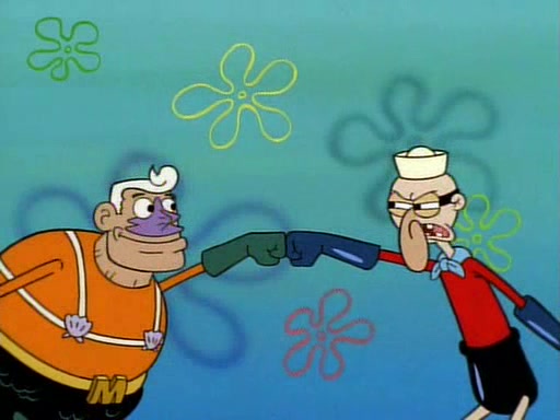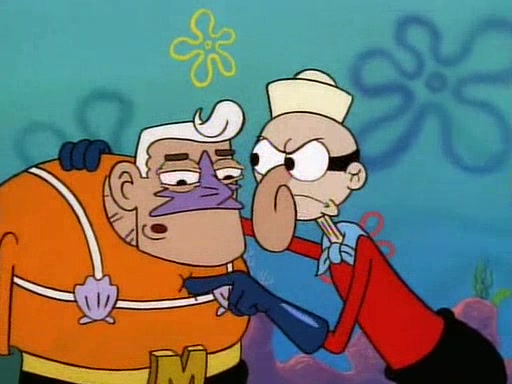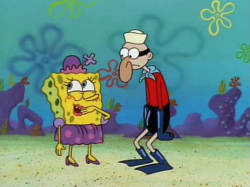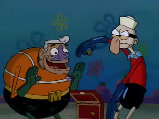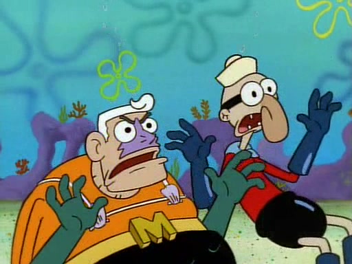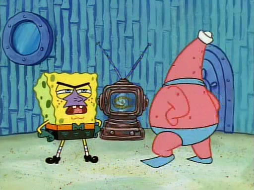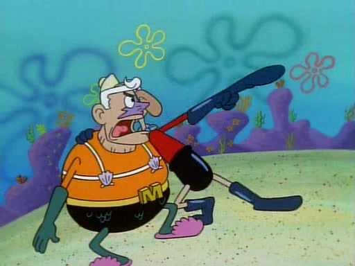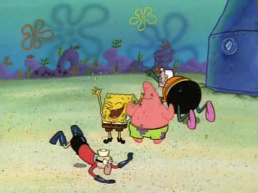 The phone gets broken, and when Mermaid Man hangs up the phone, a comic book bubble appears and dramatizes the words "HANG UP!" When Mermaid Man sits down, the bubble appears again and says "SIT!!" Will our heroes ever get their phone fixed? Tune in next week and find out. And when SpongeBob winks, the bubble appears again, saying "WINK!".