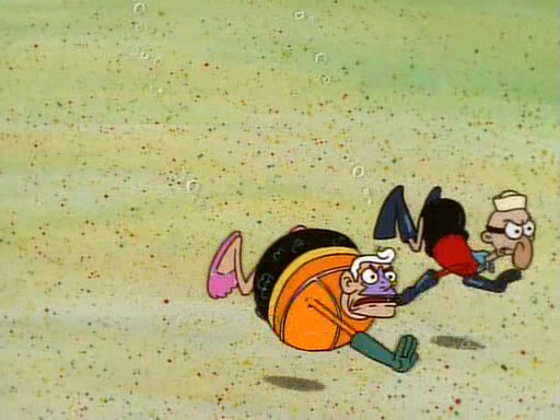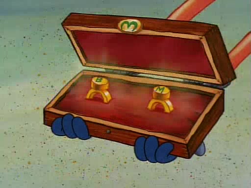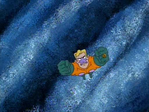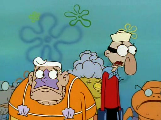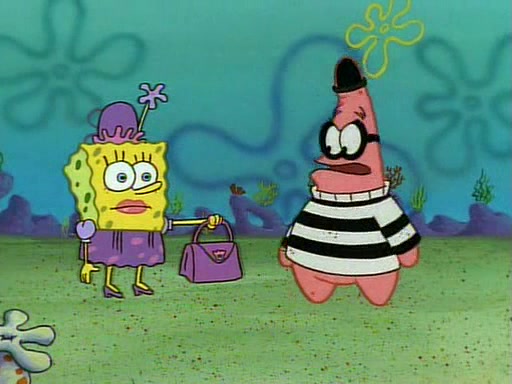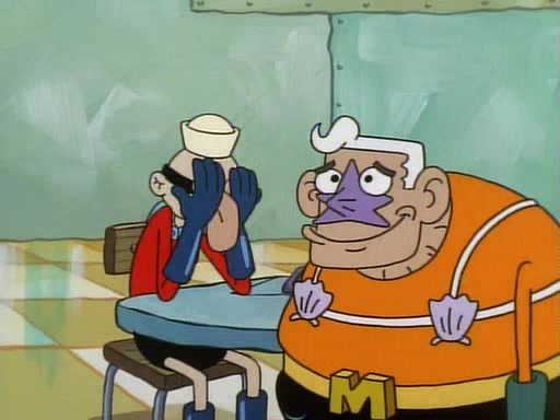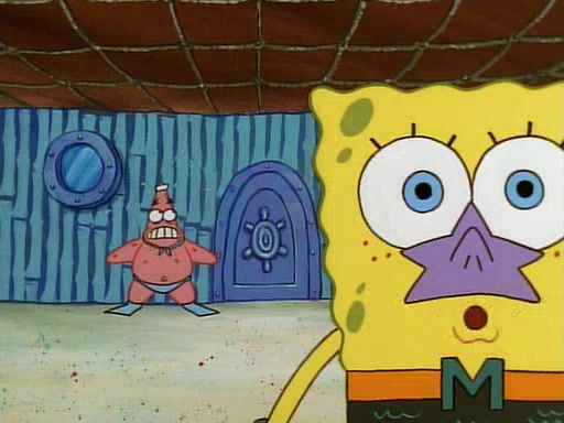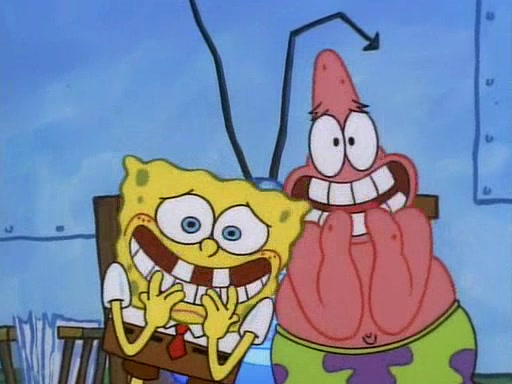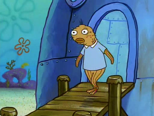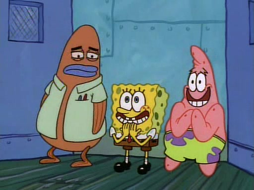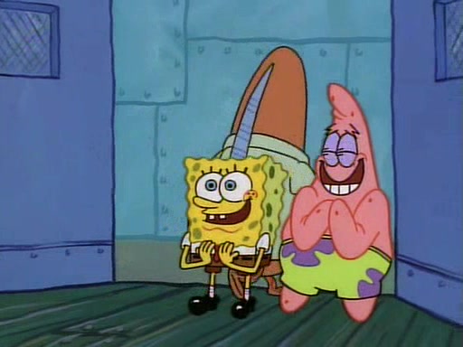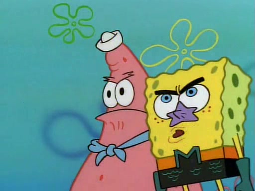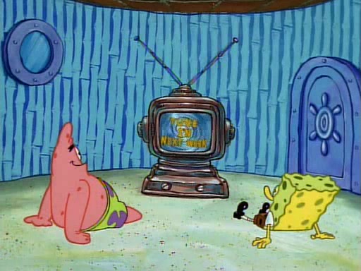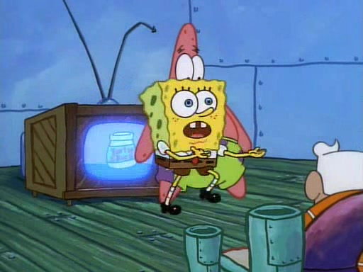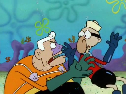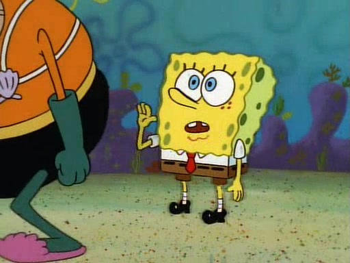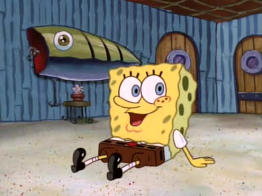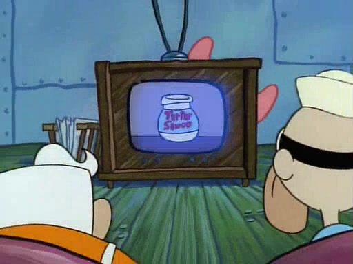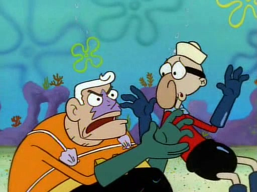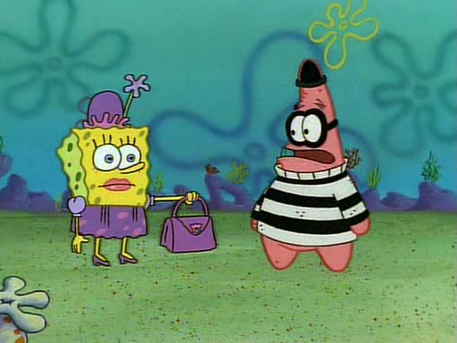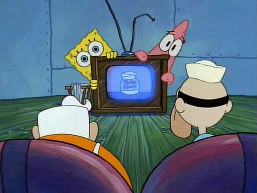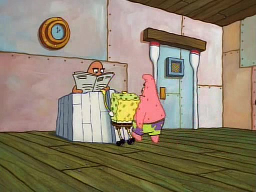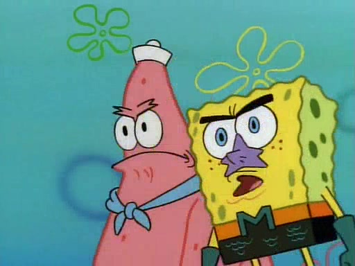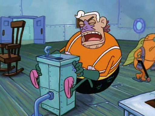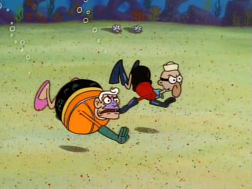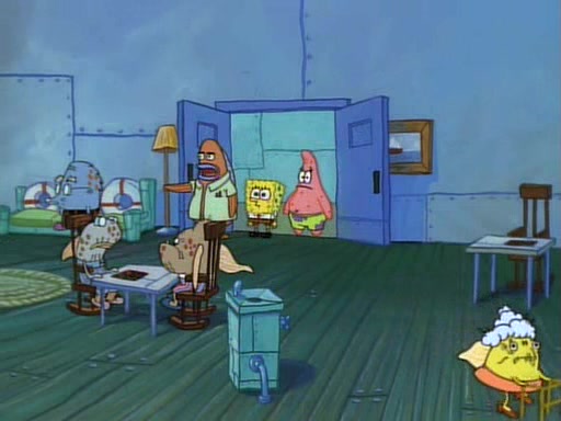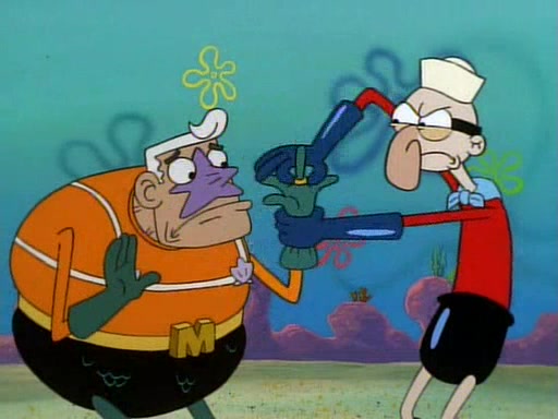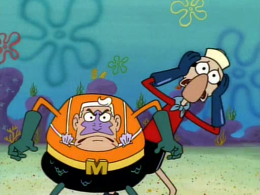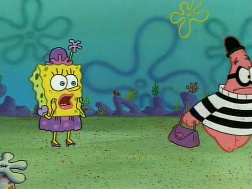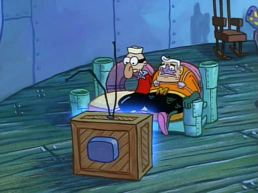 The phone gets broken, and when Mermaid Man hangs up the phone, a comic book bubble appears and dramatizes the words "HANG UP!" When Mermaid Man sits down, the bubble appears again and says "SIT!!" Will our heroes ever get their phone fixed? Tune in next week and find out. And when SpongeBob winks, the bubble appears again, saying "WINK!".