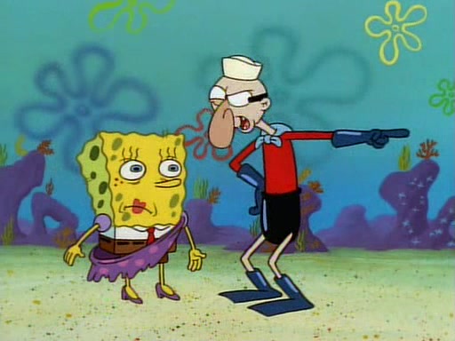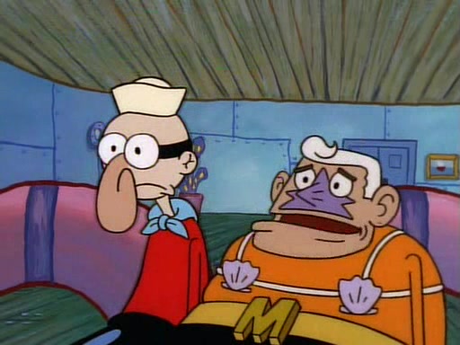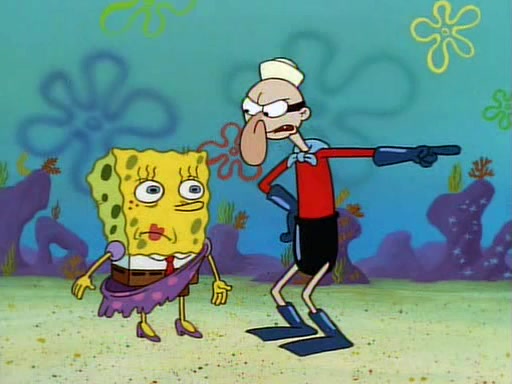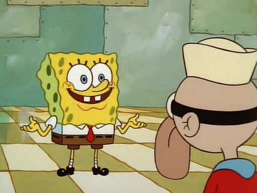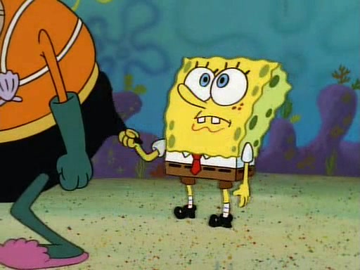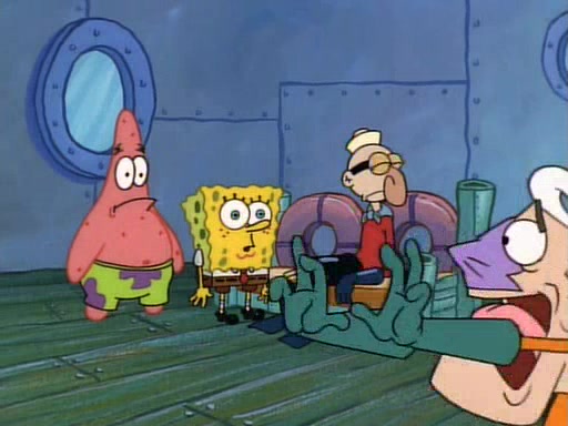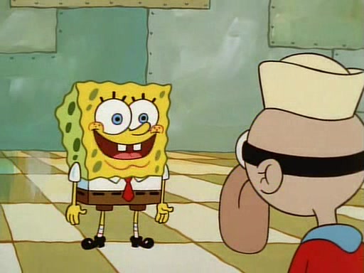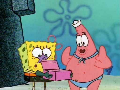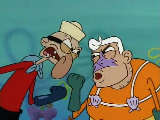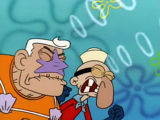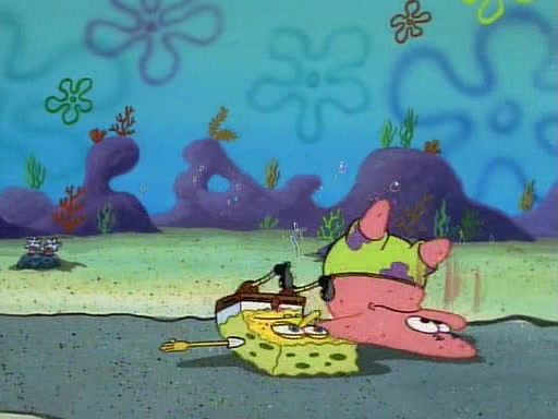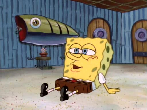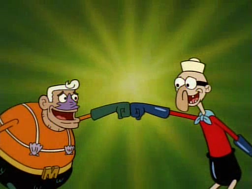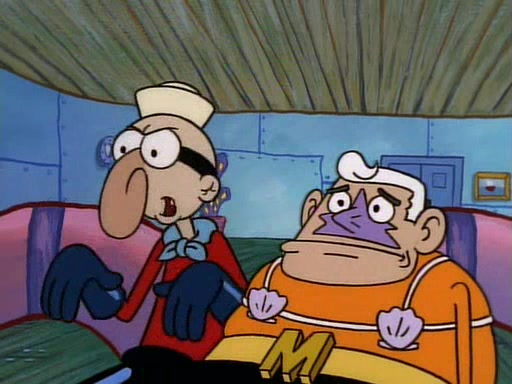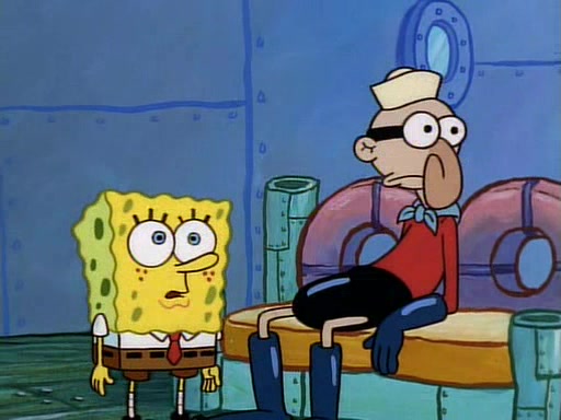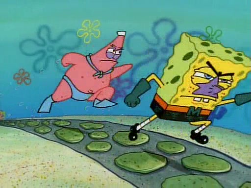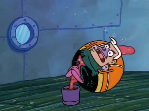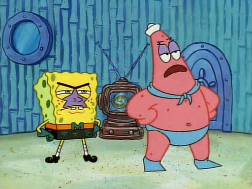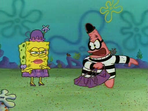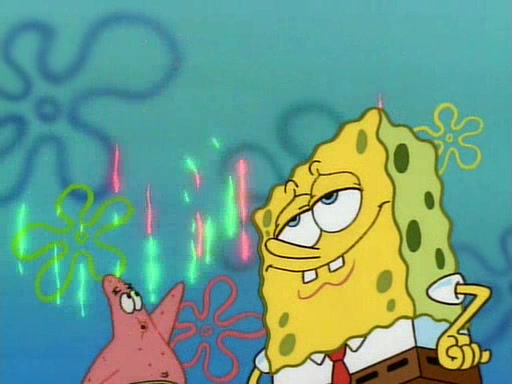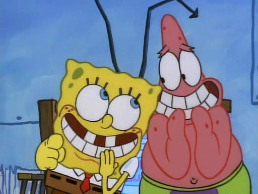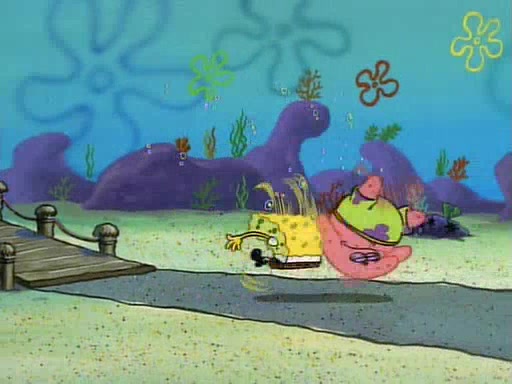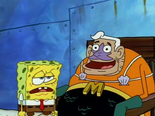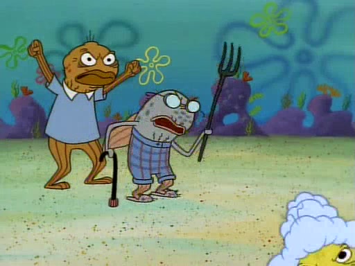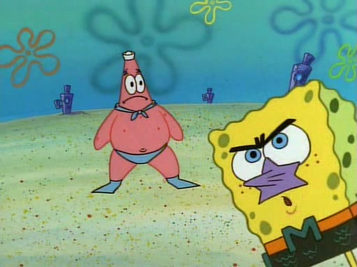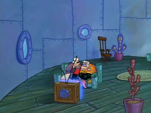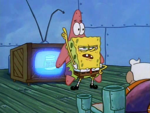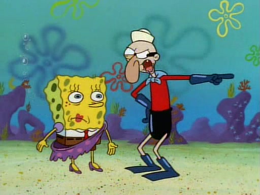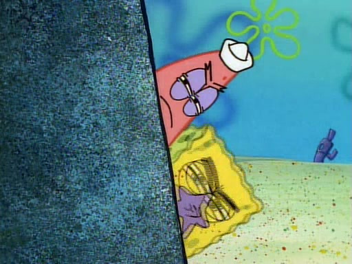 The phone gets broken, and when Mermaid Man hangs up the phone, a comic book bubble appears and dramatizes the words "HANG UP!" When Mermaid Man sits down, the bubble appears again and says "SIT!!" Will our heroes ever get their phone fixed? Tune in next week and find out. And when SpongeBob winks, the bubble appears again, saying "WINK!".