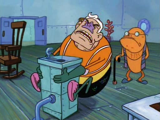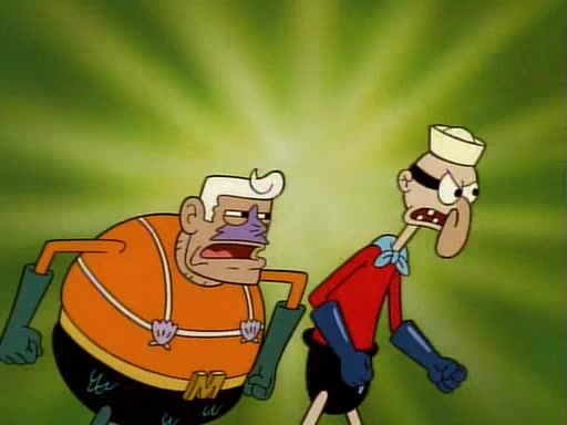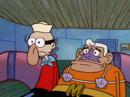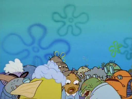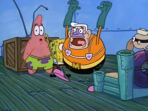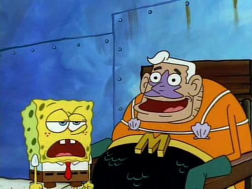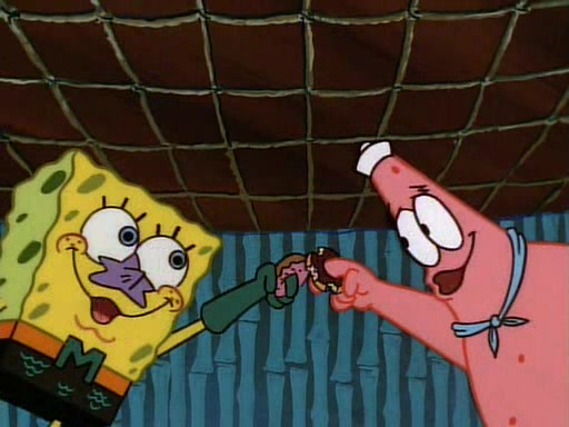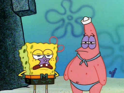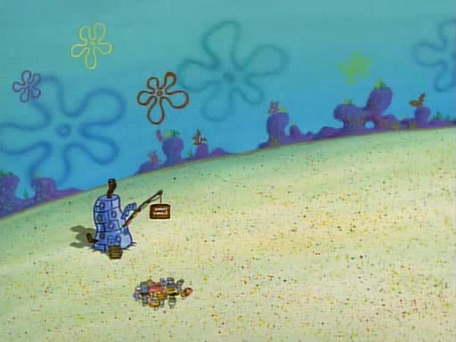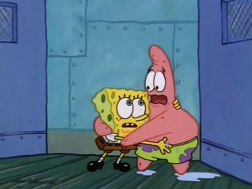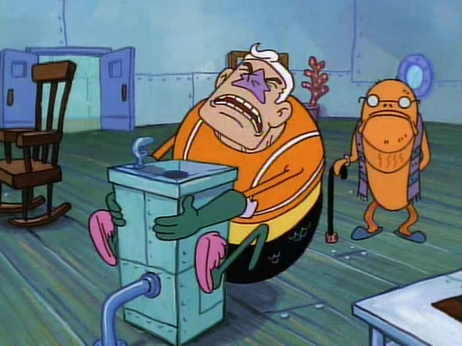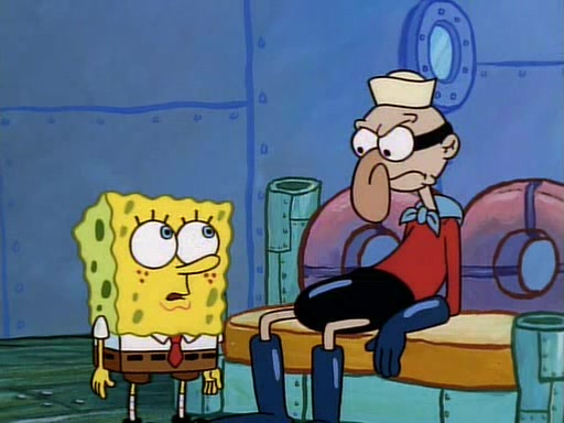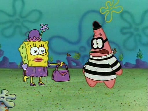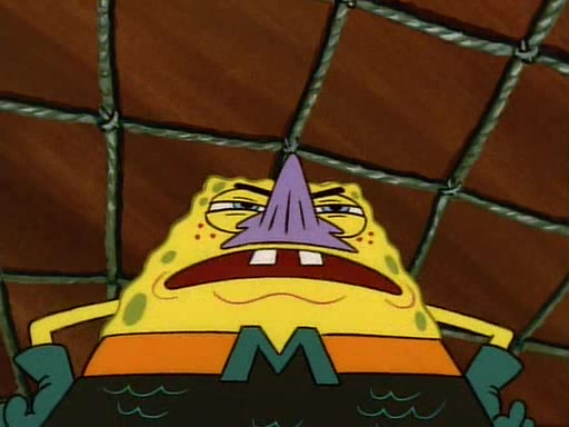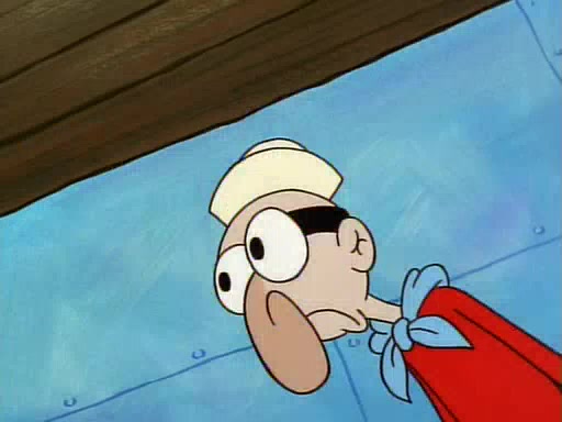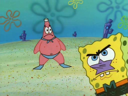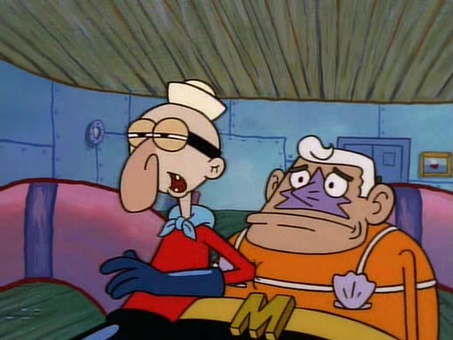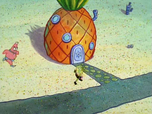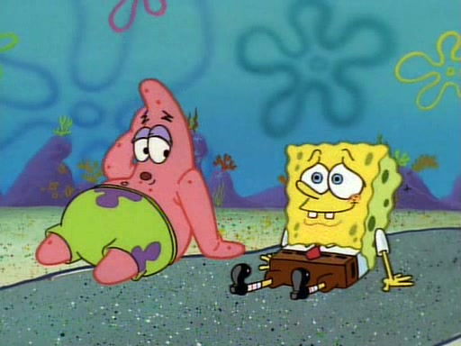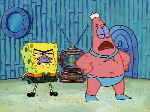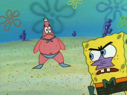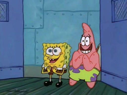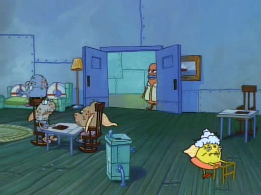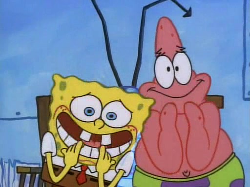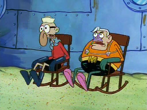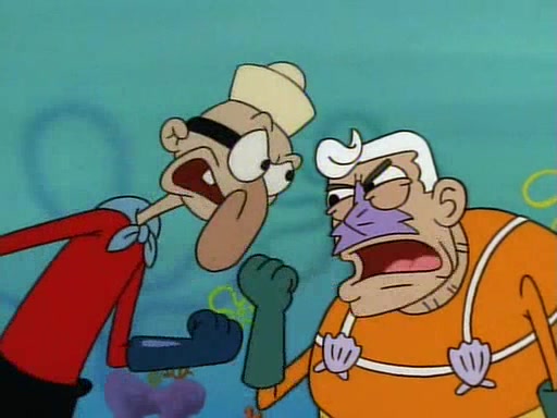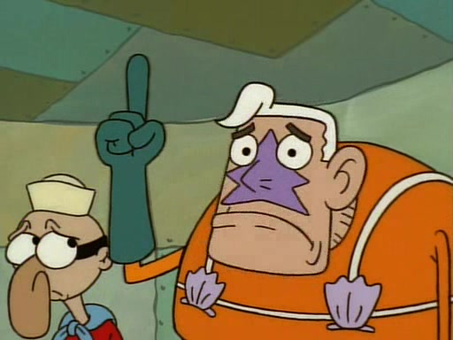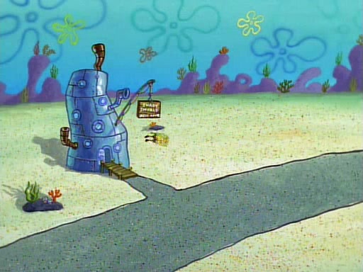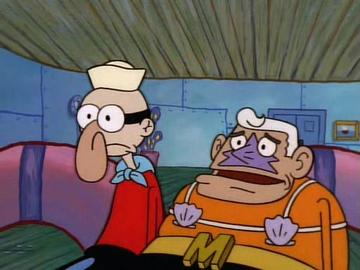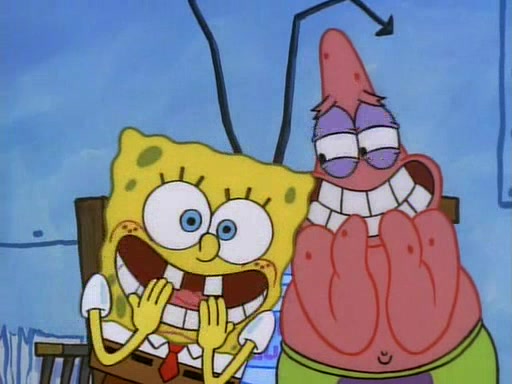 The phone gets broken, and when Mermaid Man hangs up the phone, a comic book bubble appears and dramatizes the words "HANG UP!" When Mermaid Man sits down, the bubble appears again and says "SIT!!" Will our heroes ever get their phone fixed? Tune in next week and find out. And when SpongeBob winks, the bubble appears again, saying "WINK!".