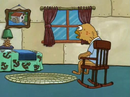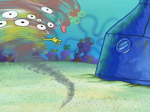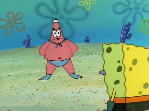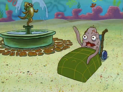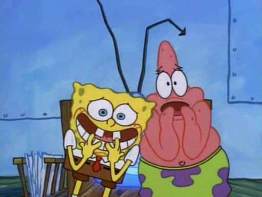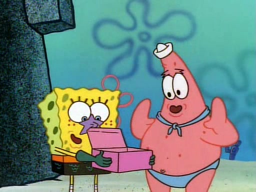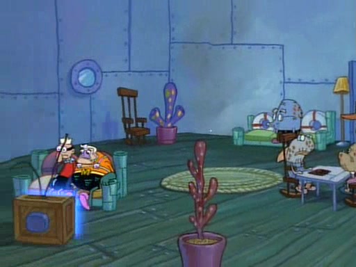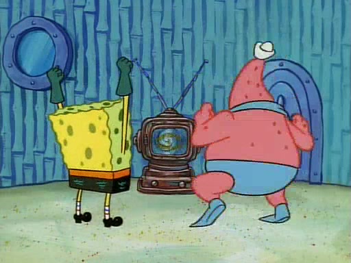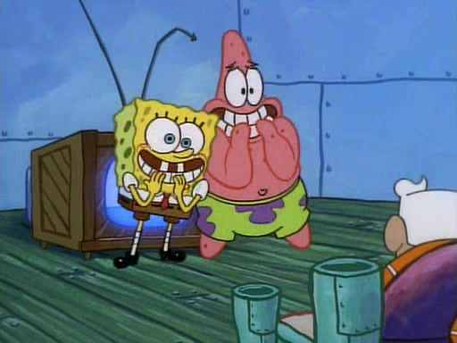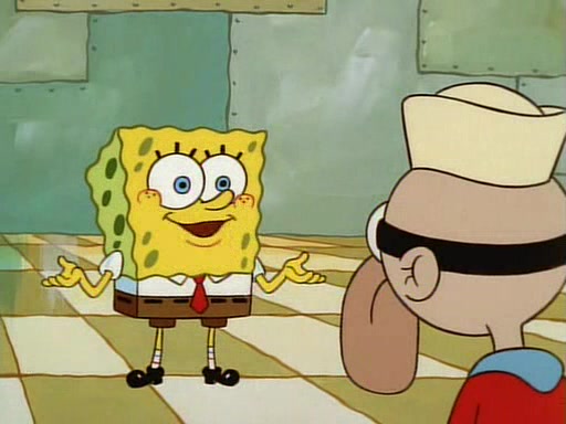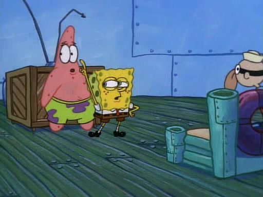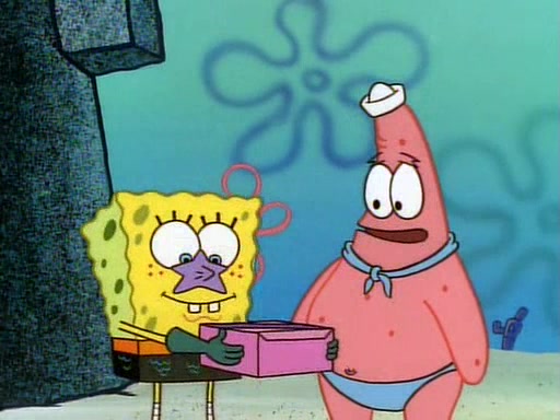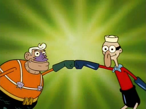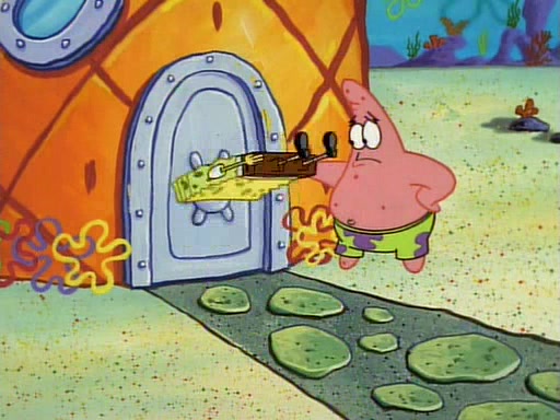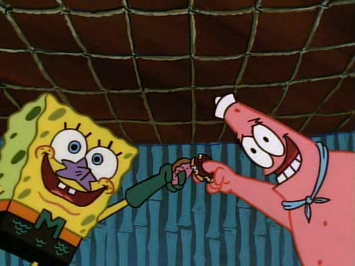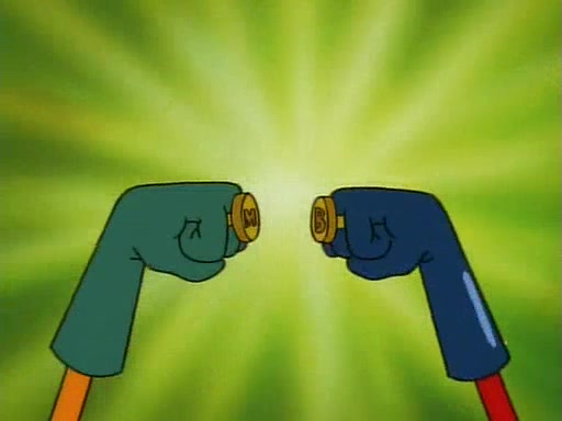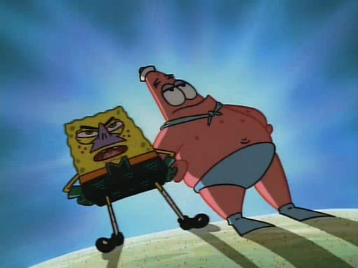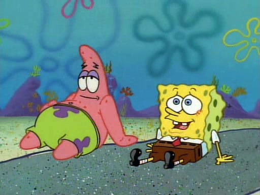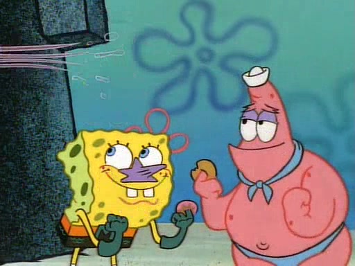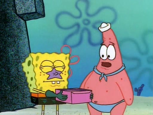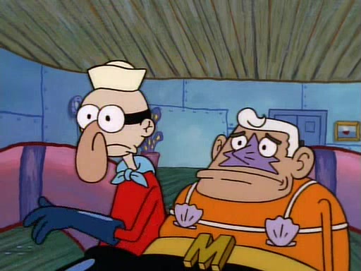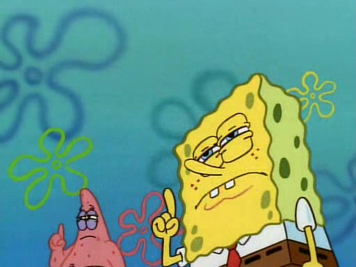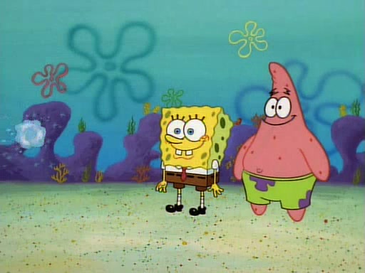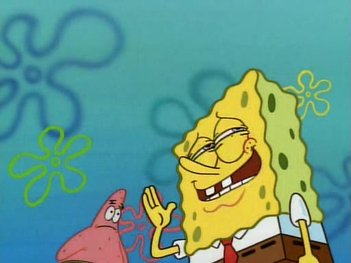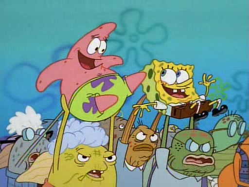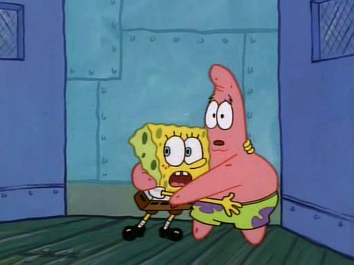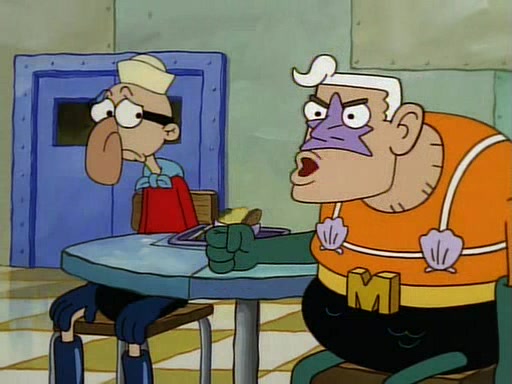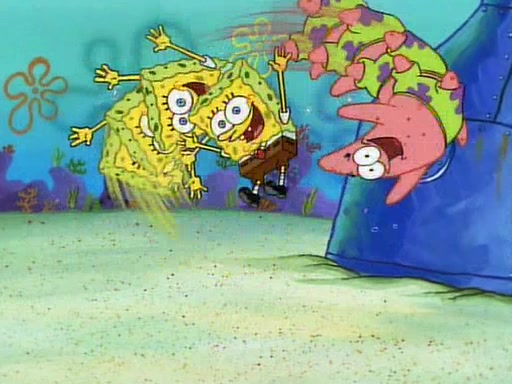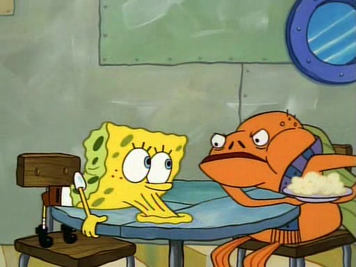 The phone gets broken, and when Mermaid Man hangs up the phone, a comic book bubble appears and dramatizes the words "HANG UP!" When Mermaid Man sits down, the bubble appears again and says "SIT!!" Will our heroes ever get their phone fixed? Tune in next week and find out. And when SpongeBob winks, the bubble appears again, saying "WINK!".