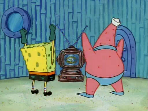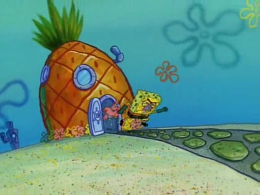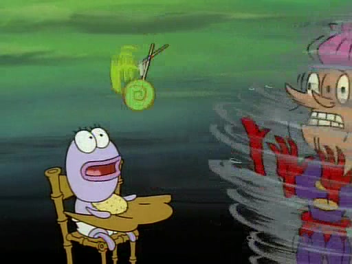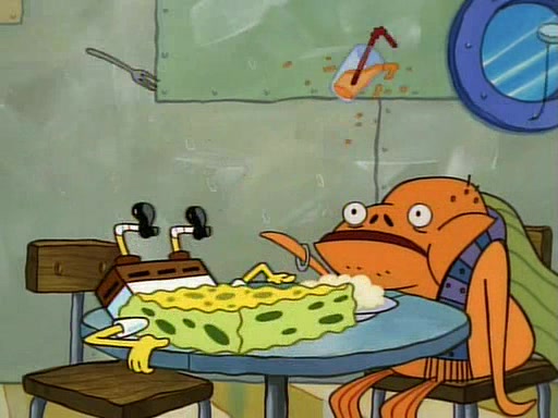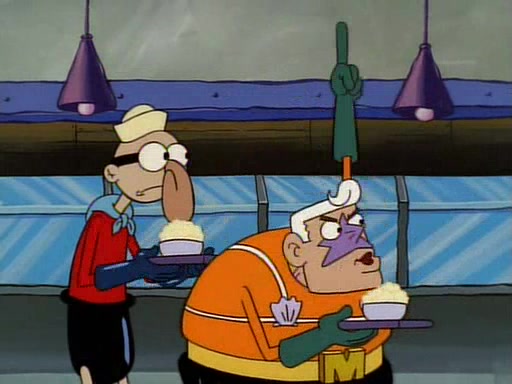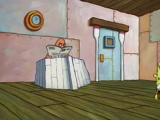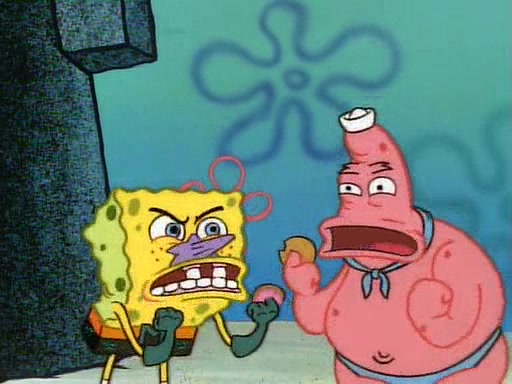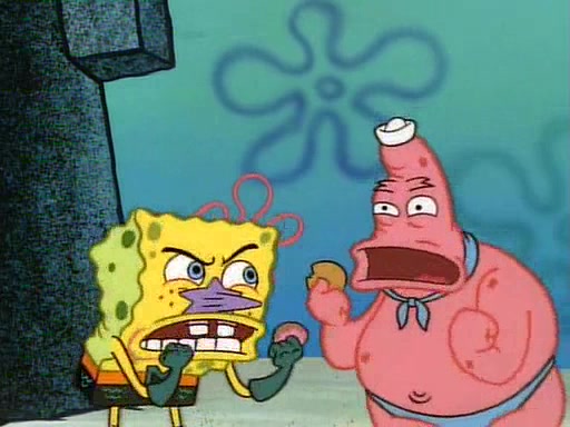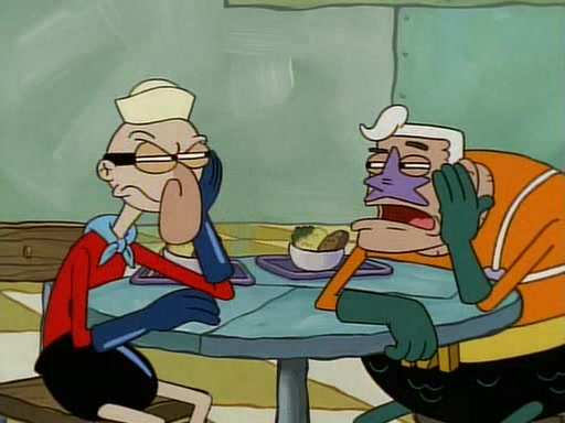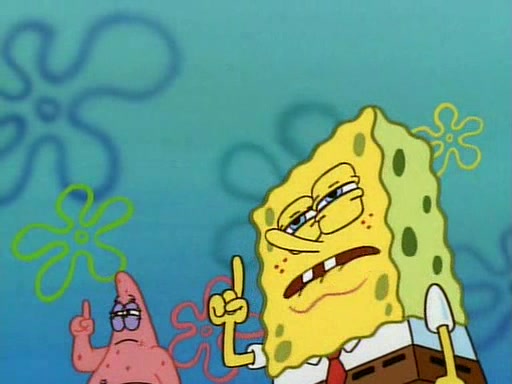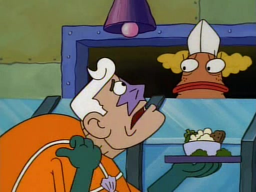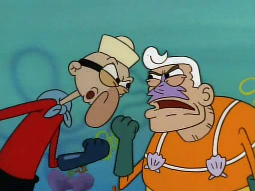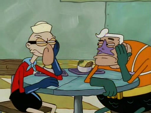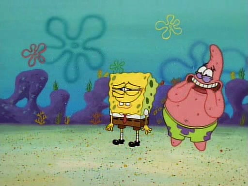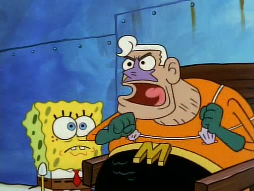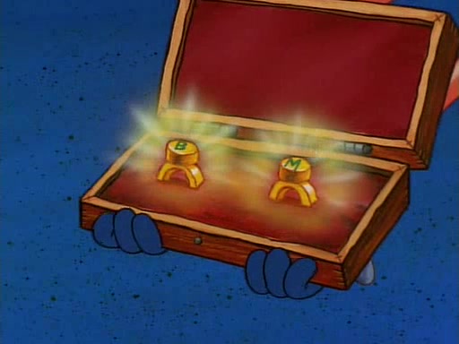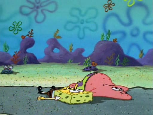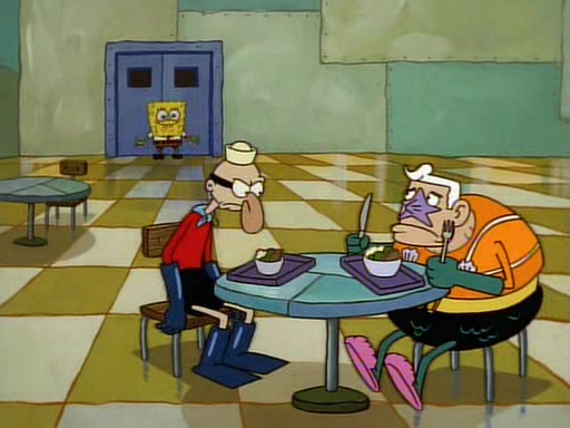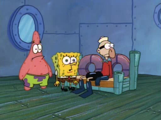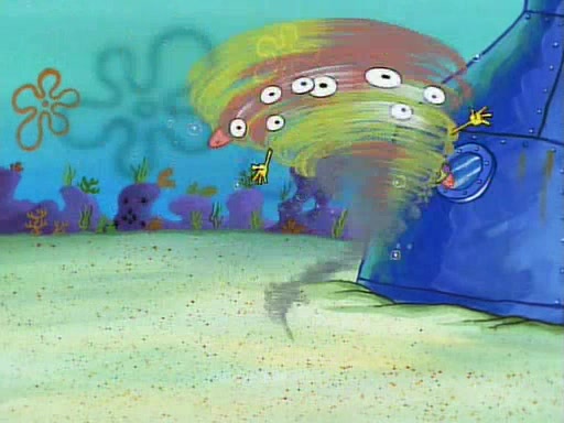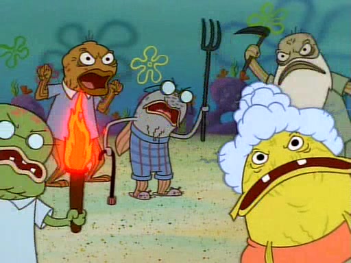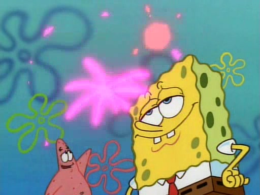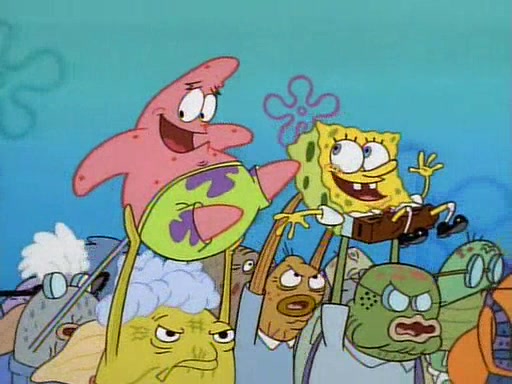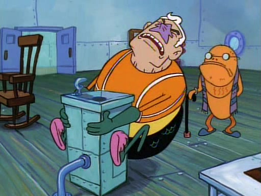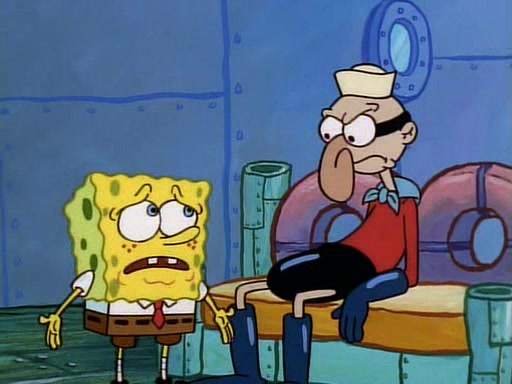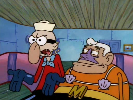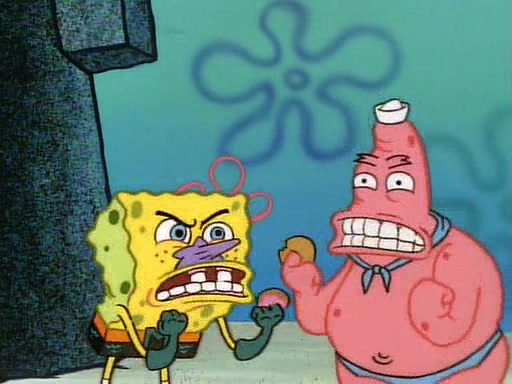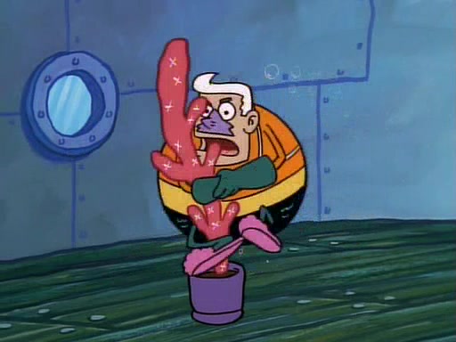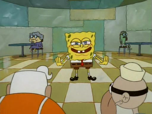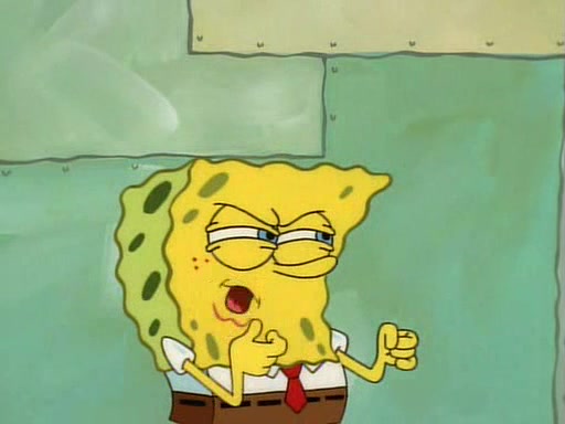 The phone gets broken, and when Mermaid Man hangs up the phone, a comic book bubble appears and dramatizes the words "HANG UP!" When Mermaid Man sits down, the bubble appears again and says "SIT!!" Will our heroes ever get their phone fixed? Tune in next week and find out. And when SpongeBob winks, the bubble appears again, saying "WINK!".
