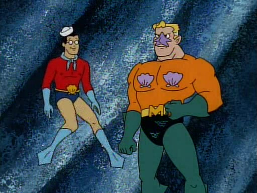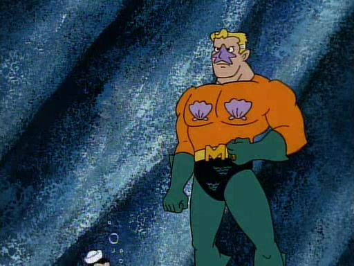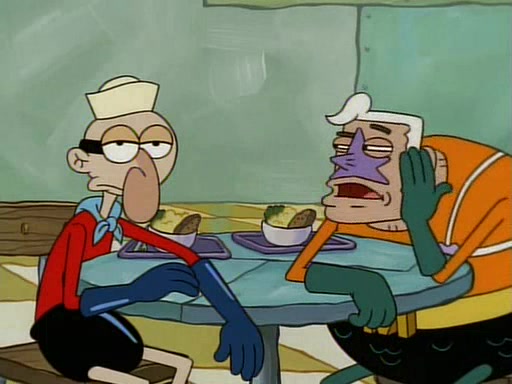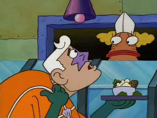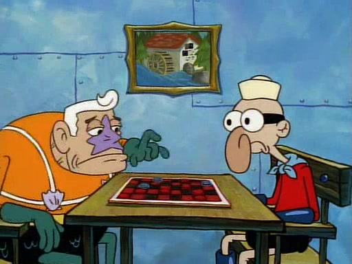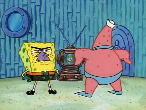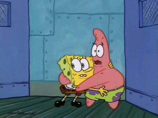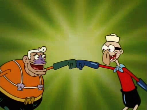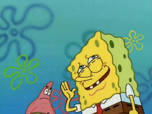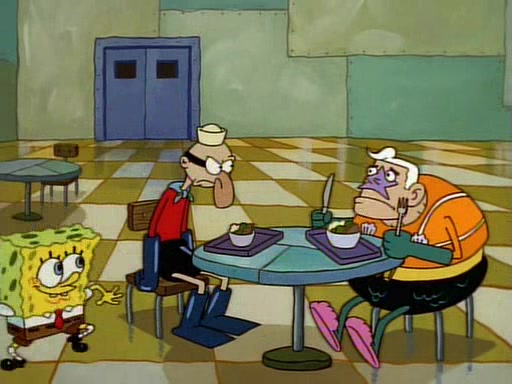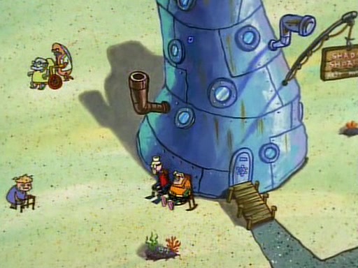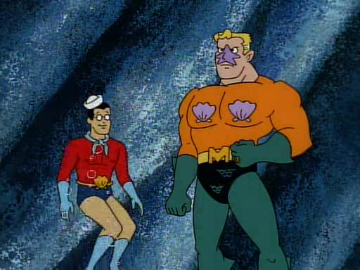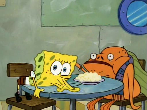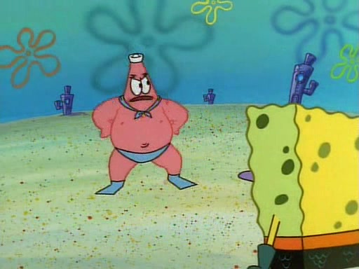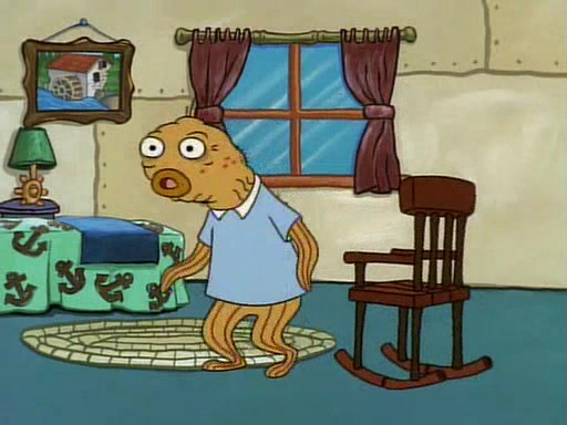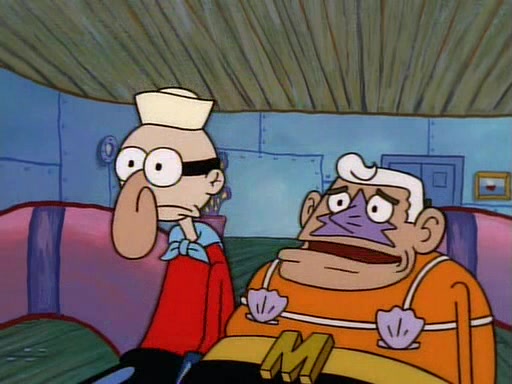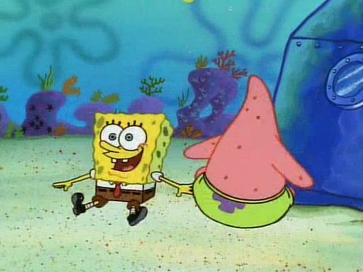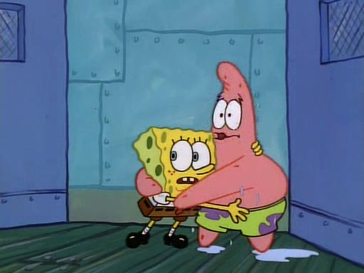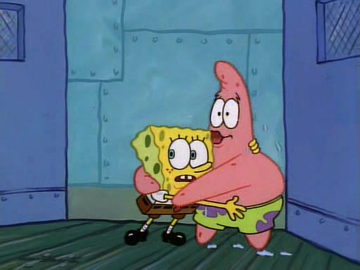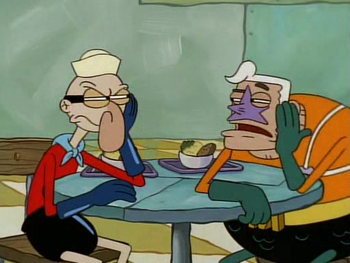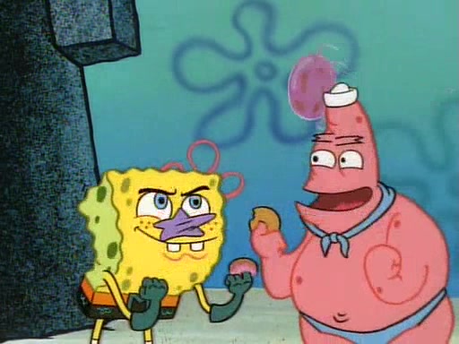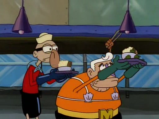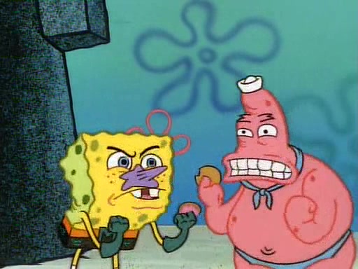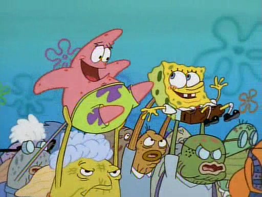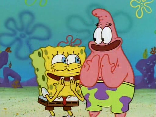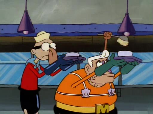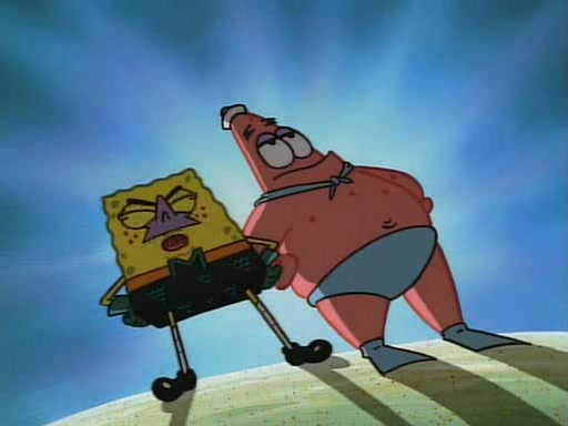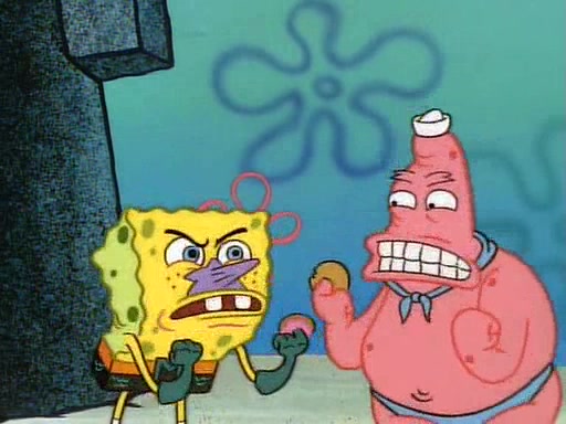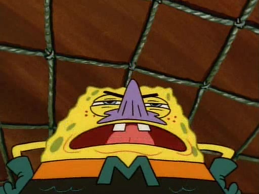 The phone gets broken, and when Mermaid Man hangs up the phone, a comic book bubble appears and dramatizes the words "HANG UP!" When Mermaid Man sits down, the bubble appears again and says "SIT!!" Will our heroes ever get their phone fixed? Tune in next week and find out. And when SpongeBob winks, the bubble appears again, saying "WINK!".