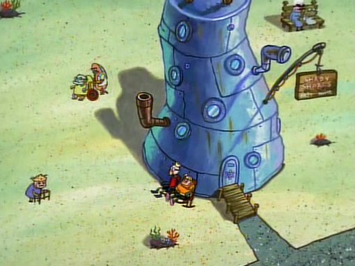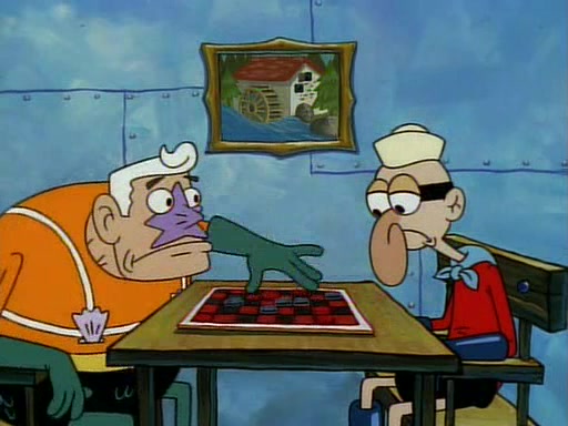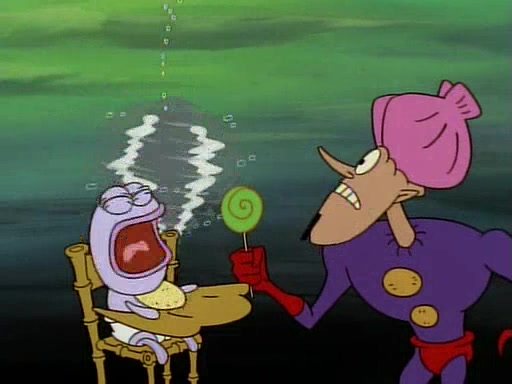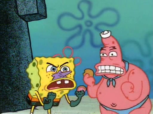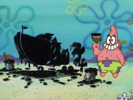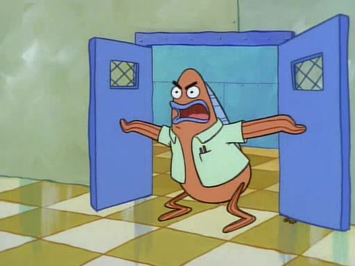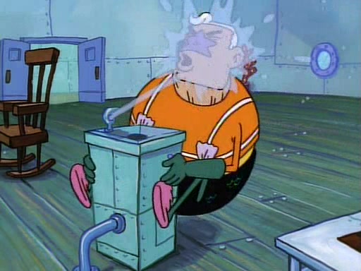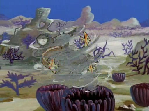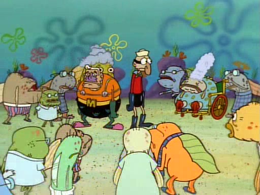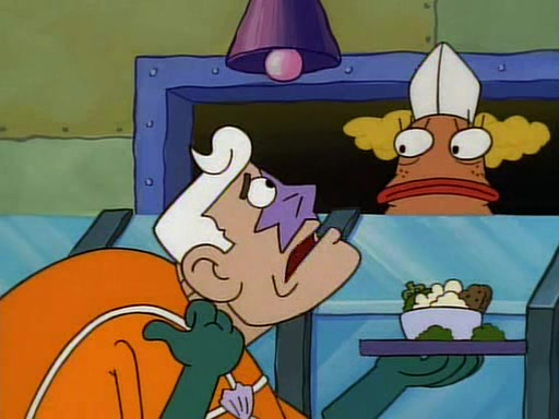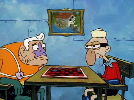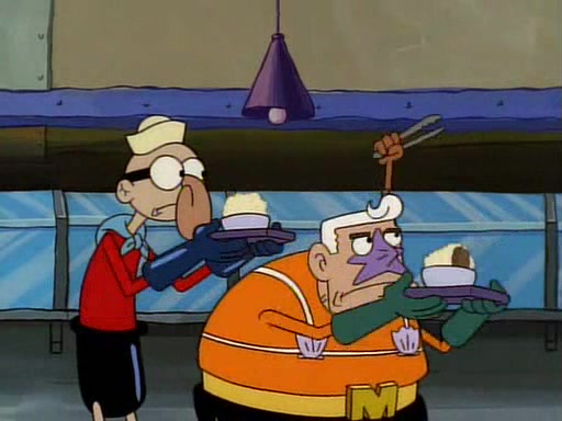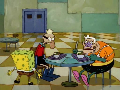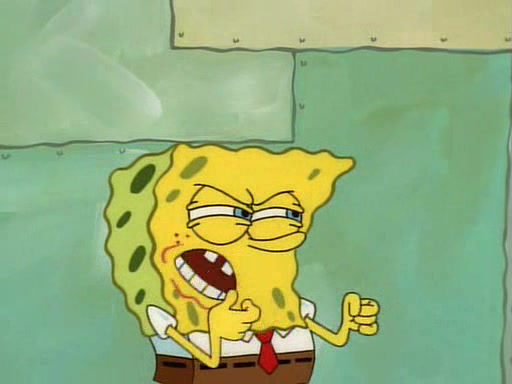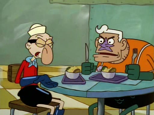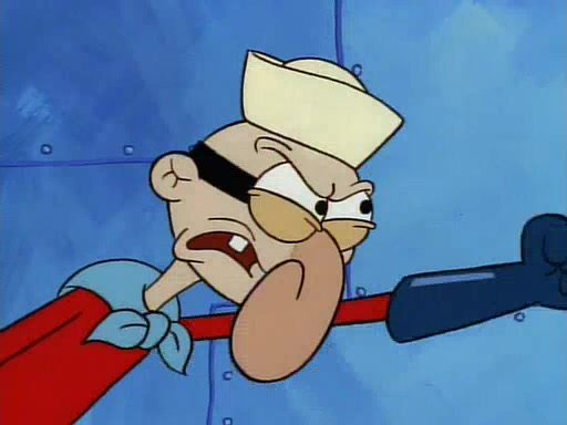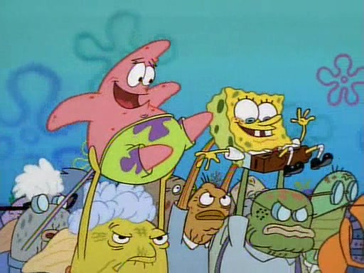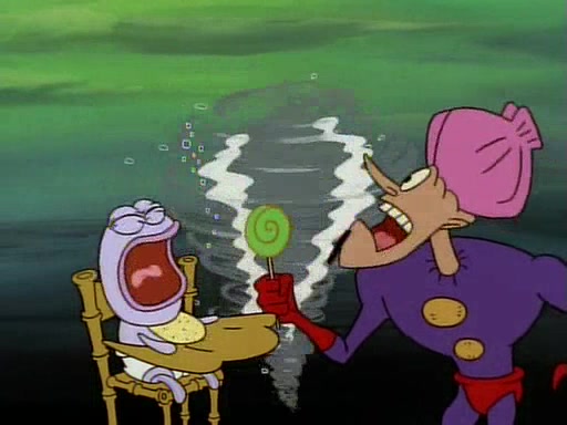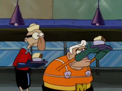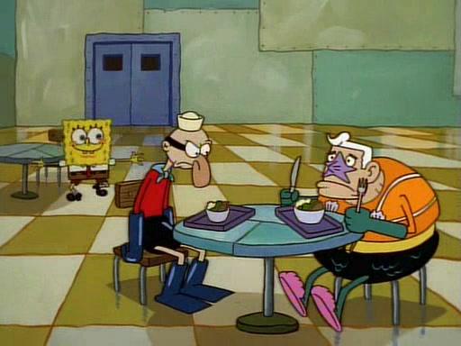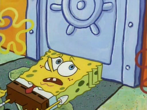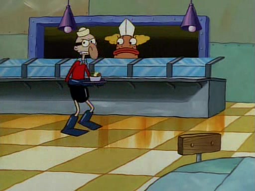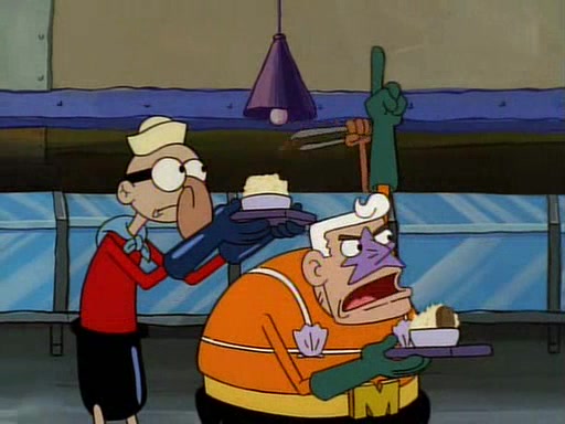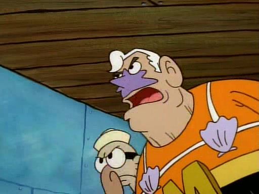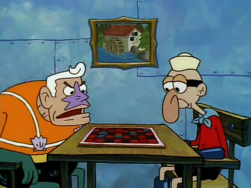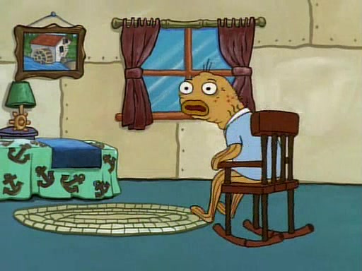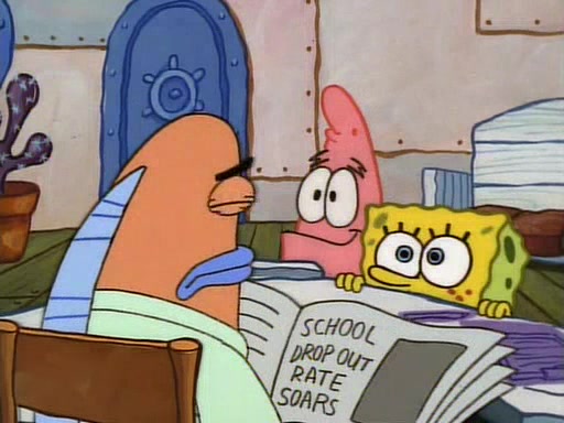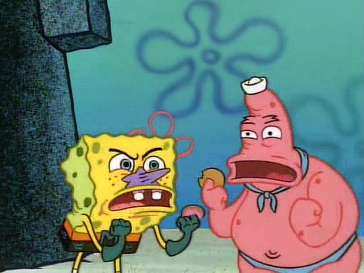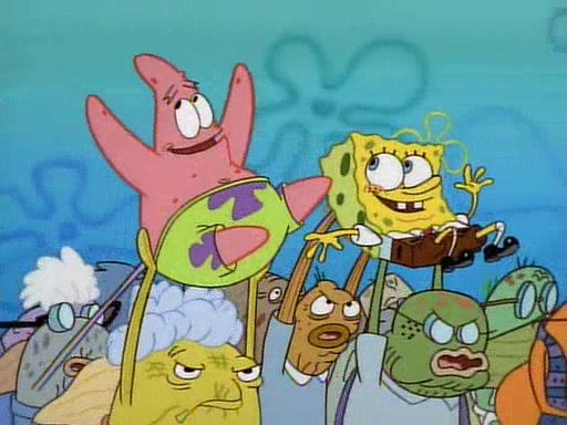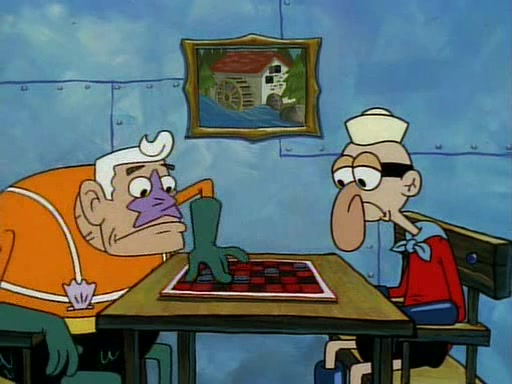 The phone gets broken, and when Mermaid Man hangs up the phone, a comic book bubble appears and dramatizes the words "HANG UP!" When Mermaid Man sits down, the bubble appears again and says "SIT!!" Will our heroes ever get their phone fixed? Tune in next week and find out. And when SpongeBob winks, the bubble appears again, saying "WINK!".