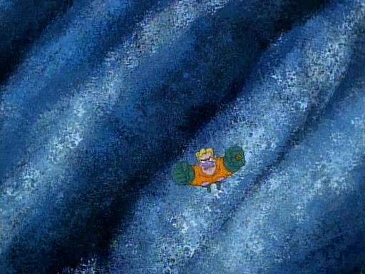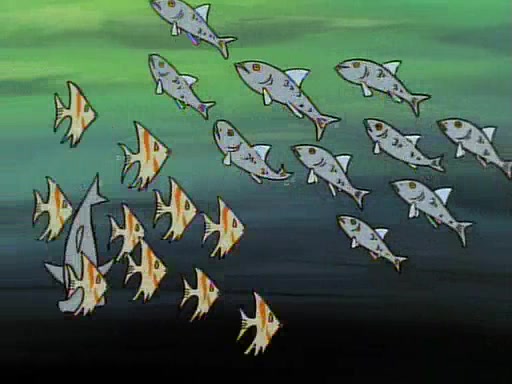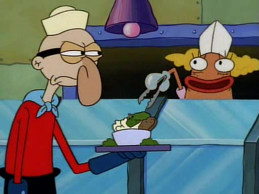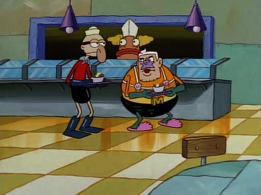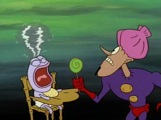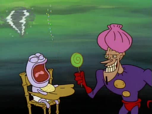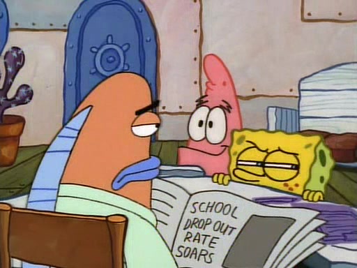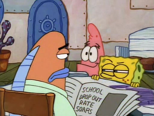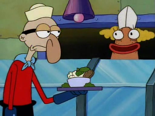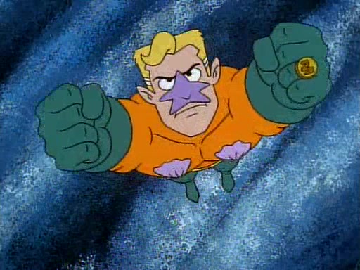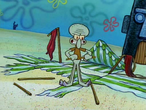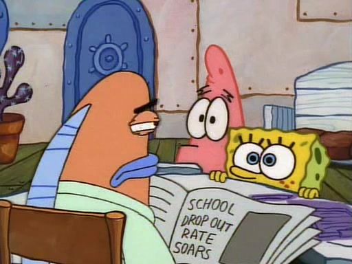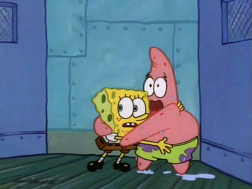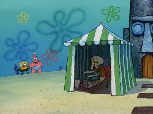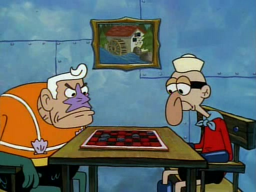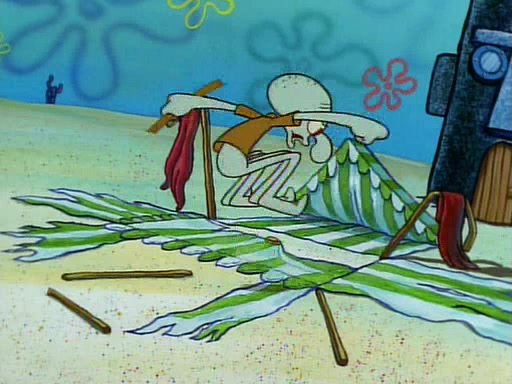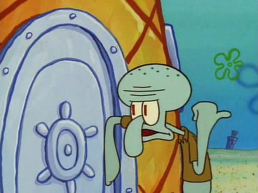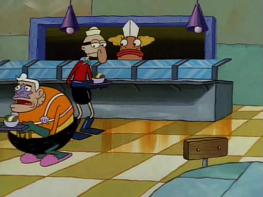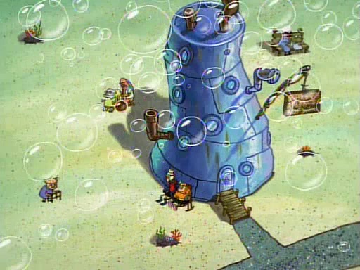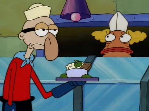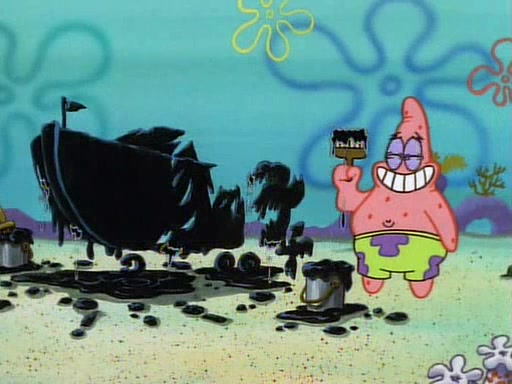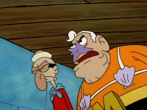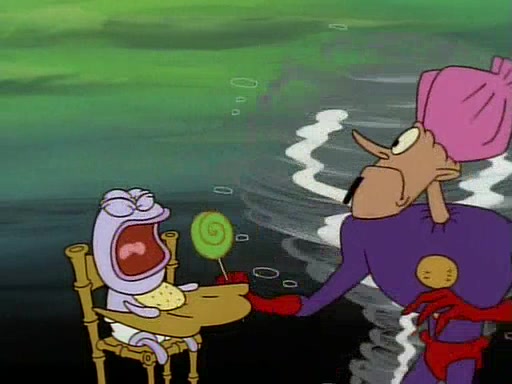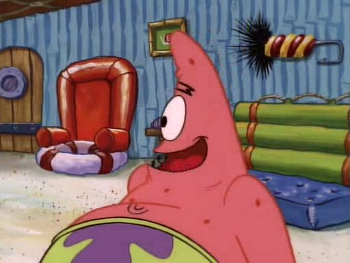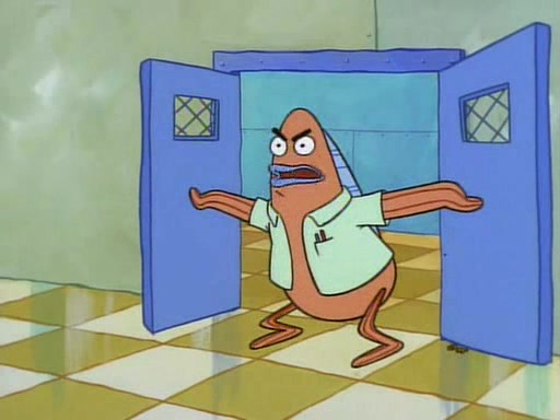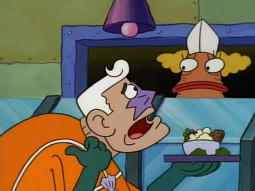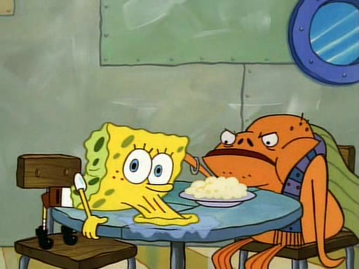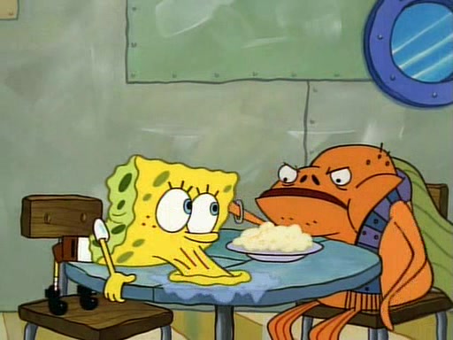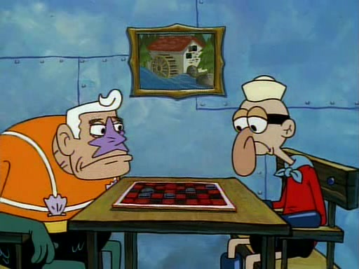The phone gets broken, and when Mermaid Man hangs up the phone, a comic book bubble appears and dramatizes the words "HANG UP!" When Mermaid Man sits down, the bubble appears again and says "SIT!!" Will our heroes ever get their phone fixed? Tune in next week and find out. And when SpongeBob winks, the bubble appears again, saying "WINK!".
