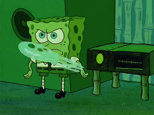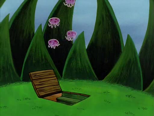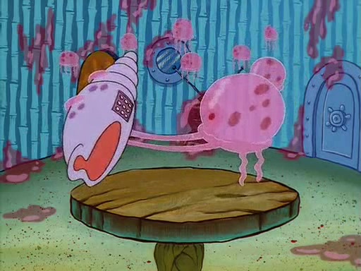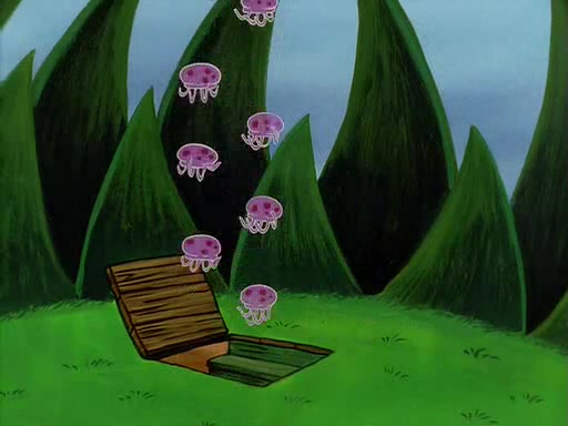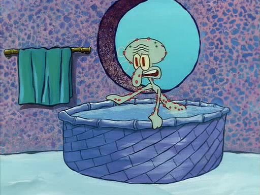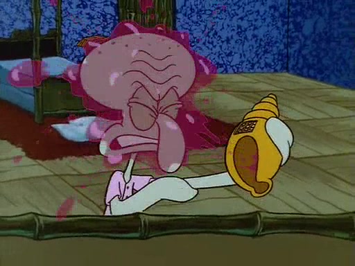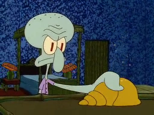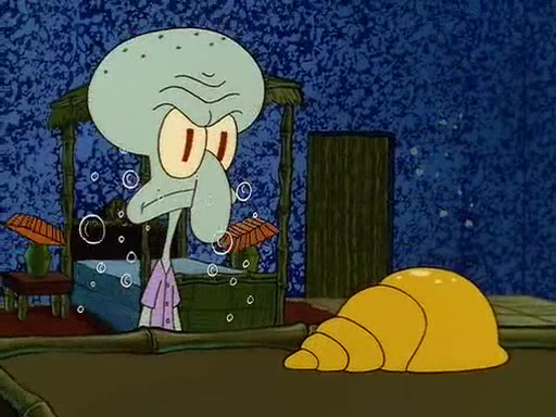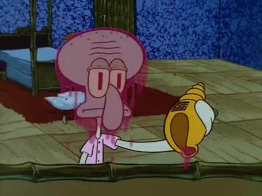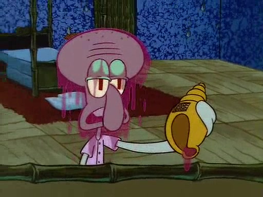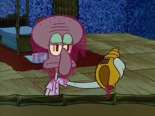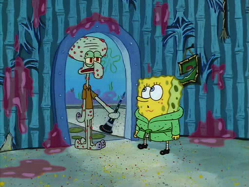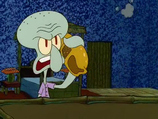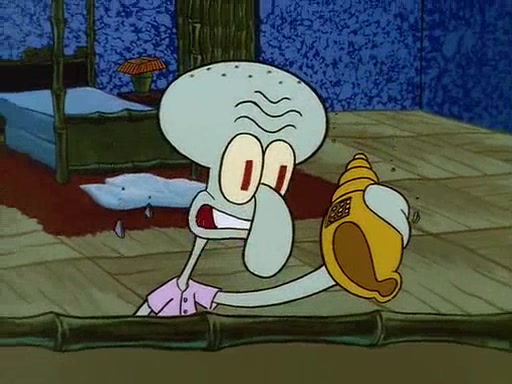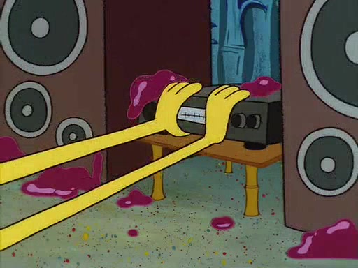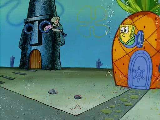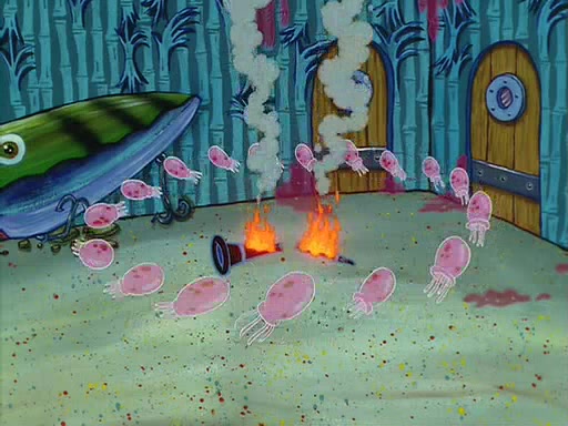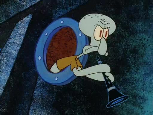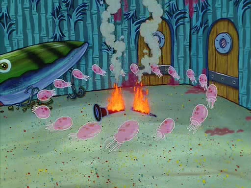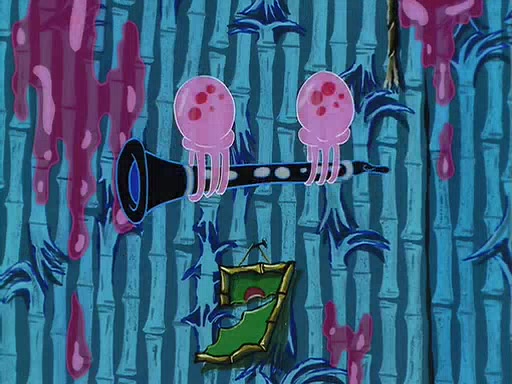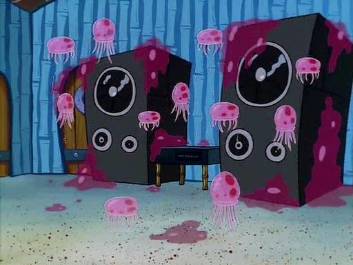 The next morning, SpongeBob wakes up to find his living room filled with hundreds of dancing jellyfish. He attempts to make them leave, but to no avail. Squidward, annoyed by this, decides that "two can play at this," and starts loudly playing his clarinet, angering the jellyfish, who start destroying SpongeBob's house. SpongeBob asks Squidward to play his clarinet a little "better," and Squidward responds by intentionally playing even worse and much louder. This prompts the jellyfish to go to his house and sting him before returning to SpongeBob's house. A sting-covered Squidward says to SpongeBob "Everybody's a critic. You won't be hearing from me anymore," and gives him his clarinet. The jellyfish hastily grab it from SpongeBob, break it in half, burn it and dance around it. This further angers SpongeBob, who attempts to remove the stereo system, destroying it in the process, and the angered jellyfish begin stinging and chasing him. SpongeBob and Gary go up to the roof of the house, but the swarm follows them outside and surrounds them. Then Gary drives them away by clicking his eyes together, producing a sound that calms the Jellyfish. SpongeBob tells Gary to keep doing this, and puts him on his head. SpongeBob walks downstairs and out the front door, with the Jellyfish following him. As he leads them back to Jellyfish Fields, more sounds join Gary's clicking, eventually becoming a full-fledged song. In the last scene, the severely stung Squidward is shown getting into a bathtub as the episode ends.