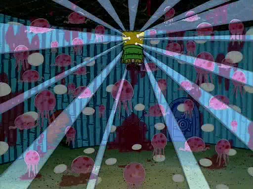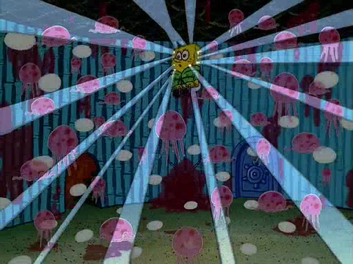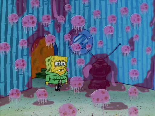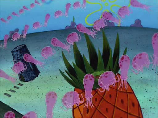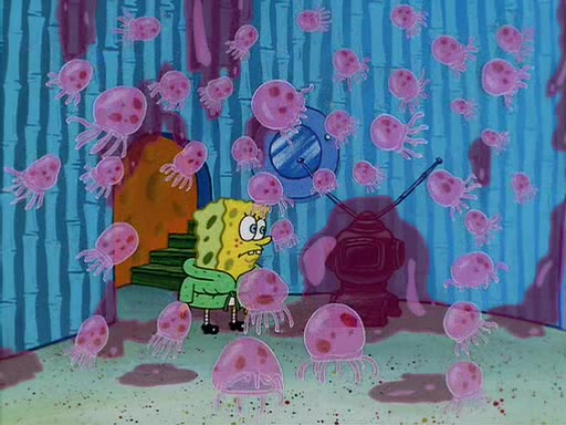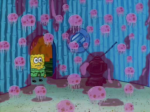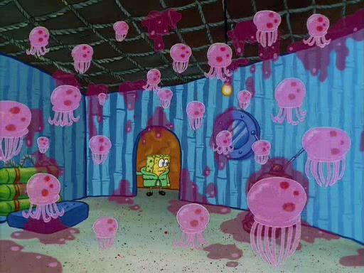 A jellyfish insists on following SpongeBob home after a day out at Jellyfish Fields, so SpongeBob decides on letting it spend the night at his home. Squidward warns SpongeBob that jellyfish are wild animals and that they should not be domesticated, but SpongeBob completely ignores him. At home, SpongeBob dances with the jellyfish to loud techno rave music, which annoys Squidward to no end. After 12 hours of this form of nonstop partying, SpongeBob finally decides that it is time to go to bed, but this Jellyfish does not want to stop. SpongeBob eventually forces it to go to bed by tying a leash around it, but during the night, while SpongeBob sleeps, the jellyfish escapes and brings lots of his friends into SpongeBob's house.