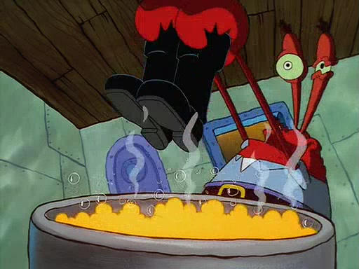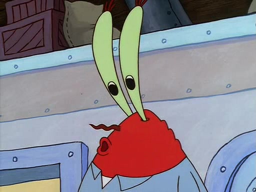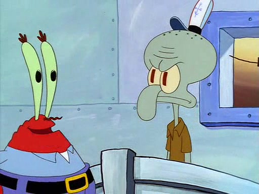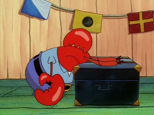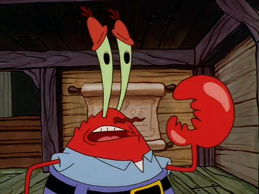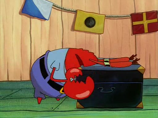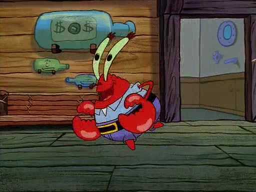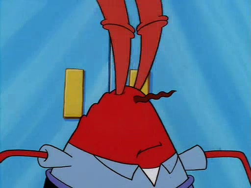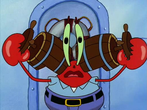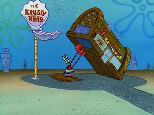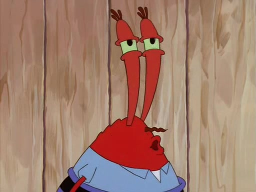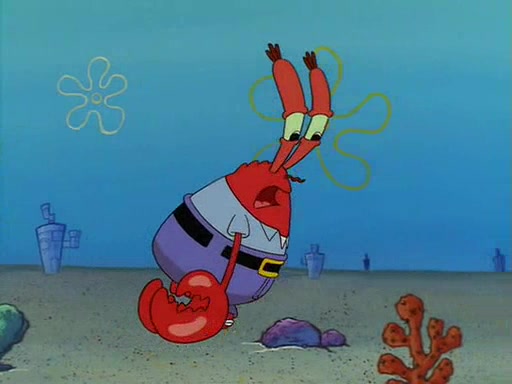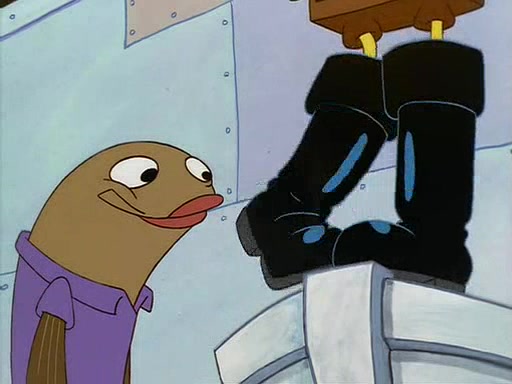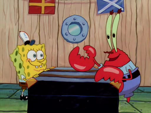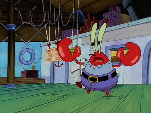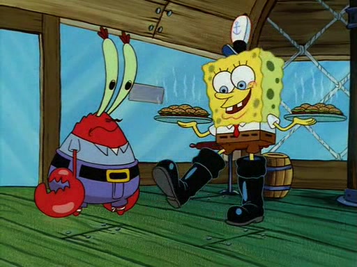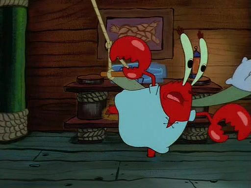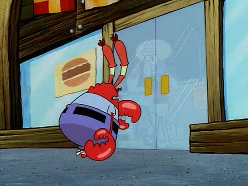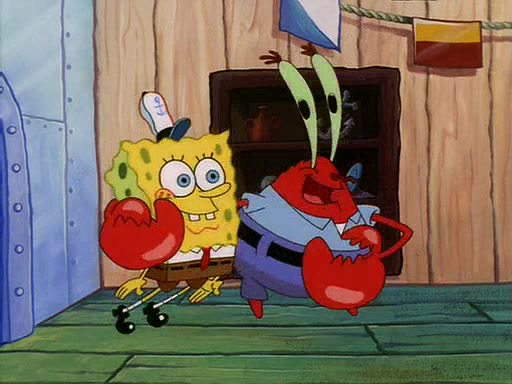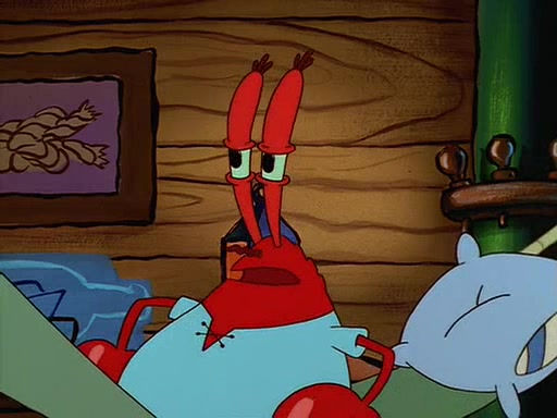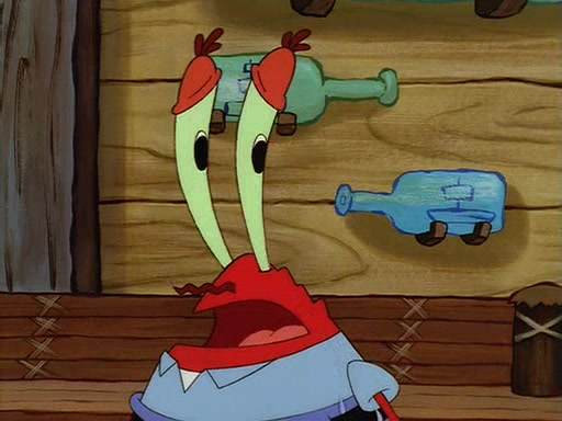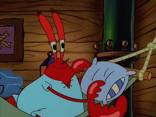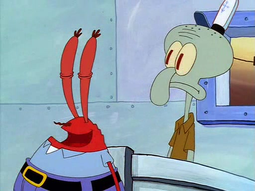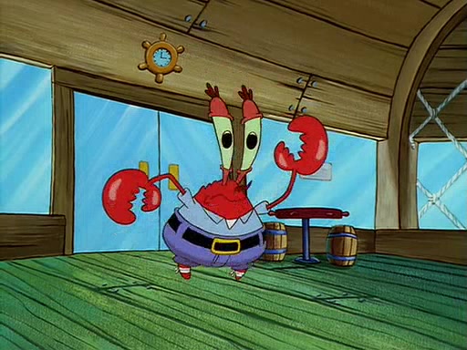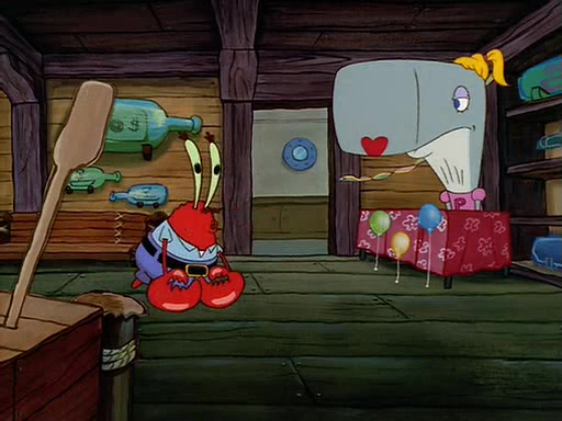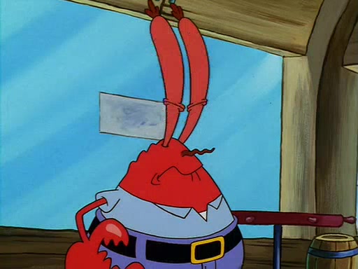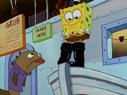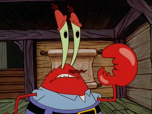 For Pearl's birthday, Mr. Krabs selfishly gives her a pair of black fishing boots that only cost $2. After Pearl doesn't accept the gift. Mr. Krabs, wanting to get rid of them, tells SpongeBob that the boots are special, and that they were only worn by the best official fry cooks in the world. SpongeBob, excitedly, exchanges his paycheck for them, and starts wearing them all day and night. The squeaking annoys Squidward so much that he goes on vacation, and Mr. Krabs has to fill in for him. After a sleepless night because of a squeaking window, Mr. Krabs can't stand the squeak of SpongeBob's boots anymore. At his wit's end, he steals the boots and buries them underneath the Krusty Krab. However, SpongeBob comes in the next day crying because he couldn't find the boots. Mr. Krabs feels guilty and starts going crazy, believing that he hears nothing but the constant squeaking of the boots (all text he sees is even replaced by the word "squeak"). Finally, he snaps and confesses that he stole the boots and hid them under the floor. He unburies the boots, shrinks them and eats them in a bout of insanity, which eventually calms Mr. Krabs and SpongeBob down. He thinks he finally has peace and quiet and goes on vacation with Pearl, until he hiccups, making the boots (inside his body) squeak.