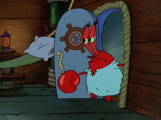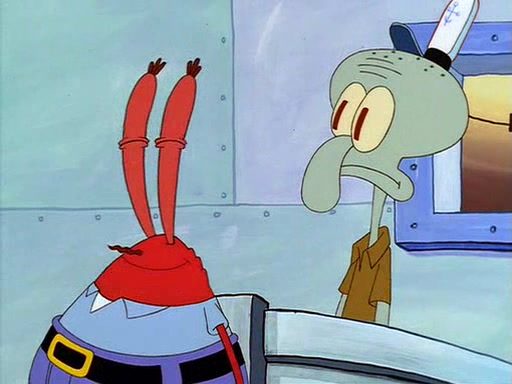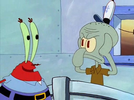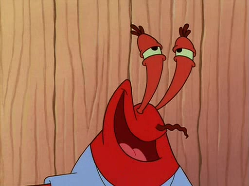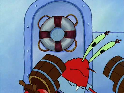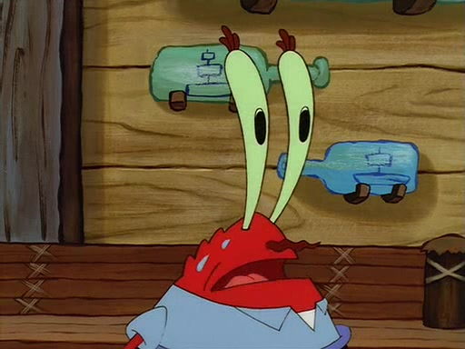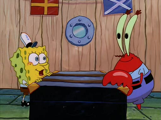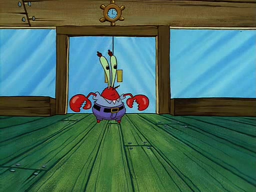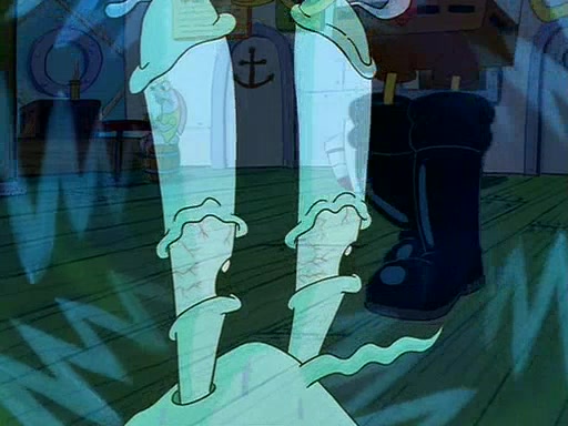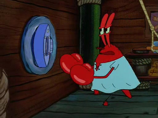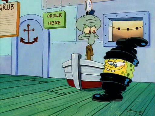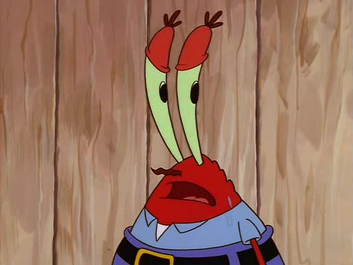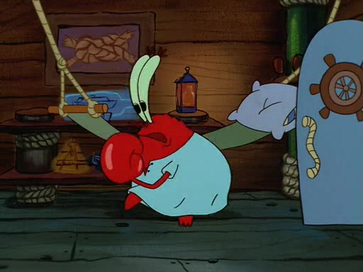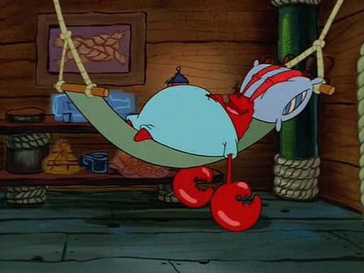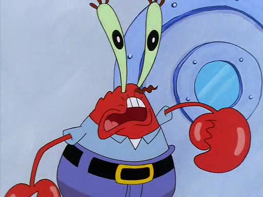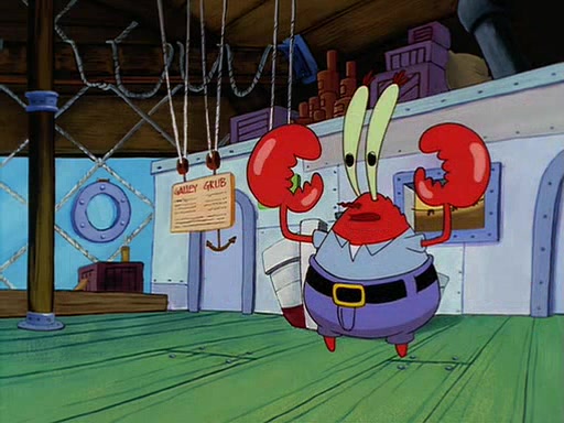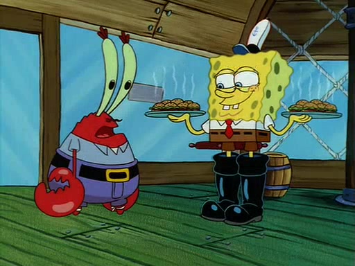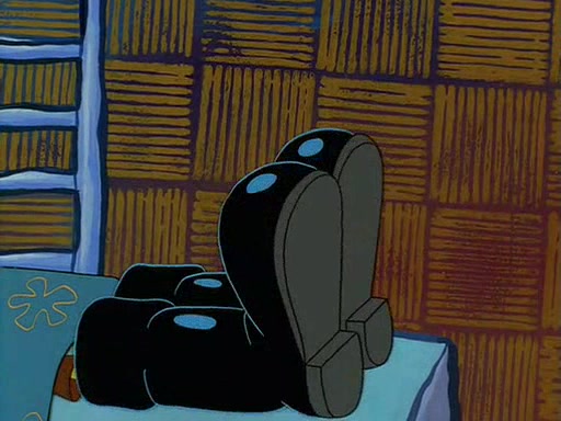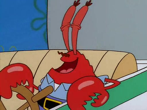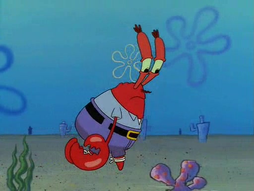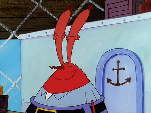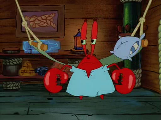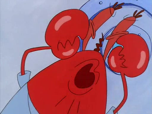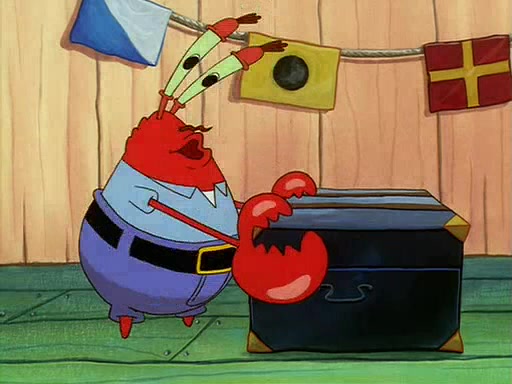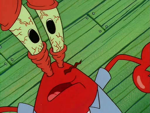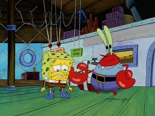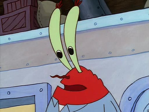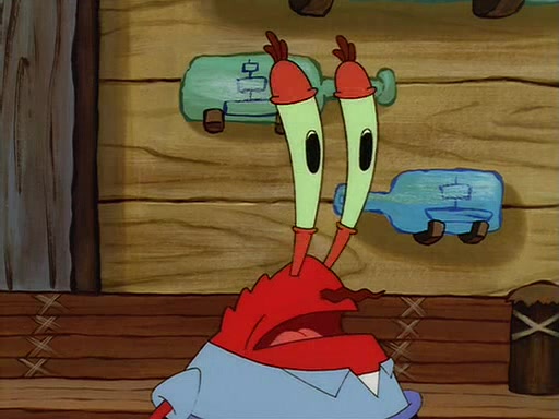 For Pearl's birthday, Mr. Krabs selfishly gives her a pair of black fishing boots that only cost $2. After Pearl doesn't accept the gift. Mr. Krabs, wanting to get rid of them, tells SpongeBob that the boots are special, and that they were only worn by the best official fry cooks in the world. SpongeBob, excitedly, exchanges his paycheck for them, and starts wearing them all day and night. The squeaking annoys Squidward so much that he goes on vacation, and Mr. Krabs has to fill in for him. After a sleepless night because of a squeaking window, Mr. Krabs can't stand the squeak of SpongeBob's boots anymore. At his wit's end, he steals the boots and buries them underneath the Krusty Krab. However, SpongeBob comes in the next day crying because he couldn't find the boots. Mr. Krabs feels guilty and starts going crazy, believing that he hears nothing but the constant squeaking of the boots (all text he sees is even replaced by the word "squeak"). Finally, he snaps and confesses that he stole the boots and hid them under the floor. He unburies the boots, shrinks them and eats them in a bout of insanity, which eventually calms Mr. Krabs and SpongeBob down. He thinks he finally has peace and quiet and goes on vacation with Pearl, until he hiccups, making the boots (inside his body) squeak.