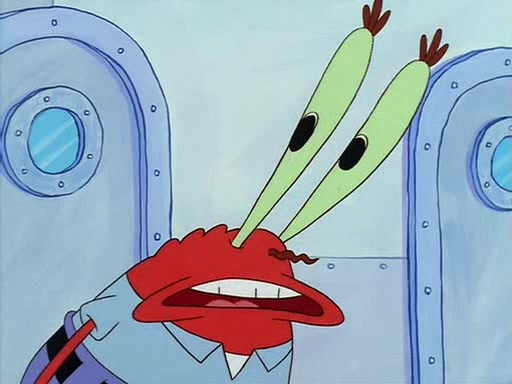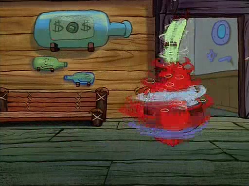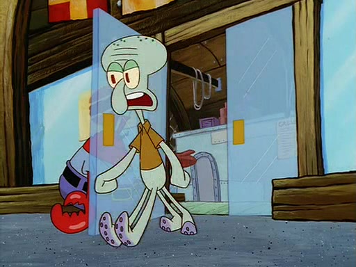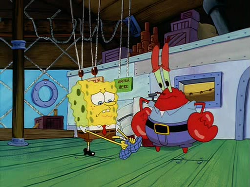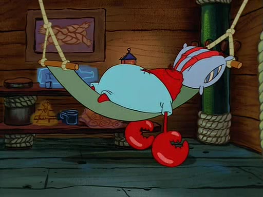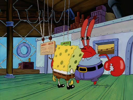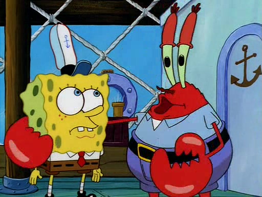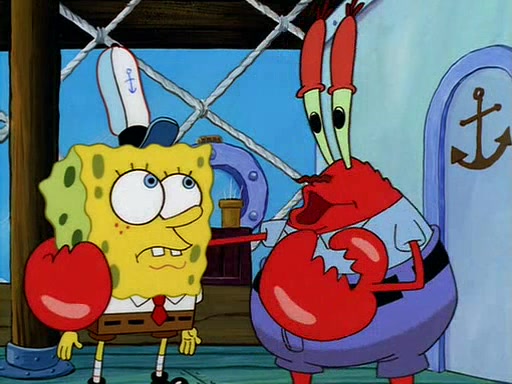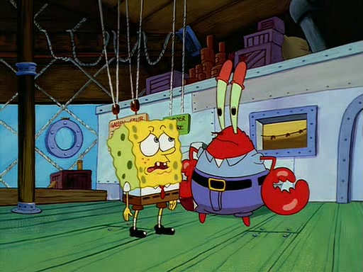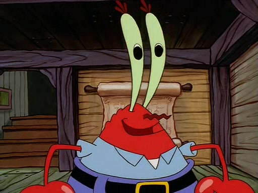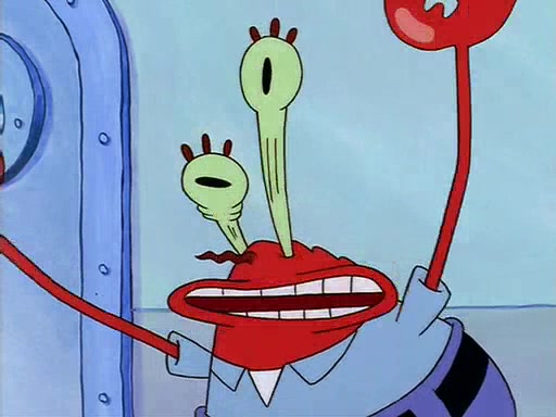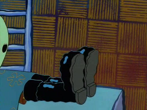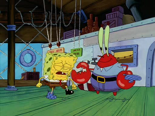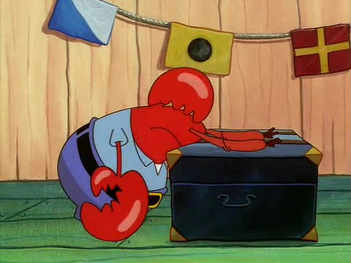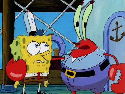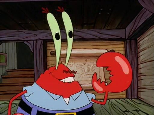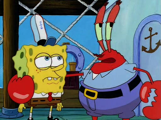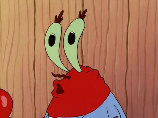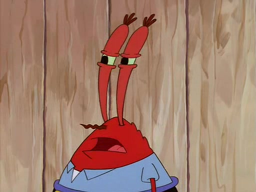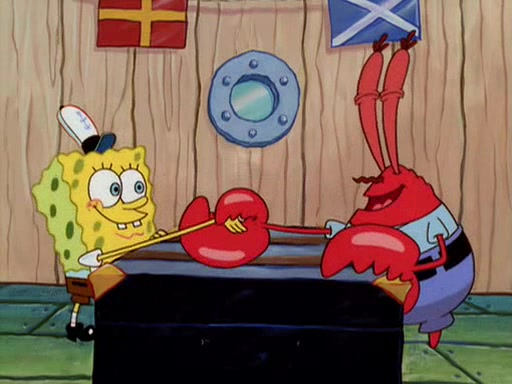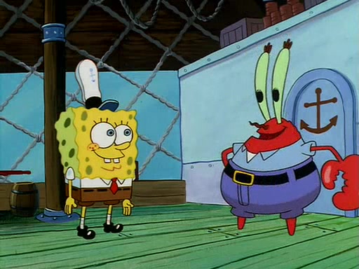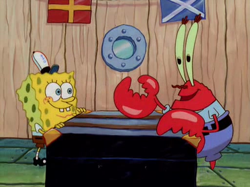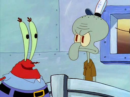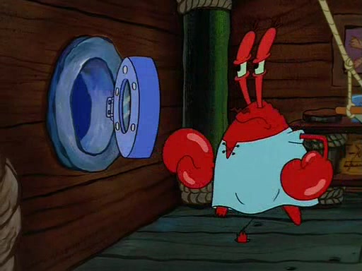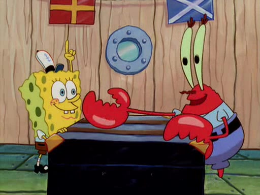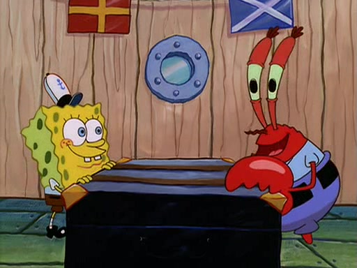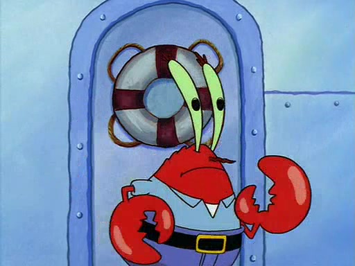 For Pearl's birthday, Mr. Krabs selfishly gives her a pair of black fishing boots that only cost $2. After Pearl doesn't accept the gift. Mr. Krabs, wanting to get rid of them, tells SpongeBob that the boots are special, and that they were only worn by the best official fry cooks in the world. SpongeBob, excitedly, exchanges his paycheck for them, and starts wearing them all day and night. The squeaking annoys Squidward so much that he goes on vacation, and Mr. Krabs has to fill in for him. After a sleepless night because of a squeaking window, Mr. Krabs can't stand the squeak of SpongeBob's boots anymore. At his wit's end, he steals the boots and buries them underneath the Krusty Krab. However, SpongeBob comes in the next day crying because he couldn't find the boots. Mr. Krabs feels guilty and starts going crazy, believing that he hears nothing but the constant squeaking of the boots (all text he sees is even replaced by the word "squeak"). Finally, he snaps and confesses that he stole the boots and hid them under the floor. He unburies the boots, shrinks them and eats them in a bout of insanity, which eventually calms Mr. Krabs and SpongeBob down. He thinks he finally has peace and quiet and goes on vacation with Pearl, until he hiccups, making the boots (inside his body) squeak.