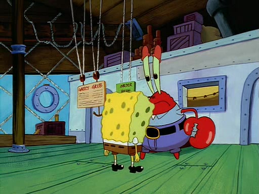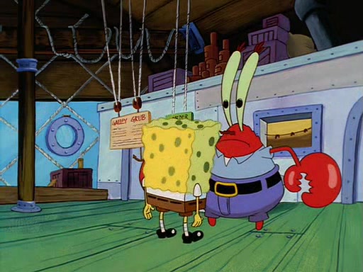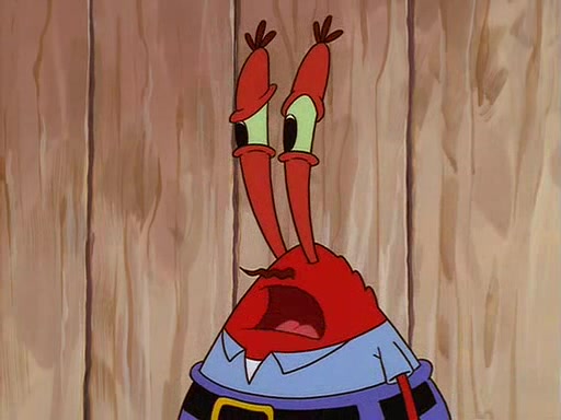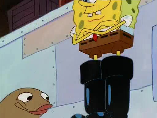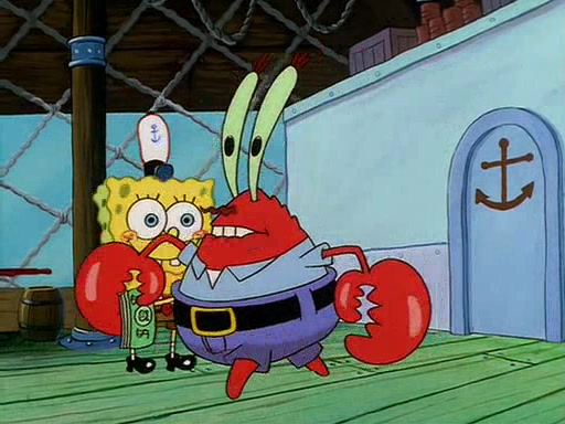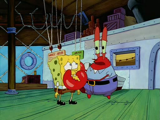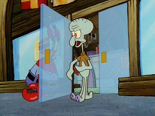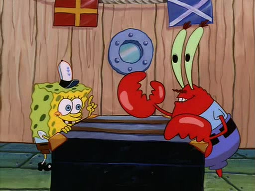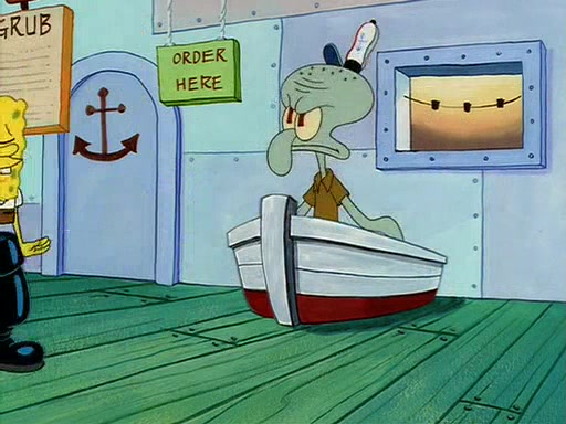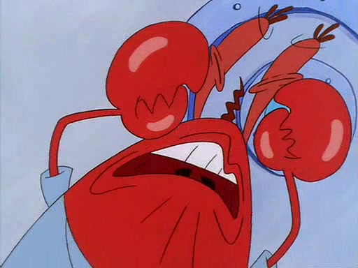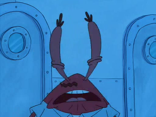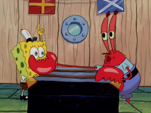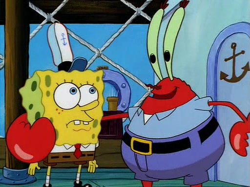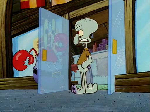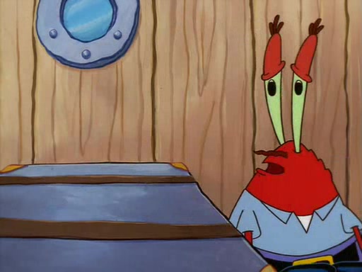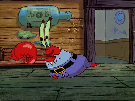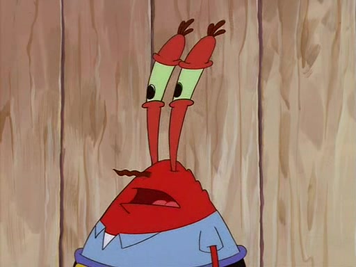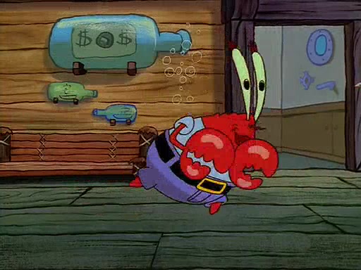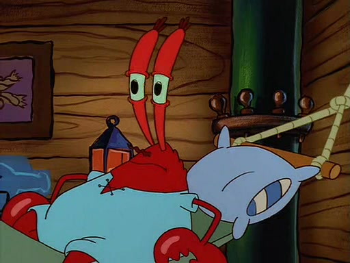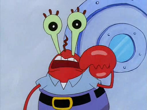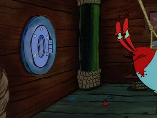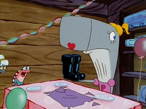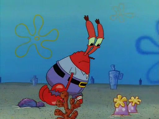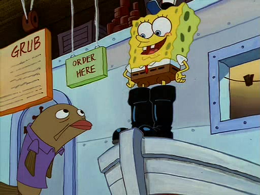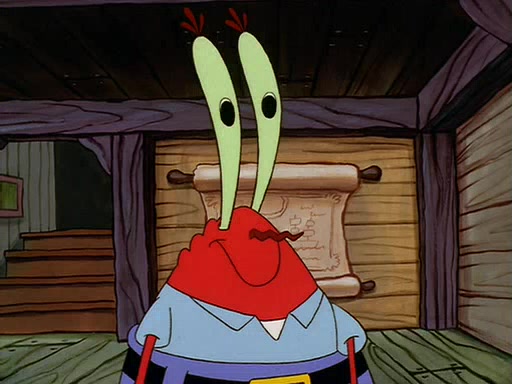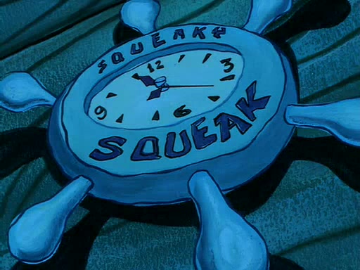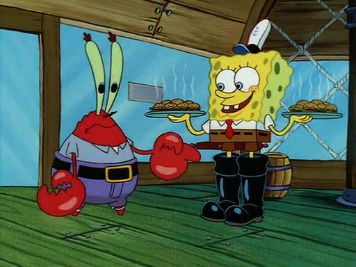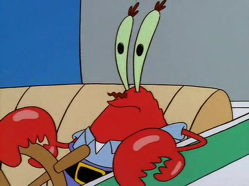 For Pearl's birthday, Mr. Krabs selfishly gives her a pair of black fishing boots that only cost $2. After Pearl doesn't accept the gift. Mr. Krabs, wanting to get rid of them, tells SpongeBob that the boots are special, and that they were only worn by the best official fry cooks in the world. SpongeBob, excitedly, exchanges his paycheck for them, and starts wearing them all day and night. The squeaking annoys Squidward so much that he goes on vacation, and Mr. Krabs has to fill in for him. After a sleepless night because of a squeaking window, Mr. Krabs can't stand the squeak of SpongeBob's boots anymore. At his wit's end, he steals the boots and buries them underneath the Krusty Krab. However, SpongeBob comes in the next day crying because he couldn't find the boots. Mr. Krabs feels guilty and starts going crazy, believing that he hears nothing but the constant squeaking of the boots (all text he sees is even replaced by the word "squeak"). Finally, he snaps and confesses that he stole the boots and hid them under the floor. He unburies the boots, shrinks them and eats them in a bout of insanity, which eventually calms Mr. Krabs and SpongeBob down. He thinks he finally has peace and quiet and goes on vacation with Pearl, until he hiccups, making the boots (inside his body) squeak.