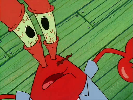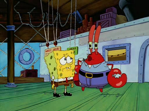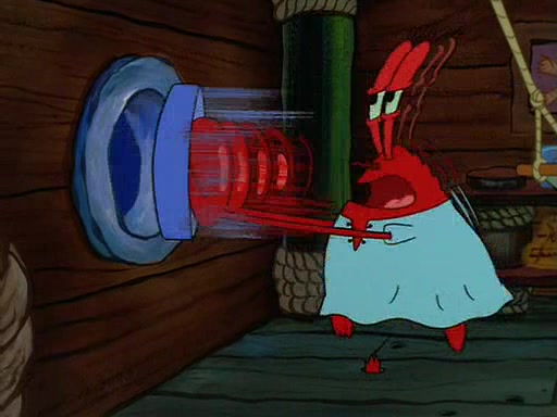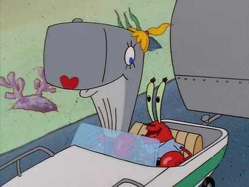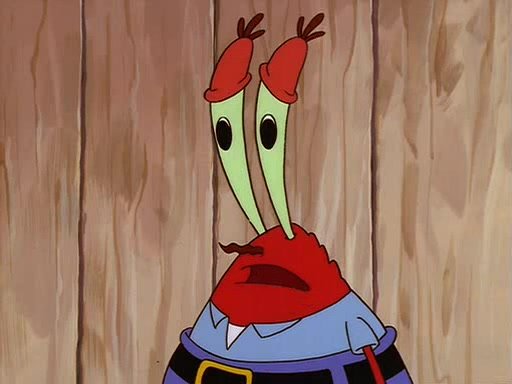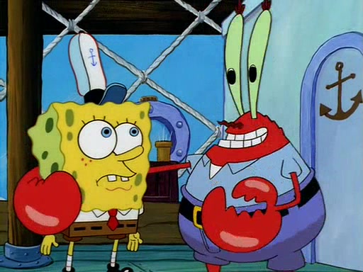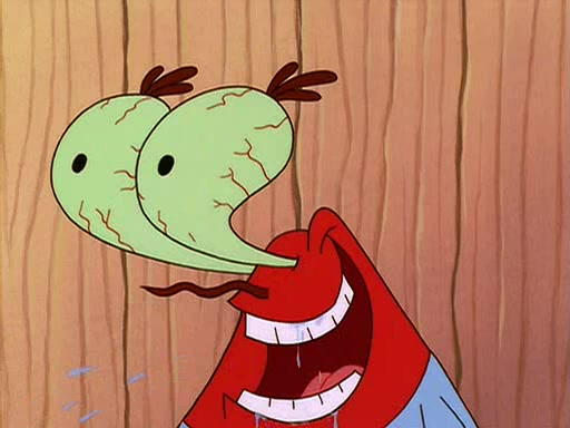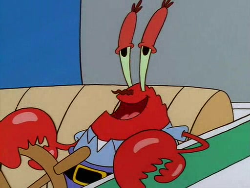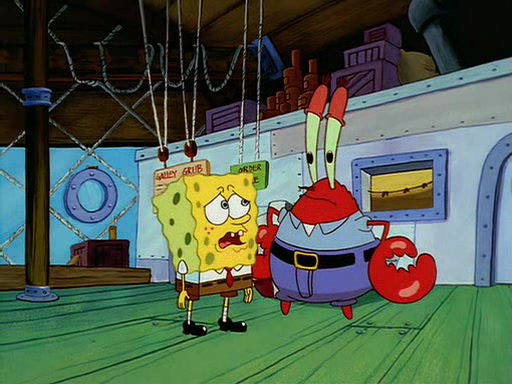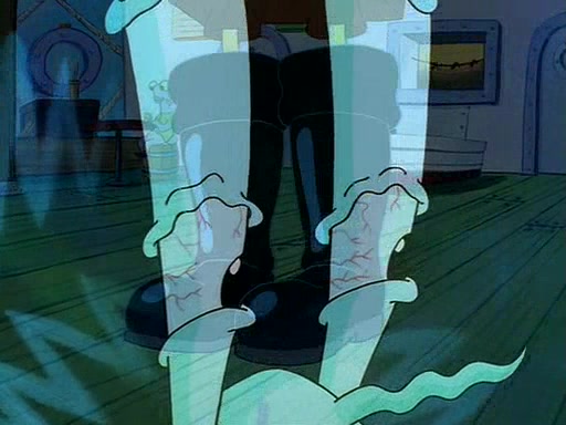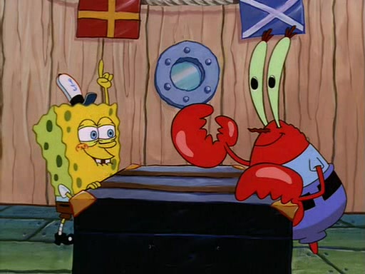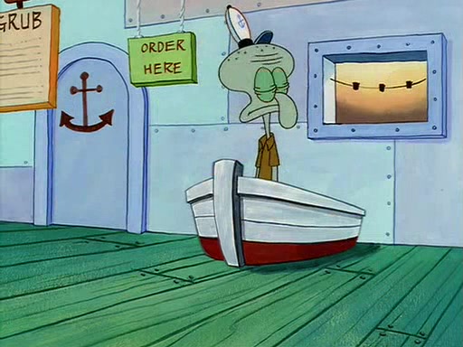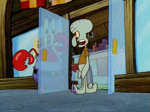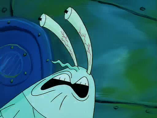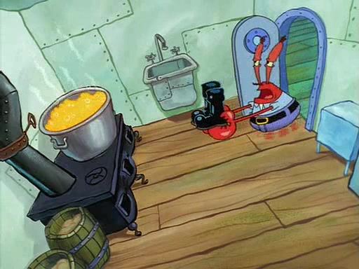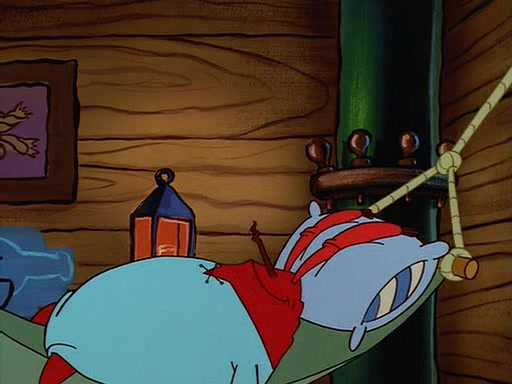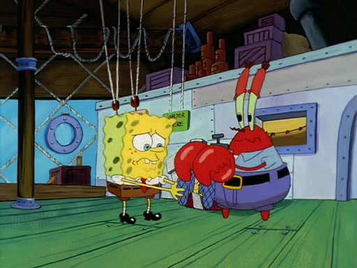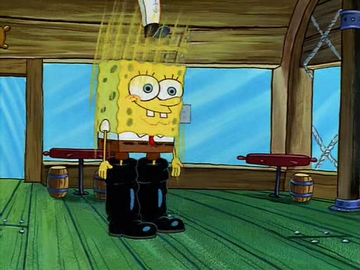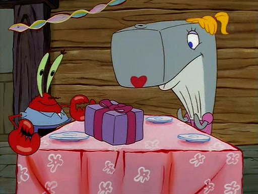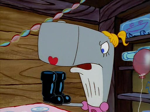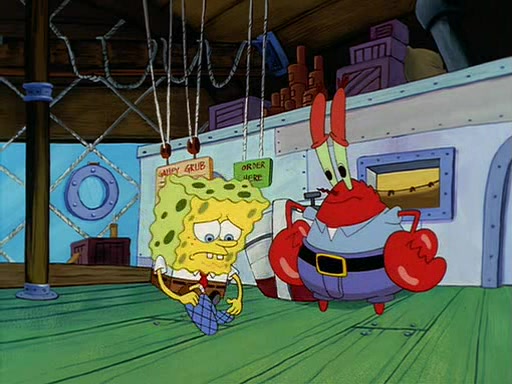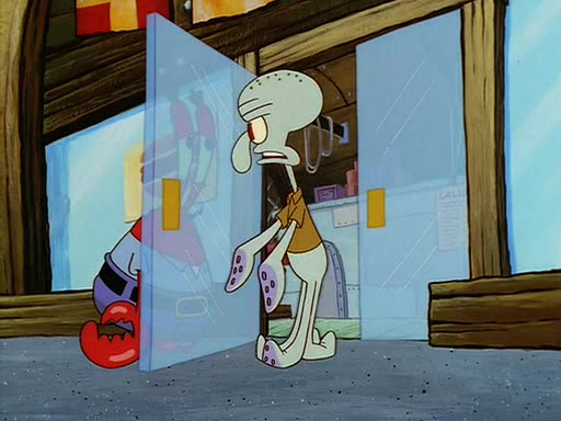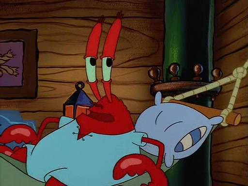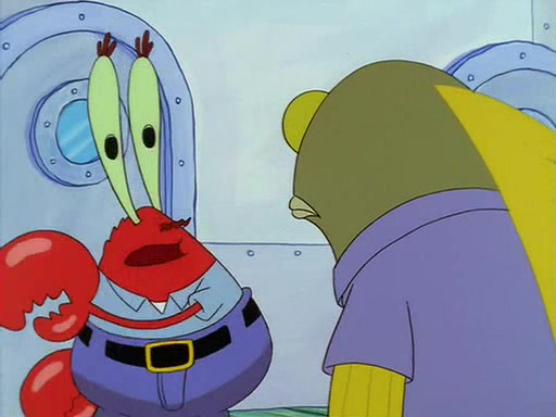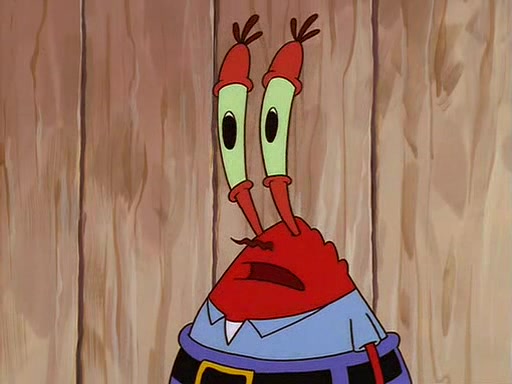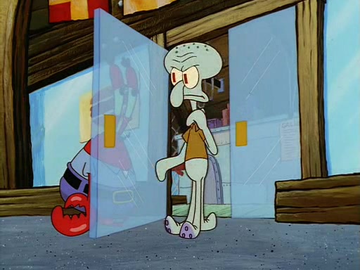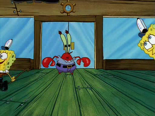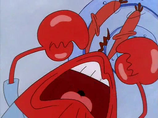 For Pearl's birthday, Mr. Krabs selfishly gives her a pair of black fishing boots that only cost $2. After Pearl doesn't accept the gift. Mr. Krabs, wanting to get rid of them, tells SpongeBob that the boots are special, and that they were only worn by the best official fry cooks in the world. SpongeBob, excitedly, exchanges his paycheck for them, and starts wearing them all day and night. The squeaking annoys Squidward so much that he goes on vacation, and Mr. Krabs has to fill in for him. After a sleepless night because of a squeaking window, Mr. Krabs can't stand the squeak of SpongeBob's boots anymore. At his wit's end, he steals the boots and buries them underneath the Krusty Krab. However, SpongeBob comes in the next day crying because he couldn't find the boots. Mr. Krabs feels guilty and starts going crazy, believing that he hears nothing but the constant squeaking of the boots (all text he sees is even replaced by the word "squeak"). Finally, he snaps and confesses that he stole the boots and hid them under the floor. He unburies the boots, shrinks them and eats them in a bout of insanity, which eventually calms Mr. Krabs and SpongeBob down. He thinks he finally has peace and quiet and goes on vacation with Pearl, until he hiccups, making the boots (inside his body) squeak.