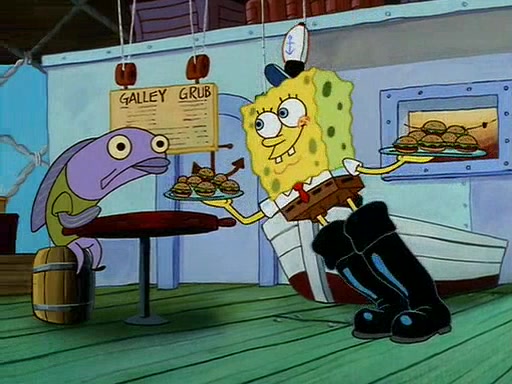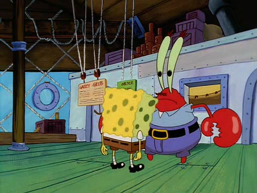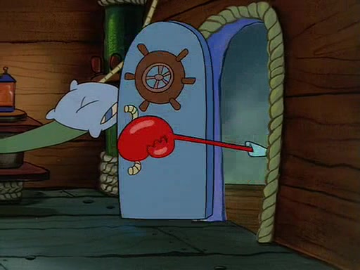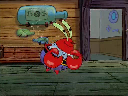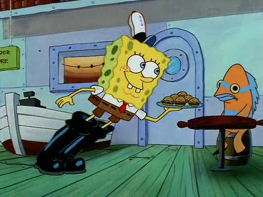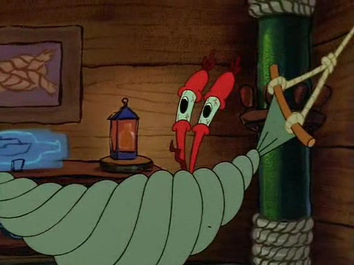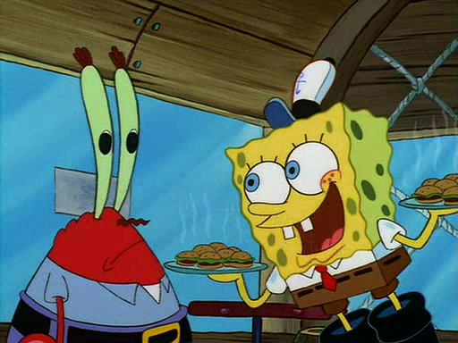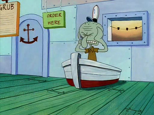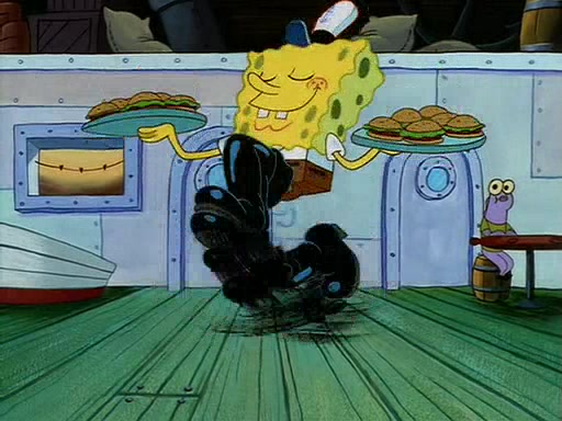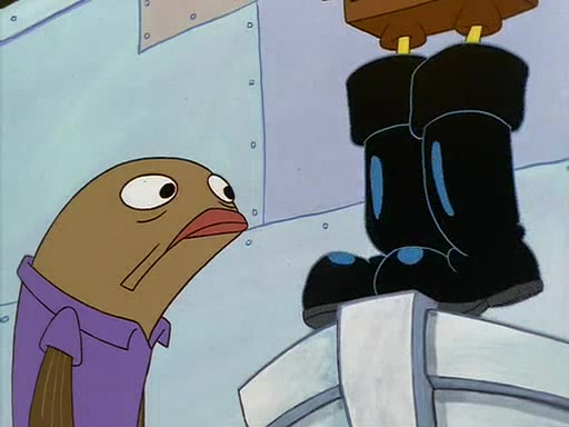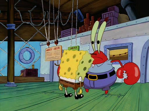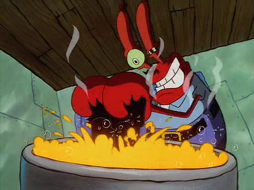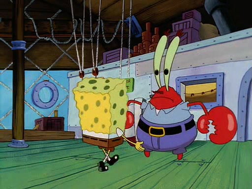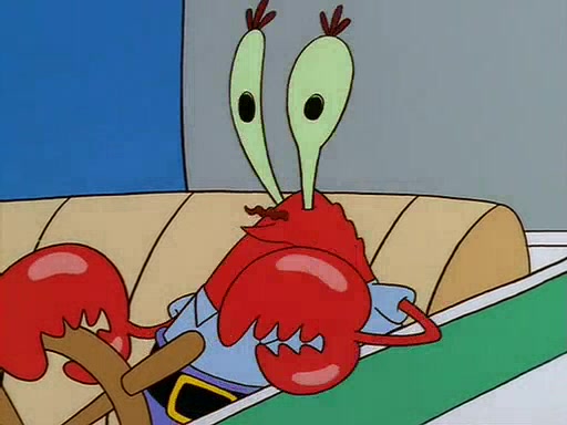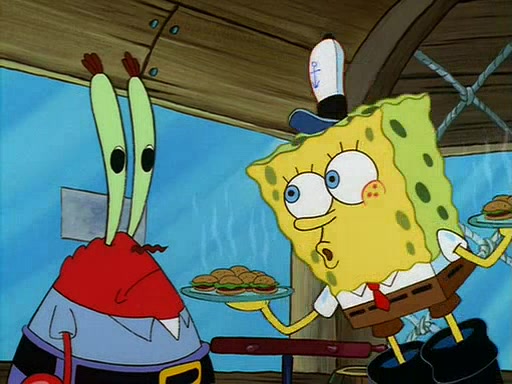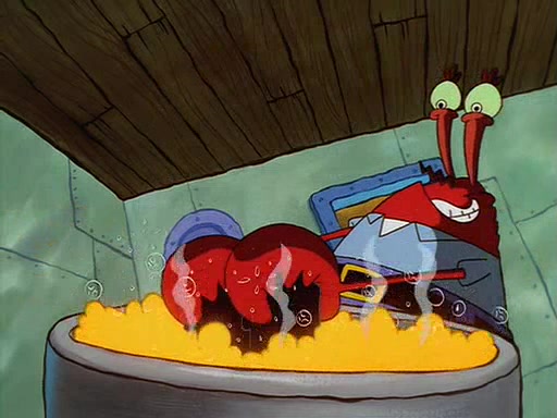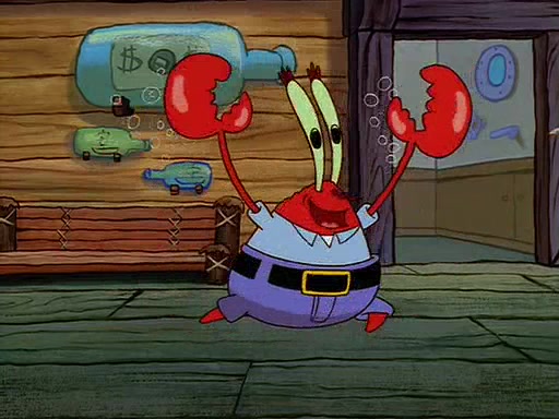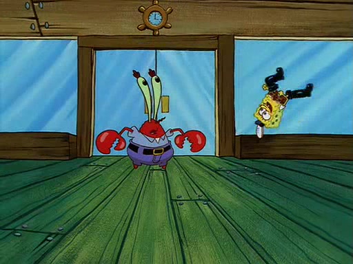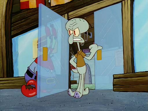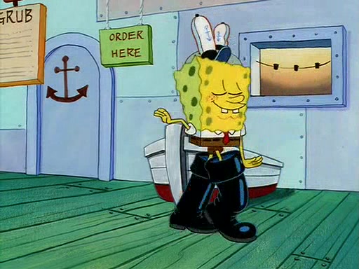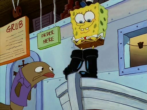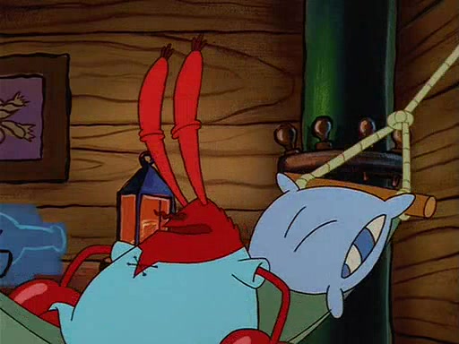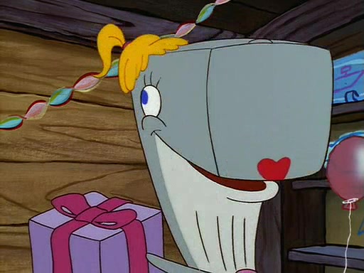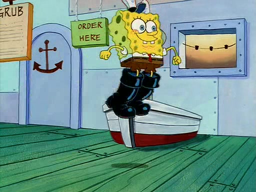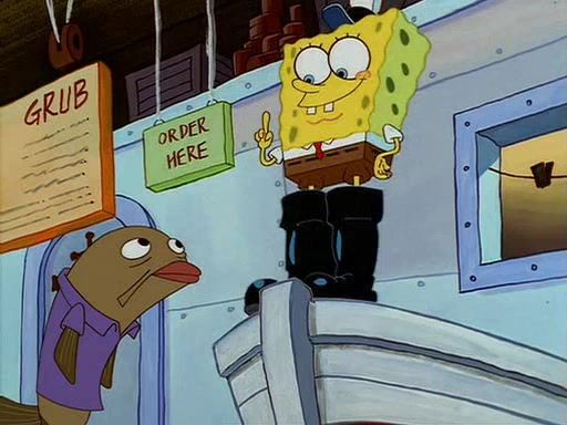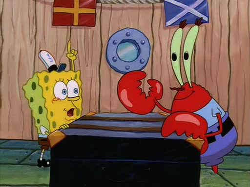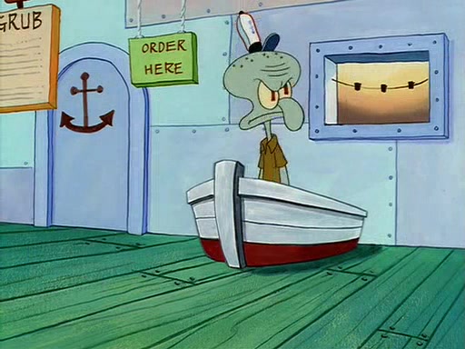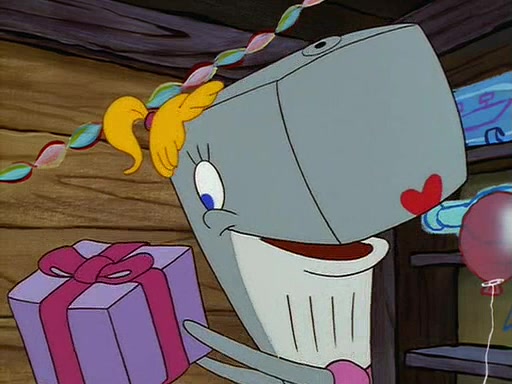For Pearl's birthday, Mr. Krabs selfishly gives her a pair of black fishing boots that only cost $2. After Pearl doesn't accept the gift. Mr. Krabs, wanting to get rid of them, tells SpongeBob that the boots are special, and that they were only worn by the best official fry cooks in the world. SpongeBob, excitedly, exchanges his paycheck for them, and starts wearing them all day and night. The squeaking annoys Squidward so much that he goes on vacation, and Mr. Krabs has to fill in for him. After a sleepless night because of a squeaking window, Mr. Krabs can't stand the squeak of SpongeBob's boots anymore. At his wit's end, he steals the boots and buries them underneath the Krusty Krab. However, SpongeBob comes in the next day crying because he couldn't find the boots. Mr. Krabs feels guilty and starts going crazy, believing that he hears nothing but the constant squeaking of the boots (all text he sees is even replaced by the word "squeak"). Finally, he snaps and confesses that he stole the boots and hid them under the floor. He unburies the boots, shrinks them and eats them in a bout of insanity, which eventually calms Mr. Krabs and SpongeBob down. He thinks he finally has peace and quiet and goes on vacation with Pearl, until he hiccups, making the boots (inside his body) squeak.