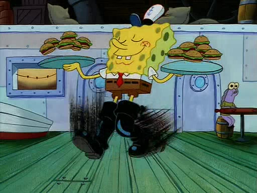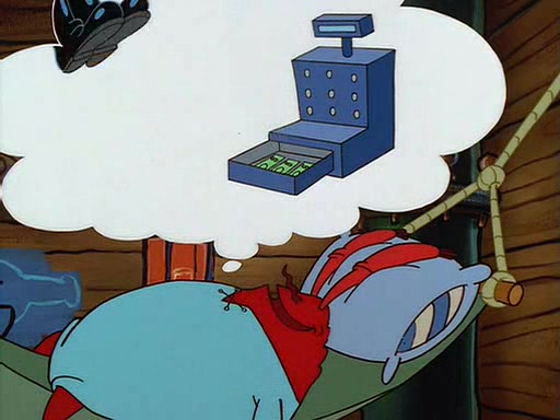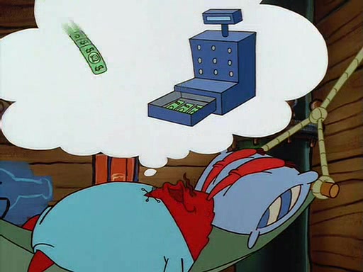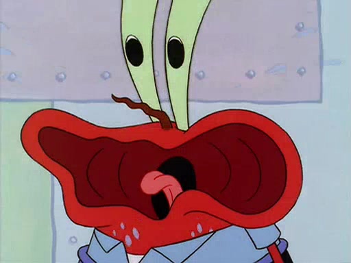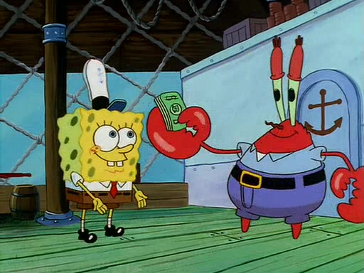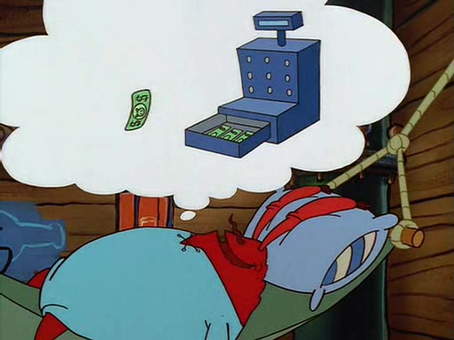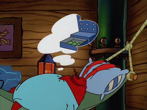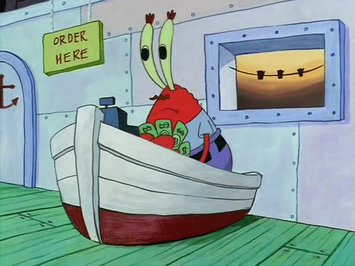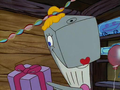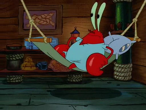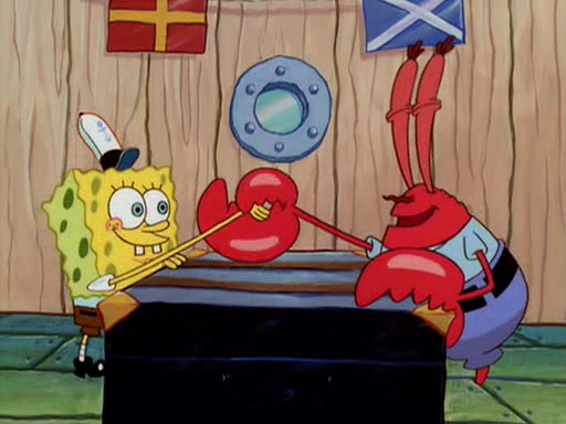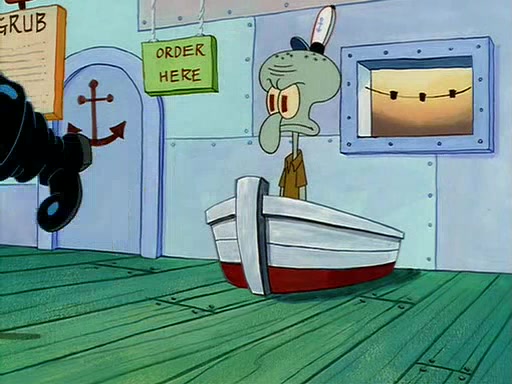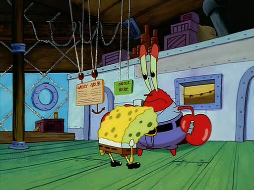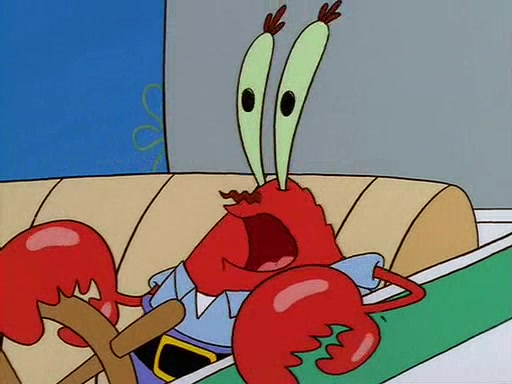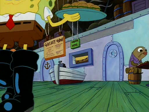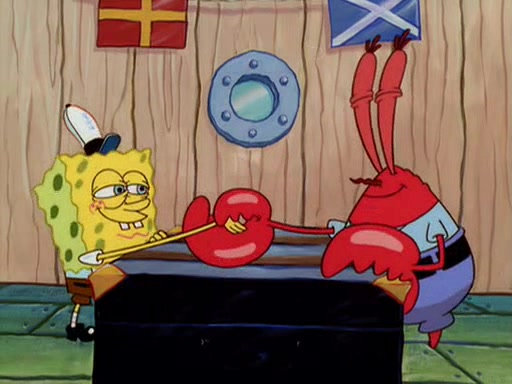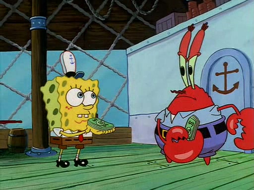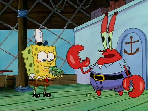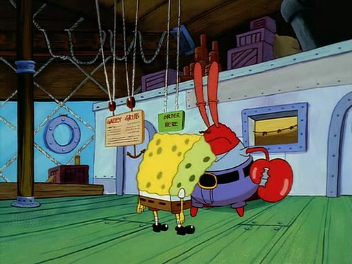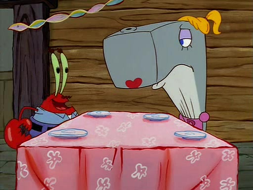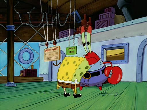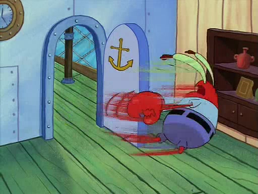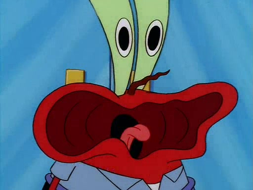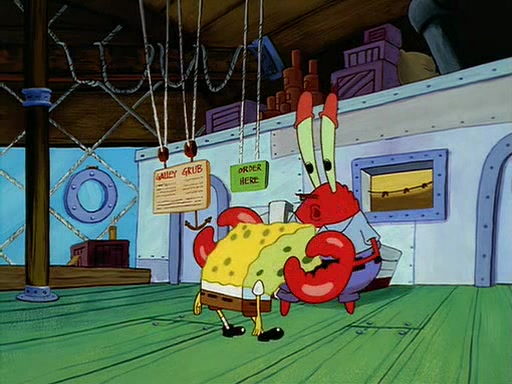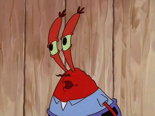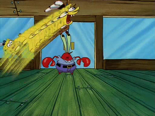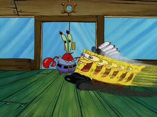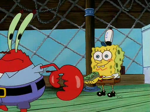 For Pearl's birthday, Mr. Krabs selfishly gives her a pair of black fishing boots that only cost $2. After Pearl doesn't accept the gift. Mr. Krabs, wanting to get rid of them, tells SpongeBob that the boots are special, and that they were only worn by the best official fry cooks in the world. SpongeBob, excitedly, exchanges his paycheck for them, and starts wearing them all day and night. The squeaking annoys Squidward so much that he goes on vacation, and Mr. Krabs has to fill in for him. After a sleepless night because of a squeaking window, Mr. Krabs can't stand the squeak of SpongeBob's boots anymore. At his wit's end, he steals the boots and buries them underneath the Krusty Krab. However, SpongeBob comes in the next day crying because he couldn't find the boots. Mr. Krabs feels guilty and starts going crazy, believing that he hears nothing but the constant squeaking of the boots (all text he sees is even replaced by the word "squeak"). Finally, he snaps and confesses that he stole the boots and hid them under the floor. He unburies the boots, shrinks them and eats them in a bout of insanity, which eventually calms Mr. Krabs and SpongeBob down. He thinks he finally has peace and quiet and goes on vacation with Pearl, until he hiccups, making the boots (inside his body) squeak.