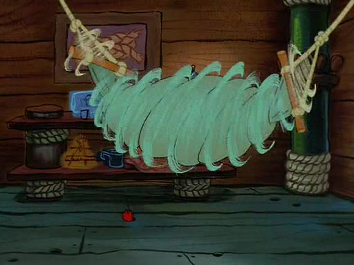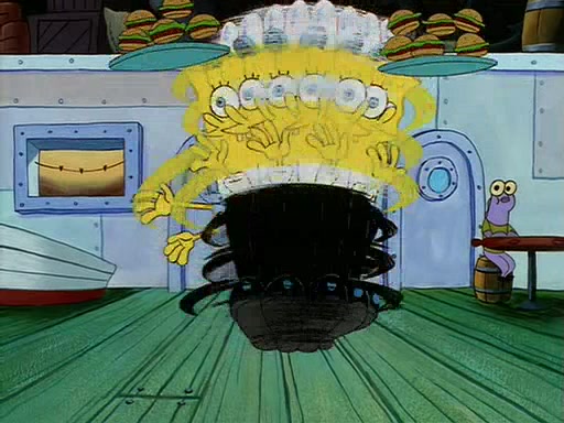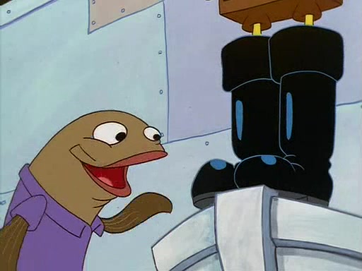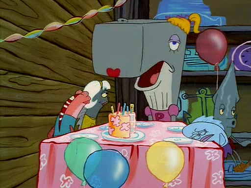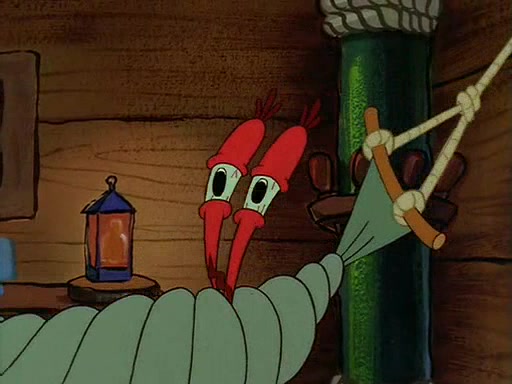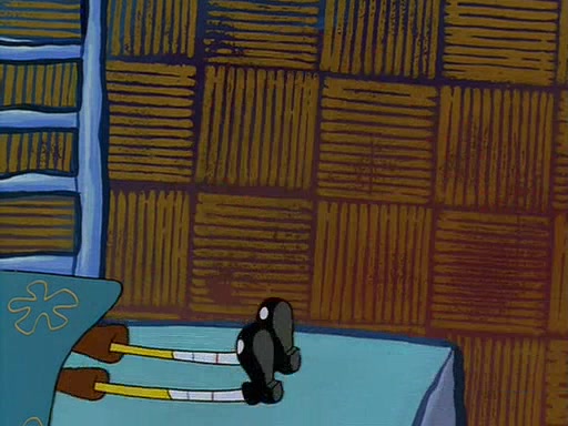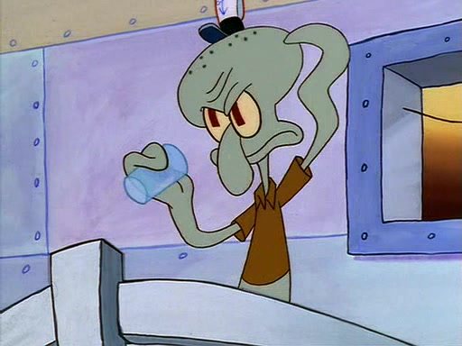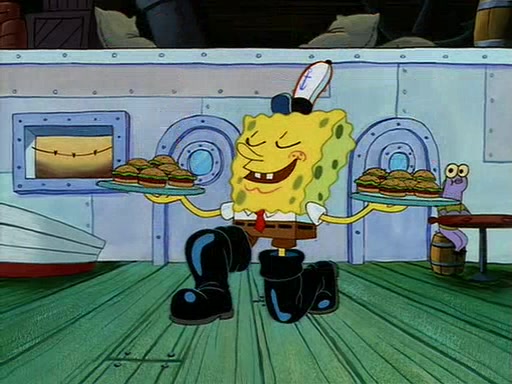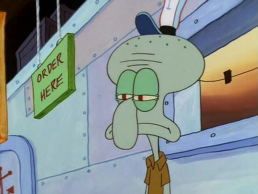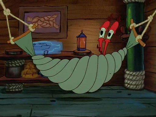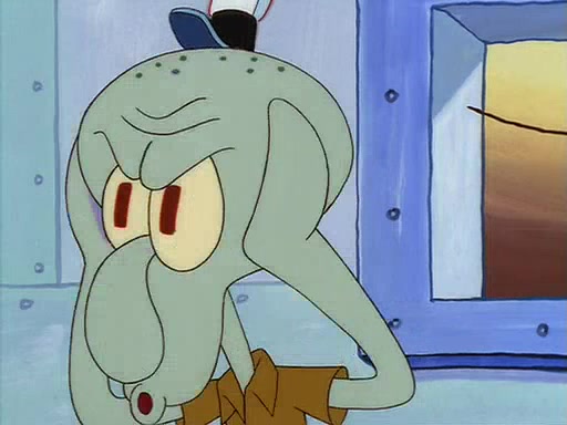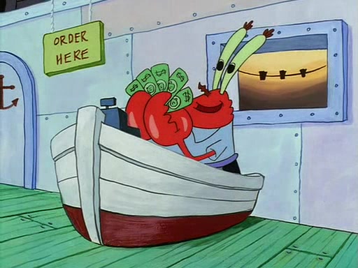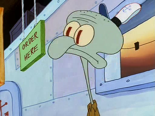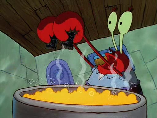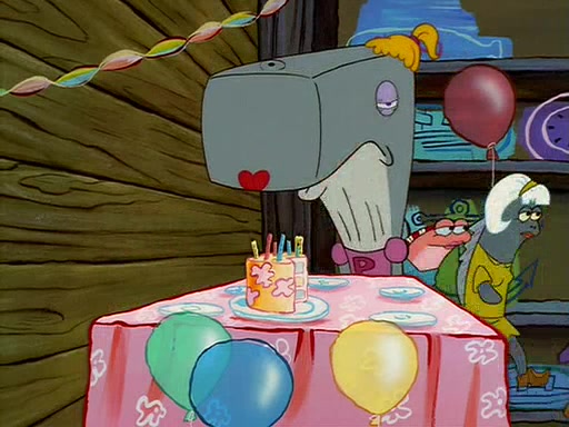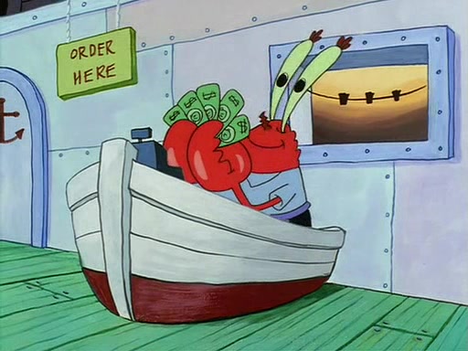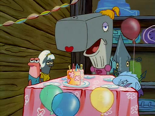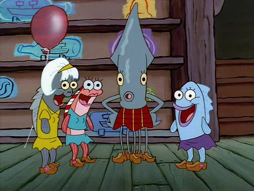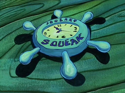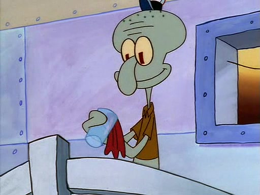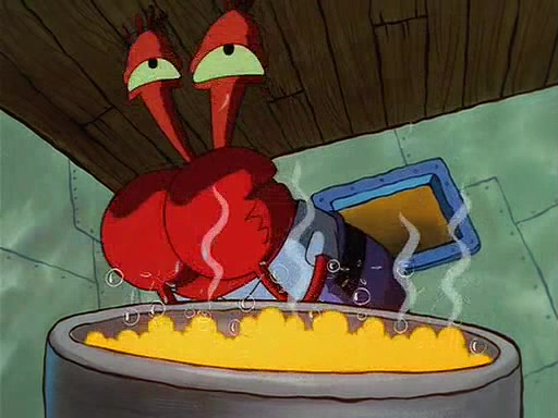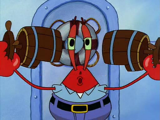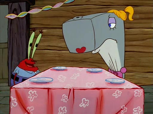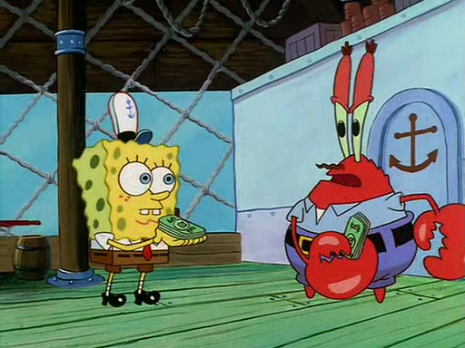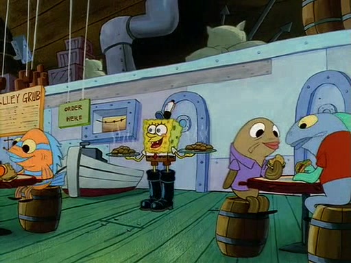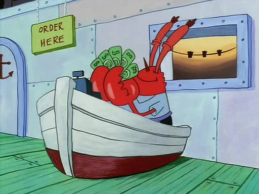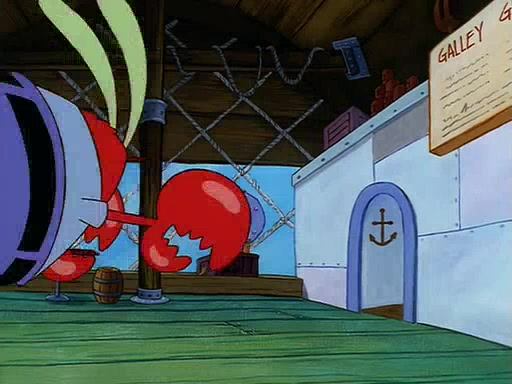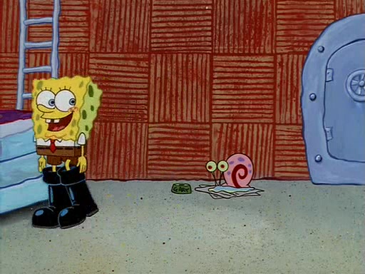 For Pearl's birthday, Mr. Krabs selfishly gives her a pair of black fishing boots that only cost $2. After Pearl doesn't accept the gift. Mr. Krabs, wanting to get rid of them, tells SpongeBob that the boots are special, and that they were only worn by the best official fry cooks in the world. SpongeBob, excitedly, exchanges his paycheck for them, and starts wearing them all day and night. The squeaking annoys Squidward so much that he goes on vacation, and Mr. Krabs has to fill in for him. After a sleepless night because of a squeaking window, Mr. Krabs can't stand the squeak of SpongeBob's boots anymore. At his wit's end, he steals the boots and buries them underneath the Krusty Krab. However, SpongeBob comes in the next day crying because he couldn't find the boots. Mr. Krabs feels guilty and starts going crazy, believing that he hears nothing but the constant squeaking of the boots (all text he sees is even replaced by the word "squeak"). Finally, he snaps and confesses that he stole the boots and hid them under the floor. He unburies the boots, shrinks them and eats them in a bout of insanity, which eventually calms Mr. Krabs and SpongeBob down. He thinks he finally has peace and quiet and goes on vacation with Pearl, until he hiccups, making the boots (inside his body) squeak.